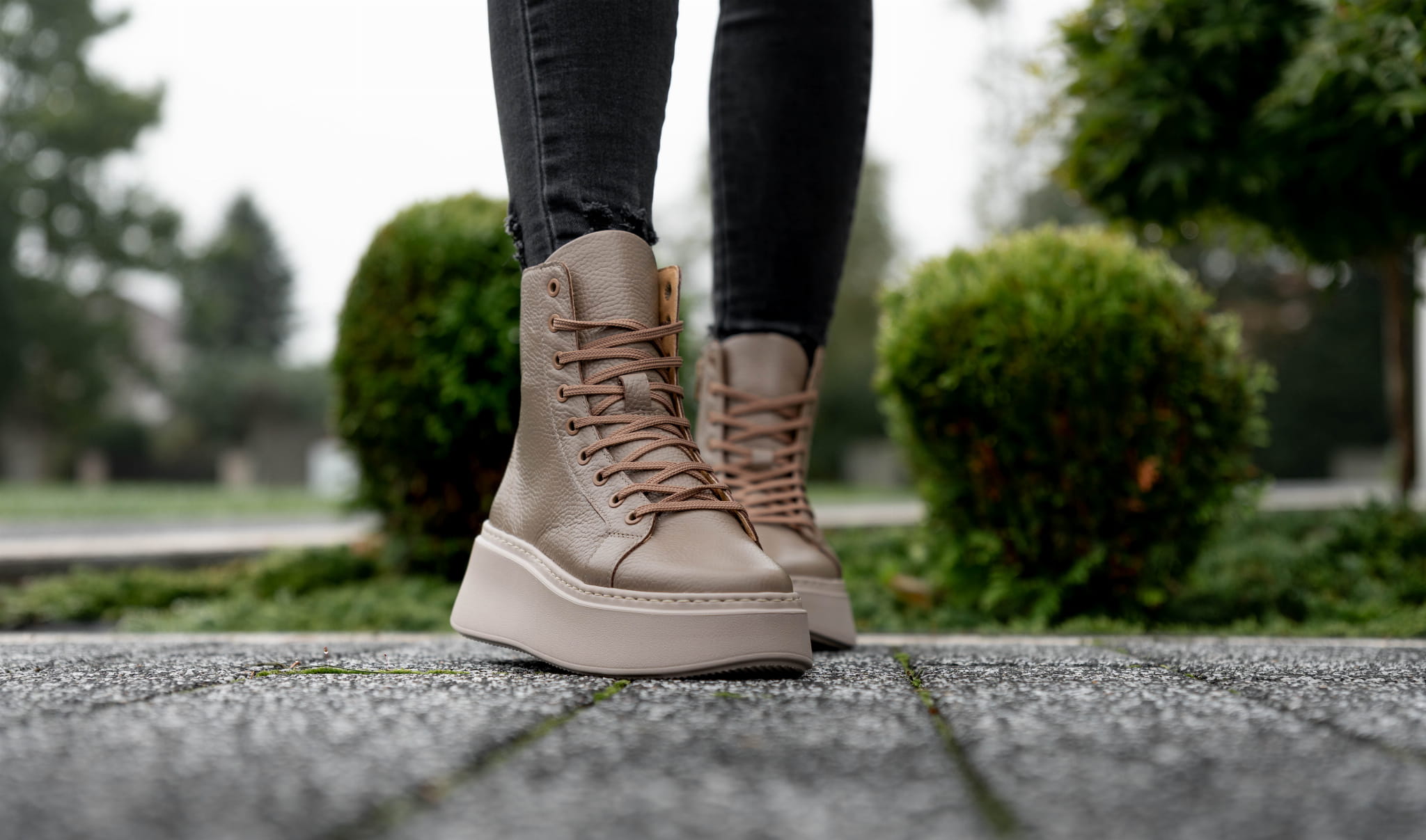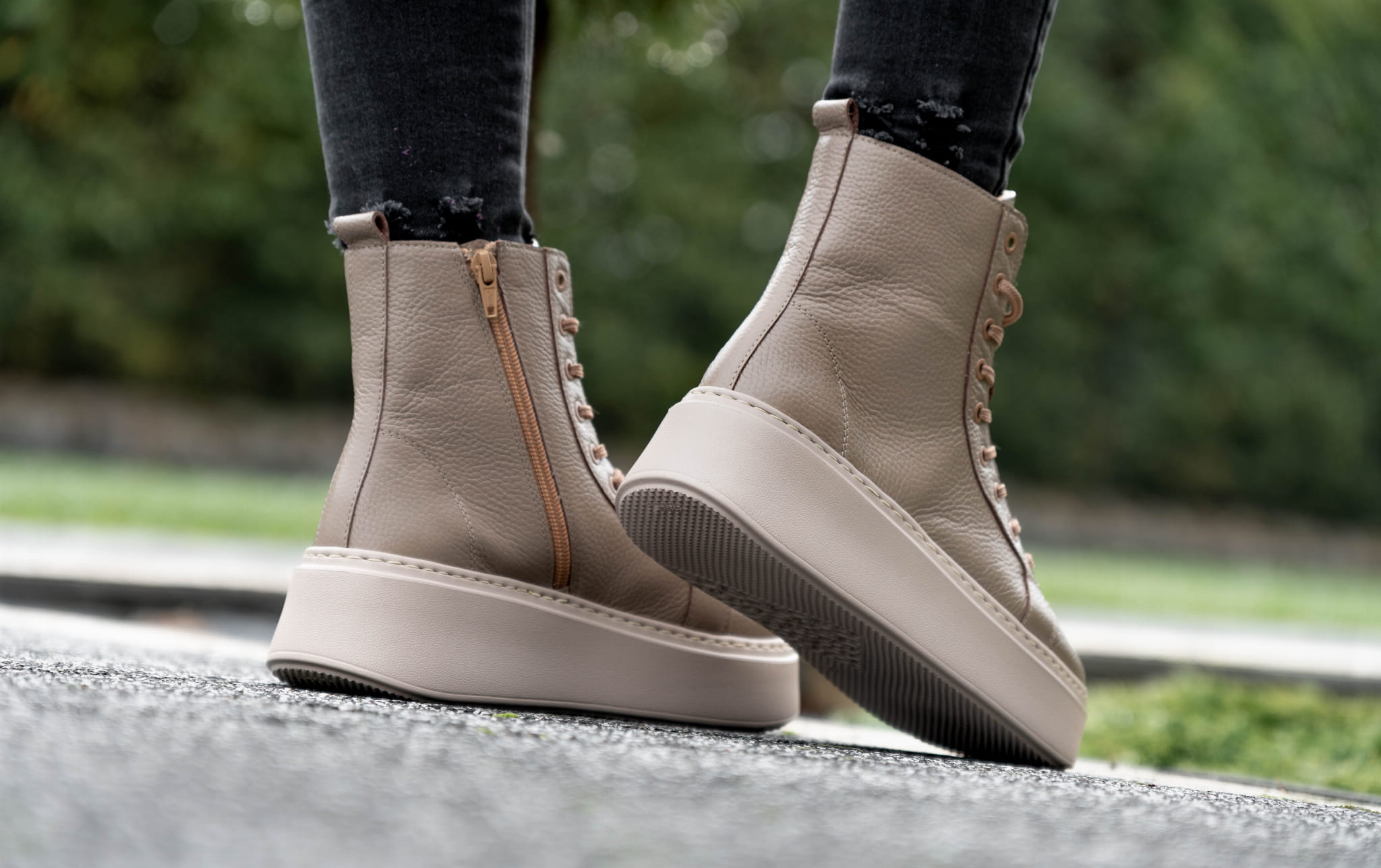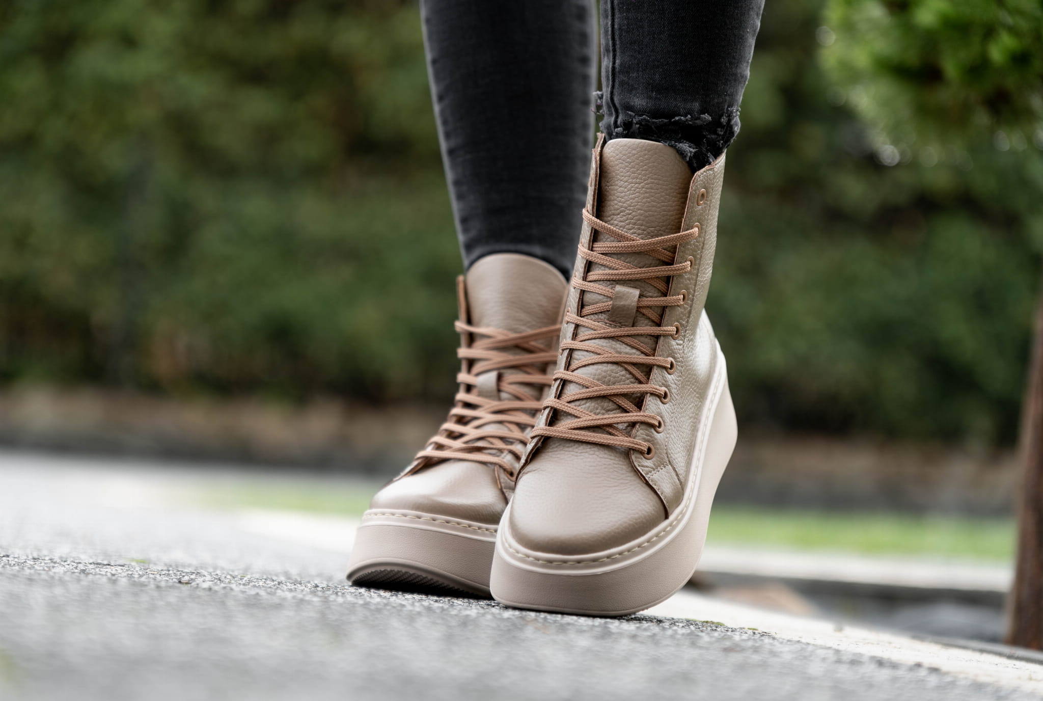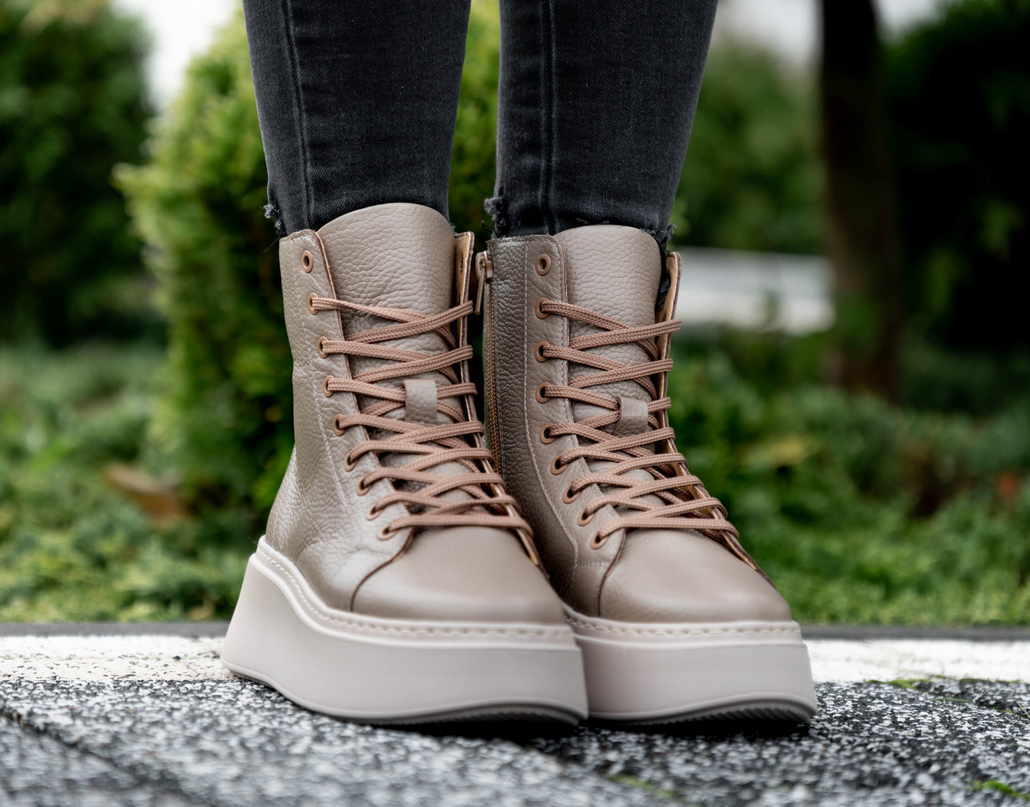 Ciemno beżowy Sneakers Damski LURSO z podwyższoną cholewą model TAYLOR BEIGE