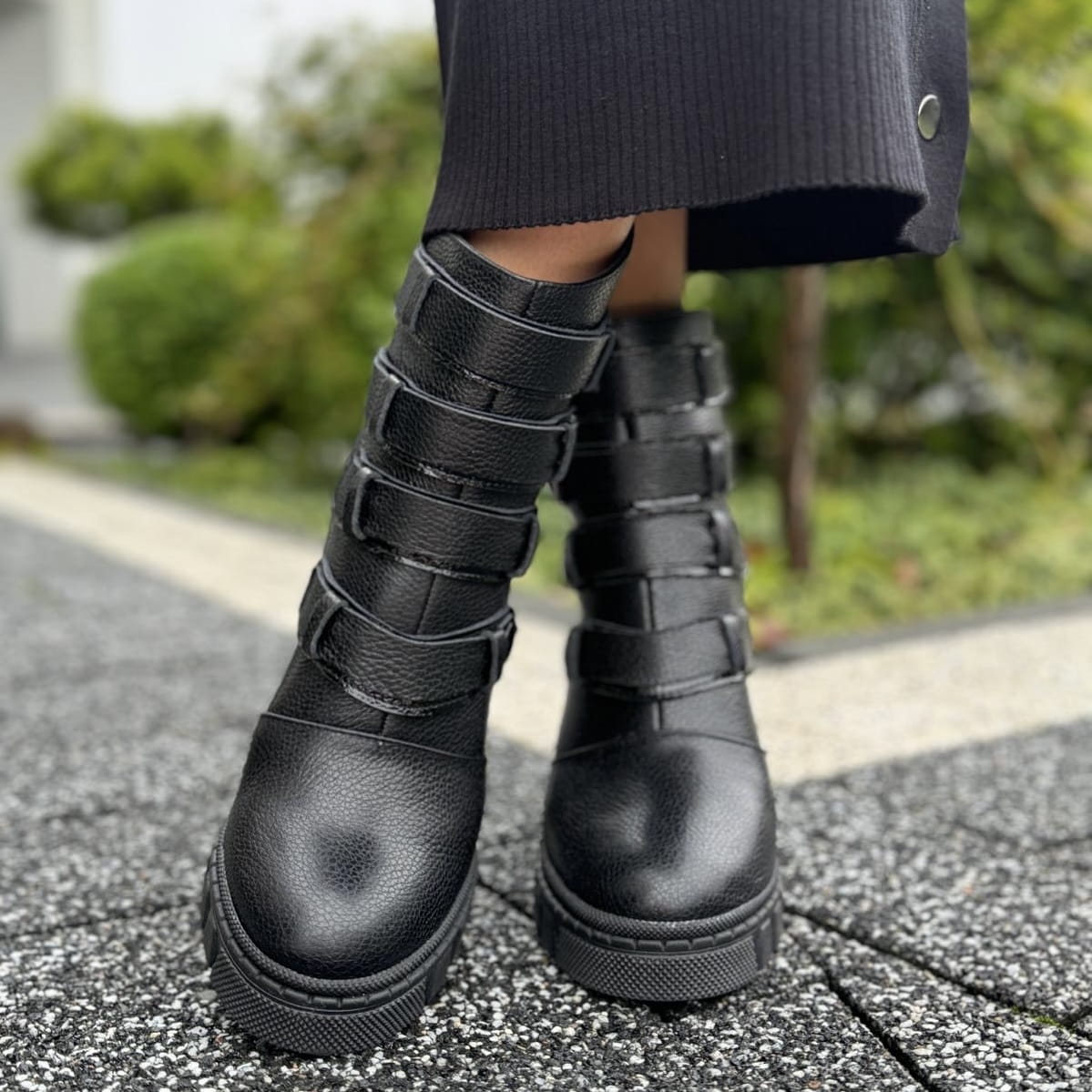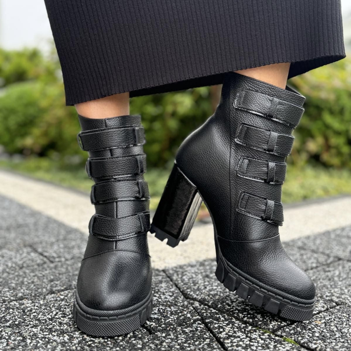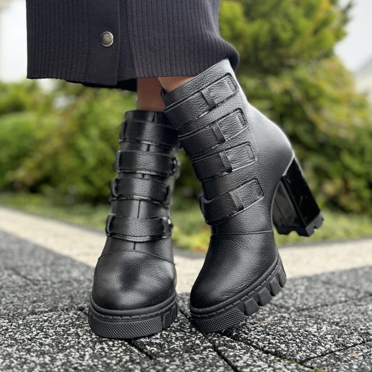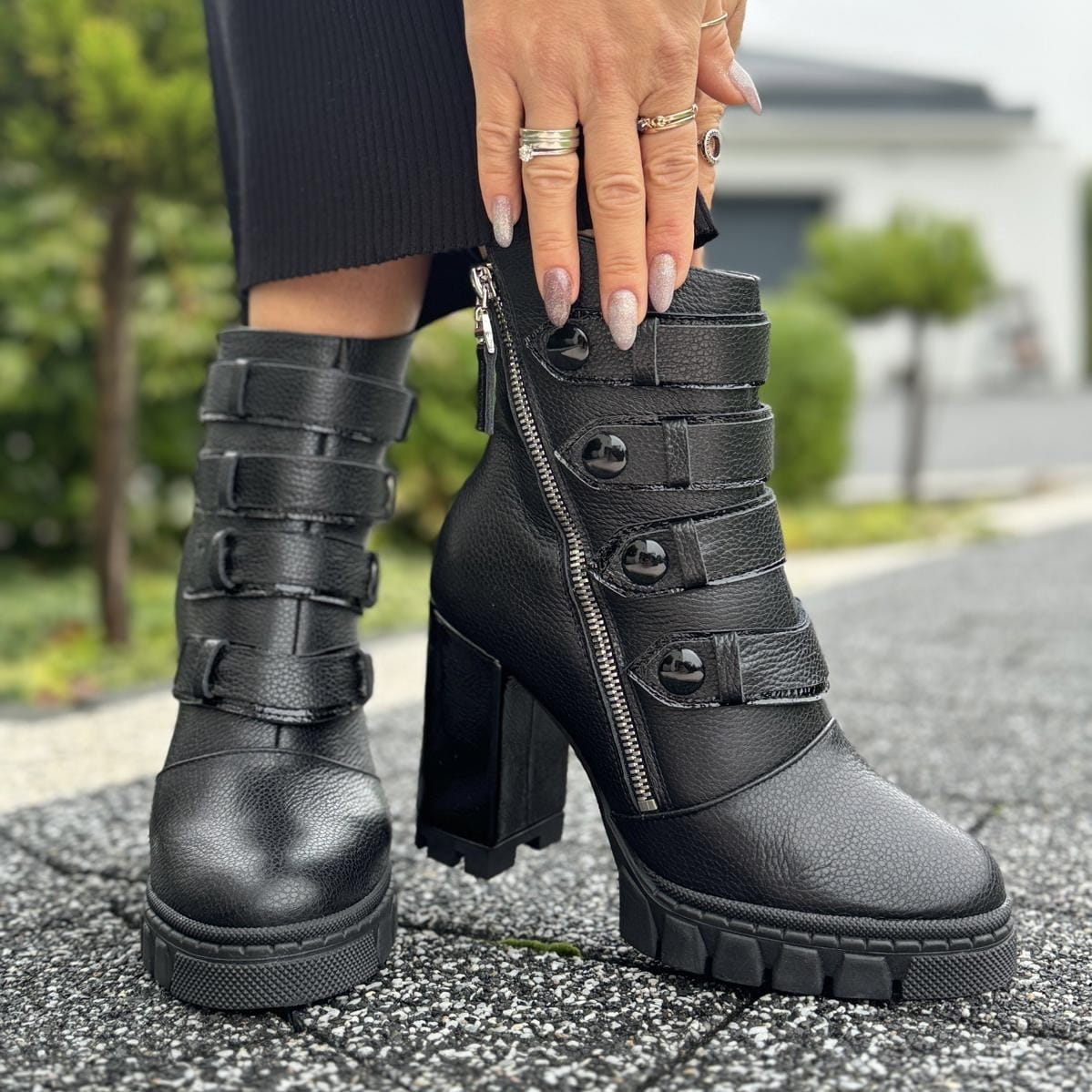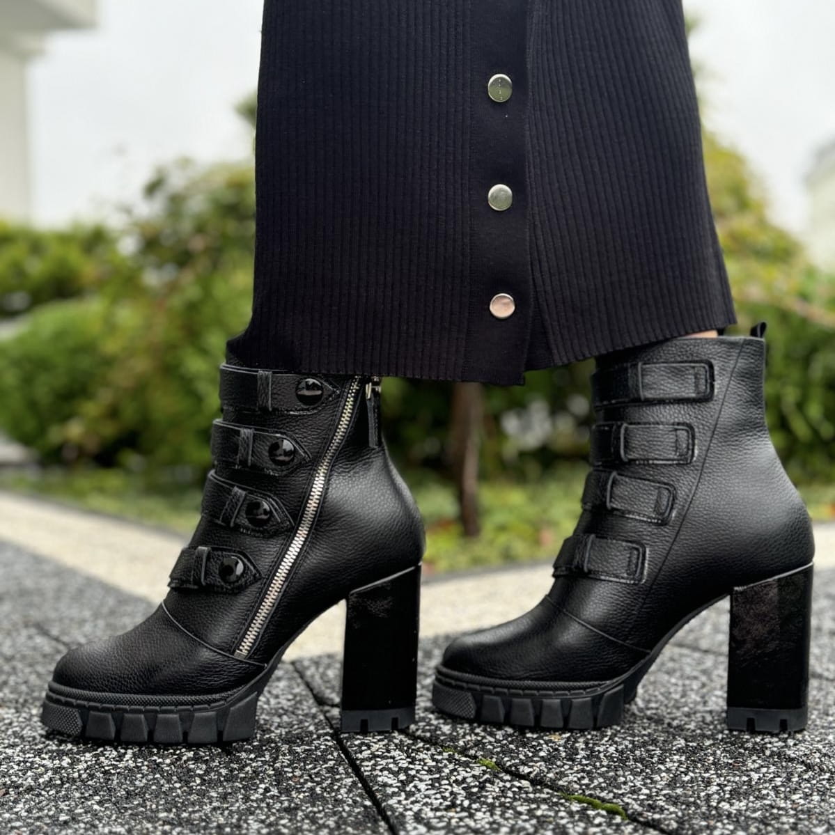 ANDRETTA to piękny model botków. Buty wykonane zostały na nietuzinkowej traperowej podeszwie i oblekanym skórą obcasie. Ozdobą modelu jest metalowy funkcjonalny zamek oraz przepiękne paski na nappy. Buty wyglądają zjawiskowo.