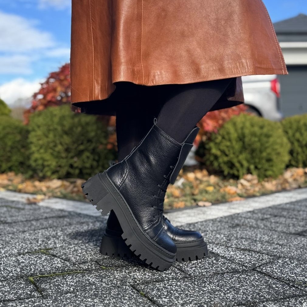Czarne Botki Damskie na podwyższonej podeszwie LURSO model ANGELE BLACK skóra naturalna