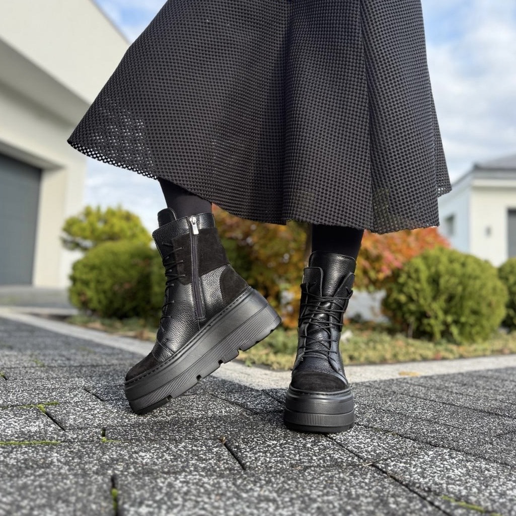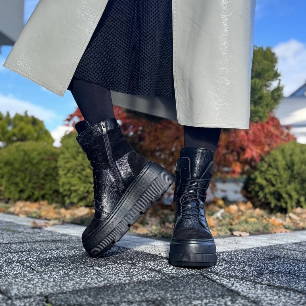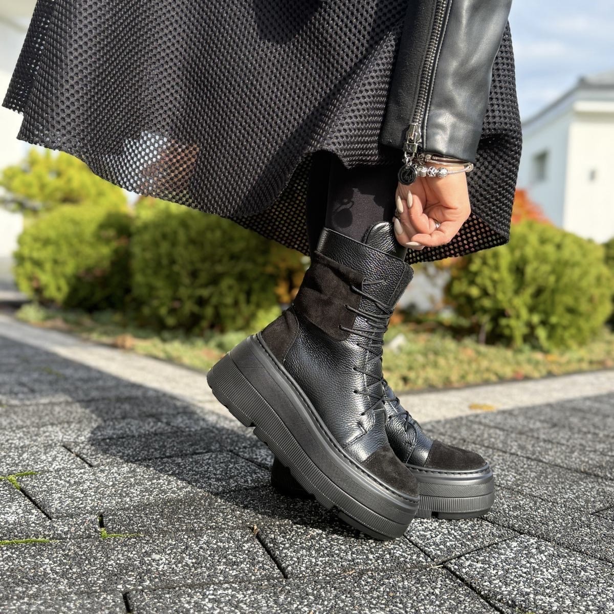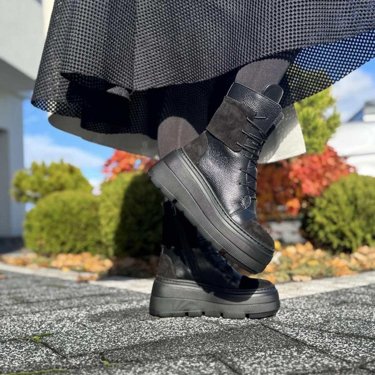 Czarne Botki Damskie na wysokiej podeszwie LURSO model MOLISE BLACK skóra naturalna