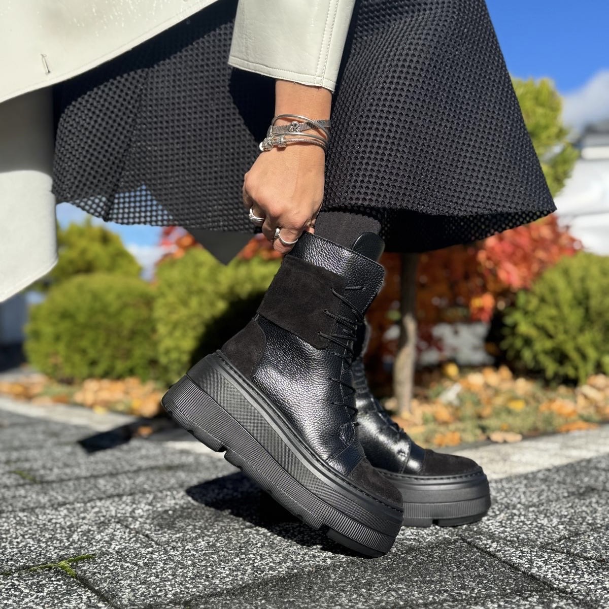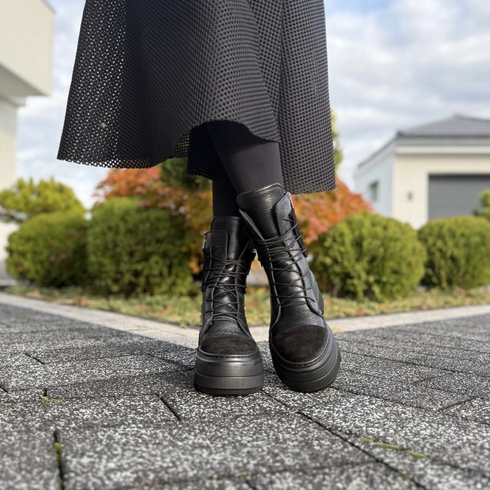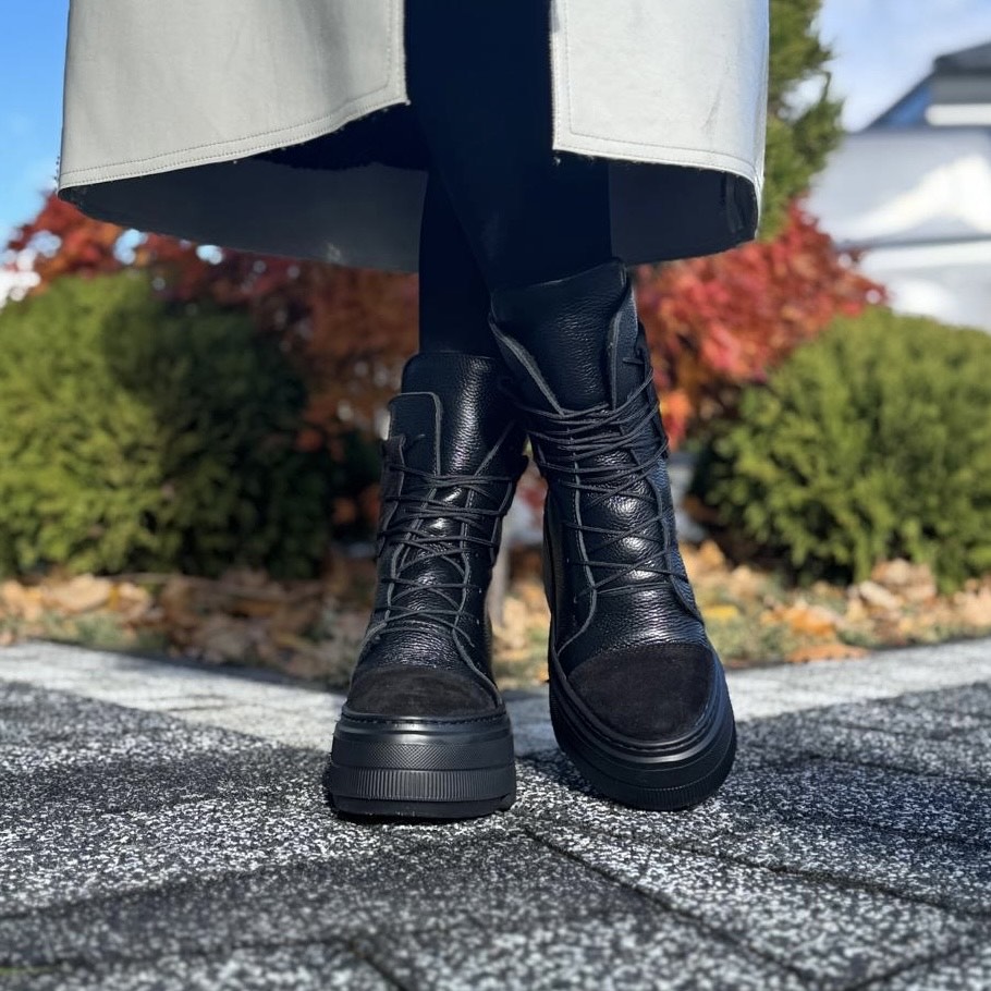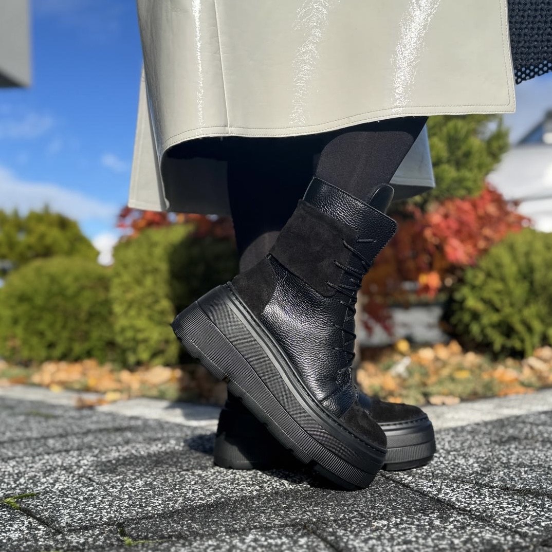 Czarne Botki Damskie na wysokiej podeszwie LURSO model MOLISE BLACK skóra naturalna
