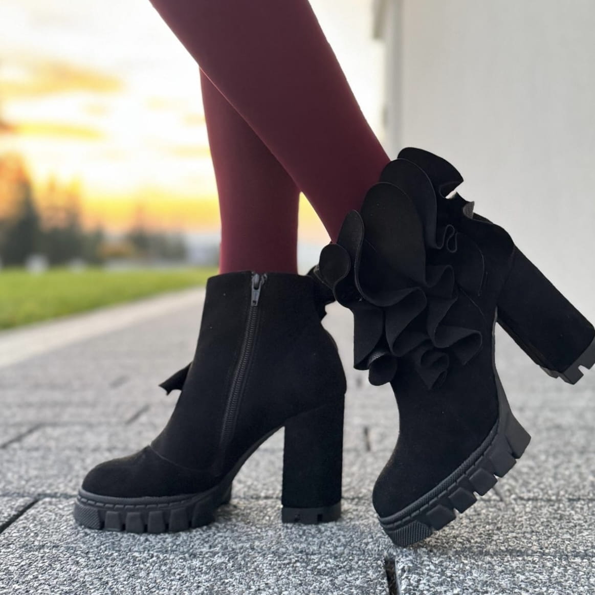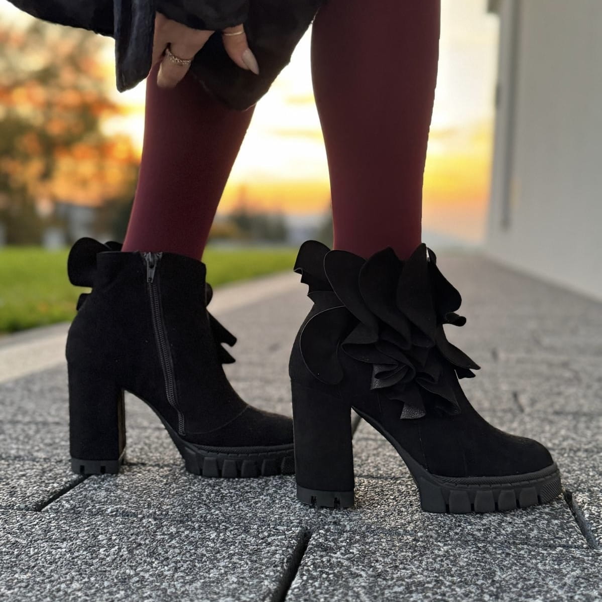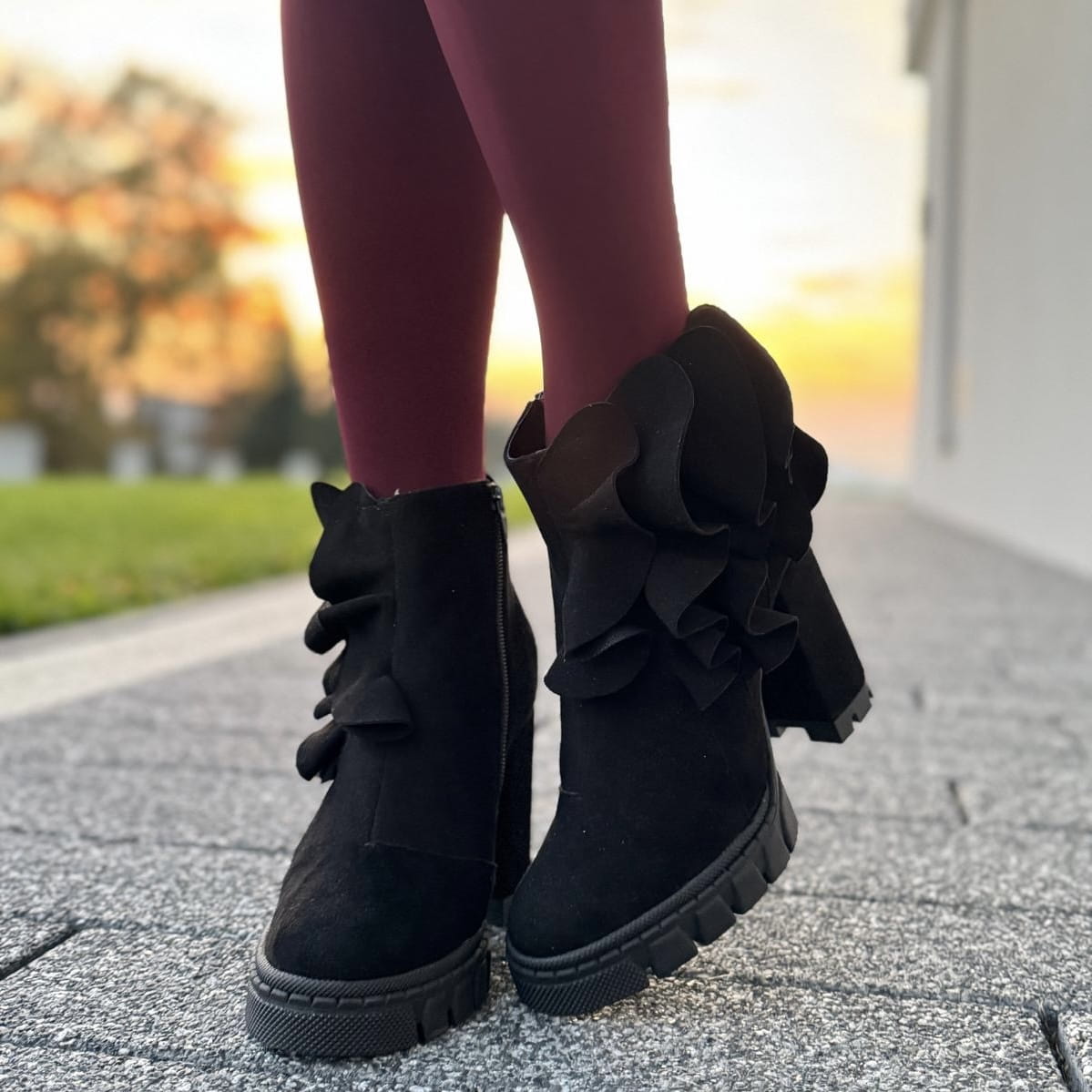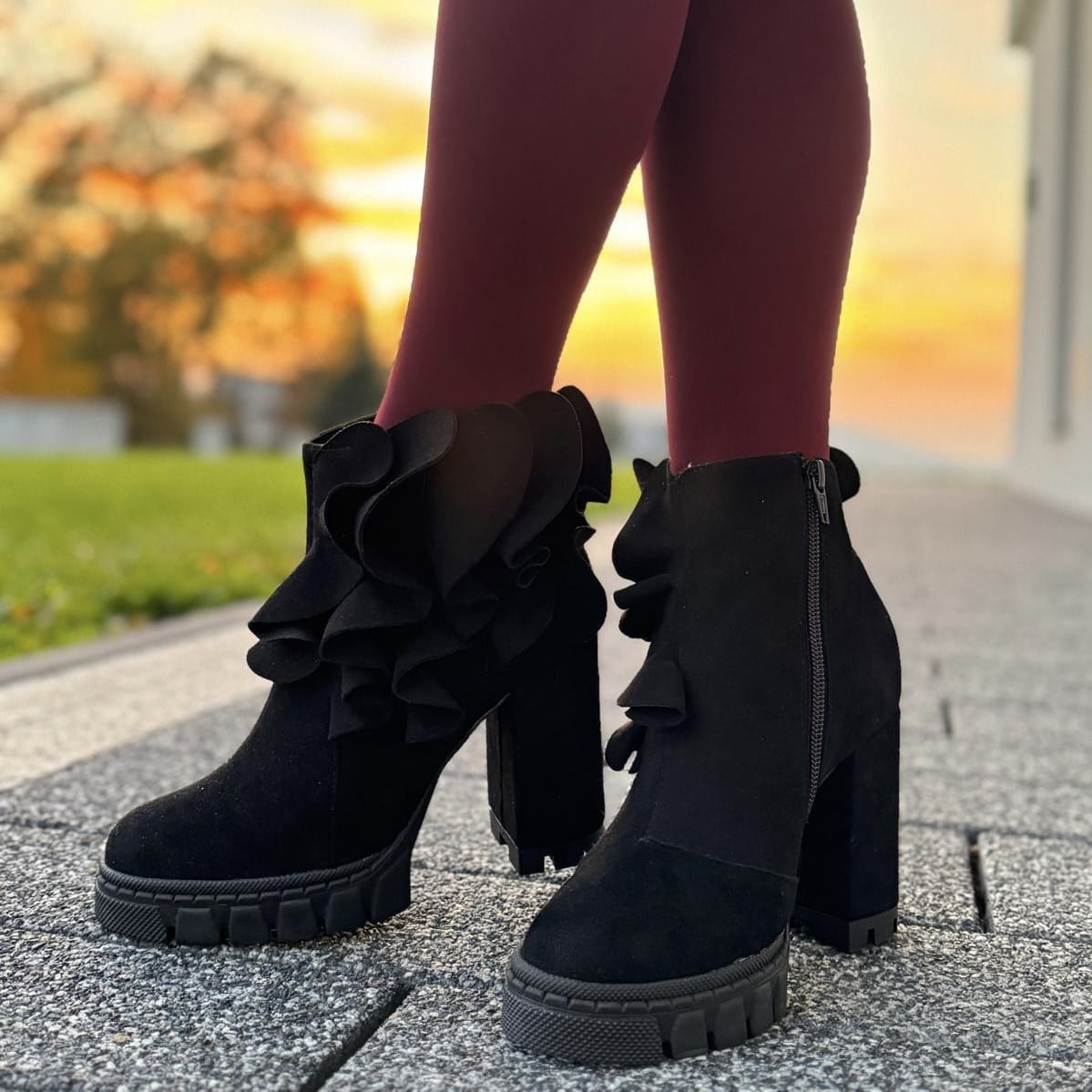 Czarne Botki Damskie z falbankami na obcasie BORGIA BLACK