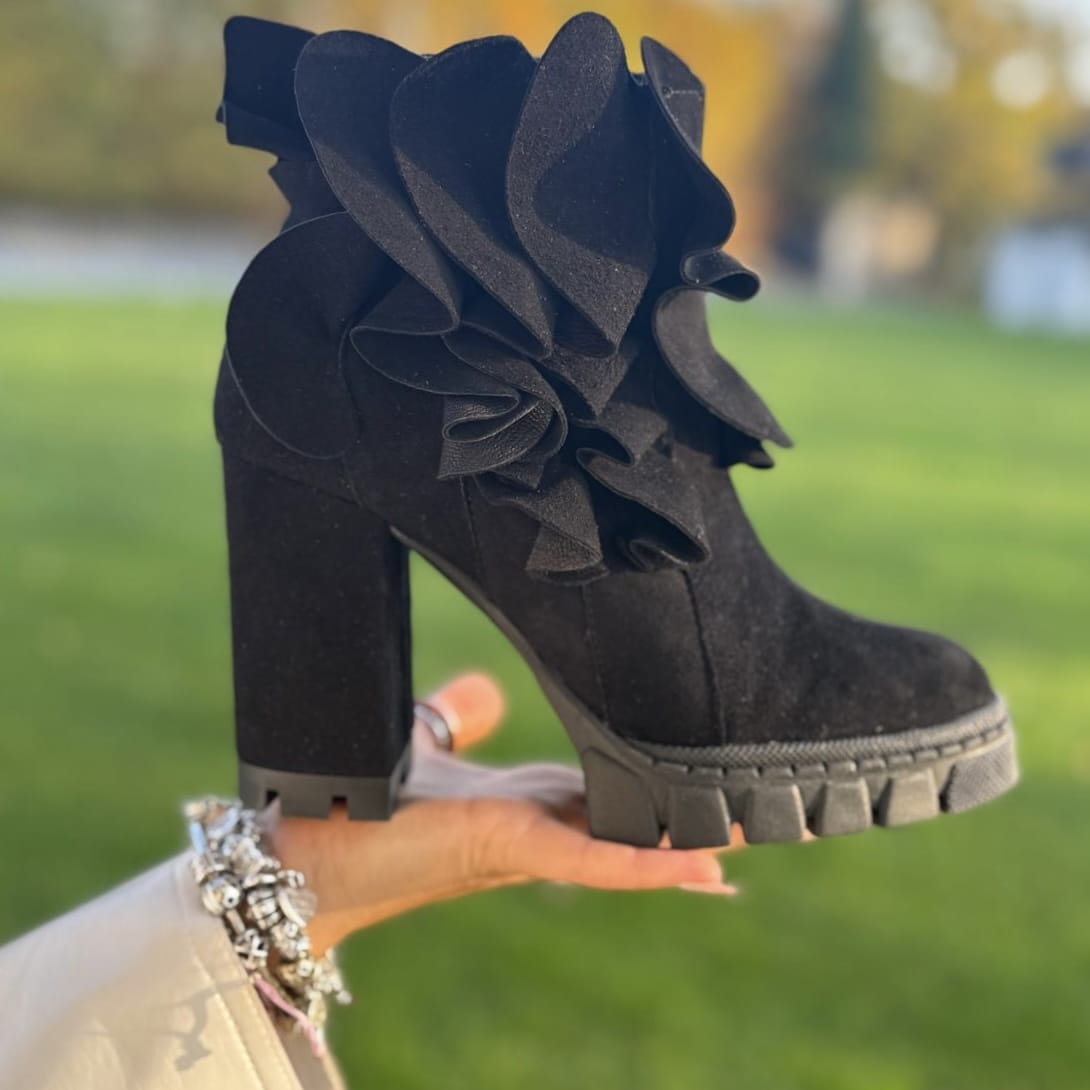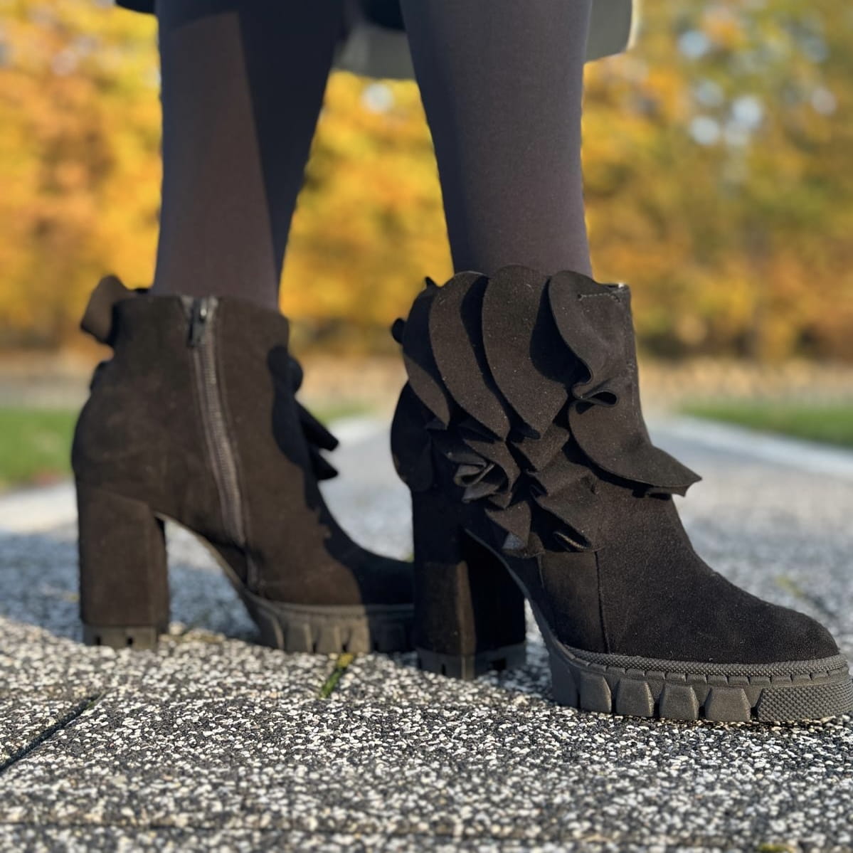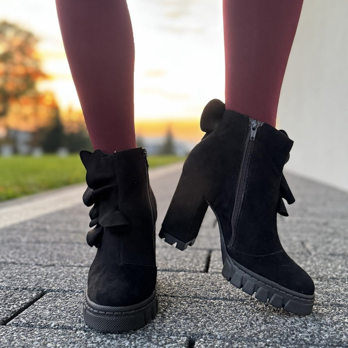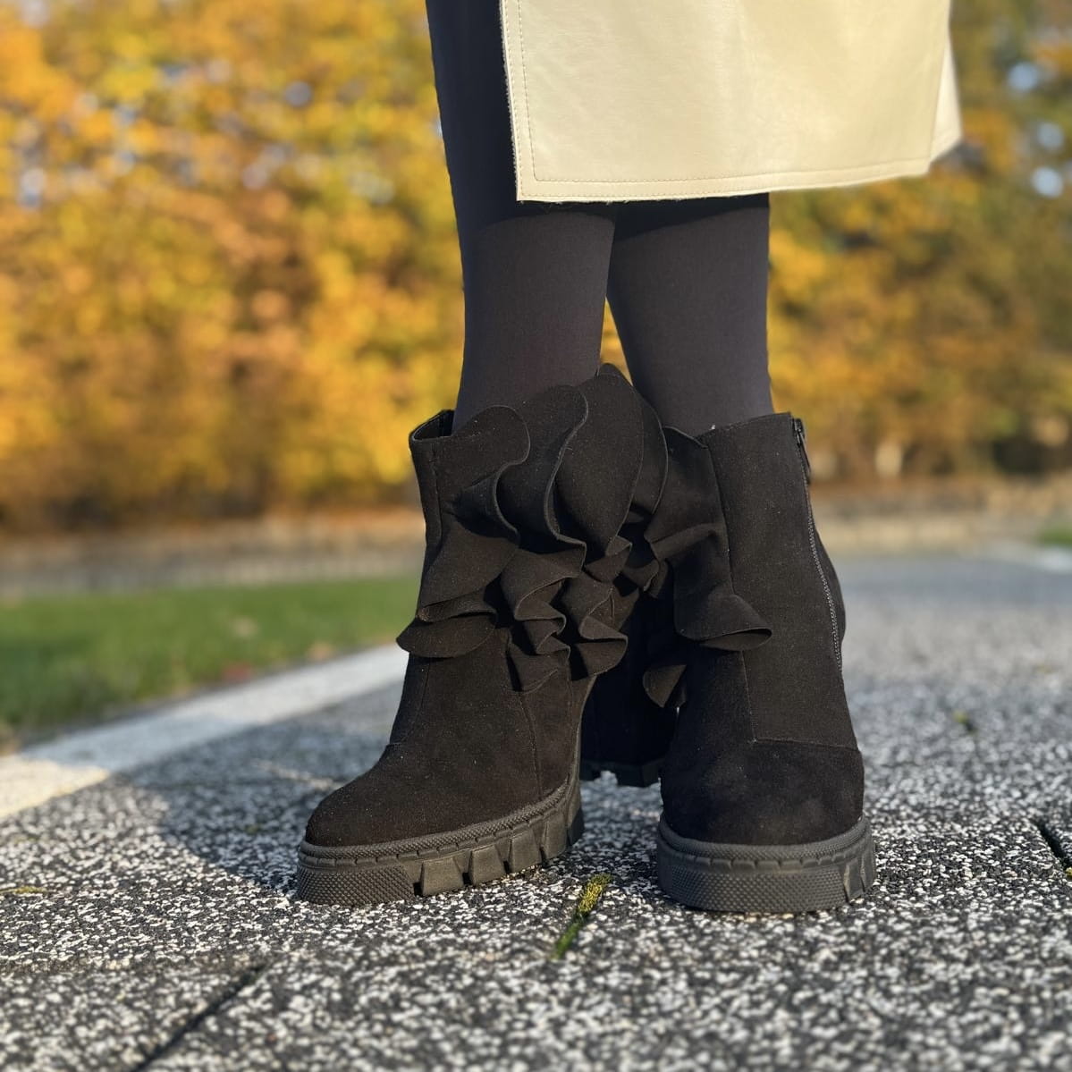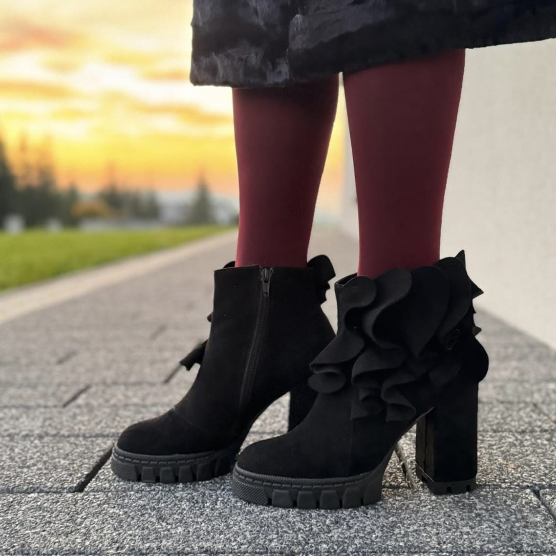 Czarne Botki Damskie z falbankami na obcasie BORGIA BLACK
