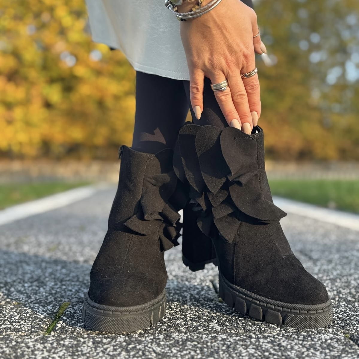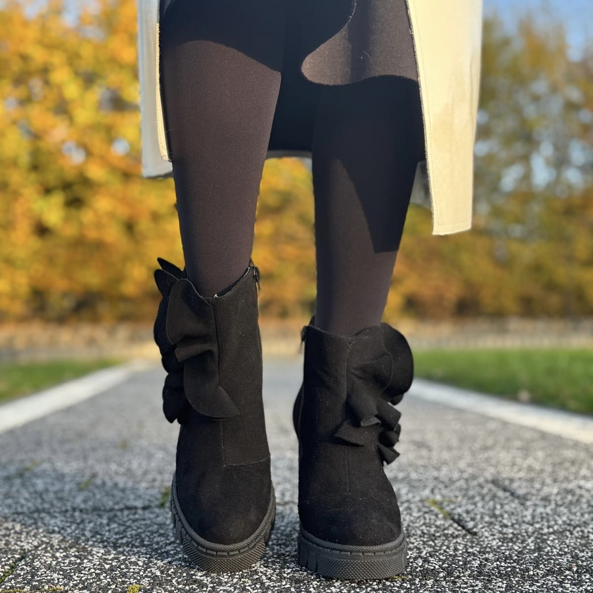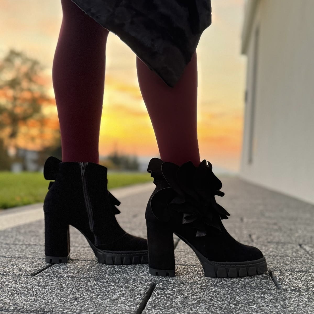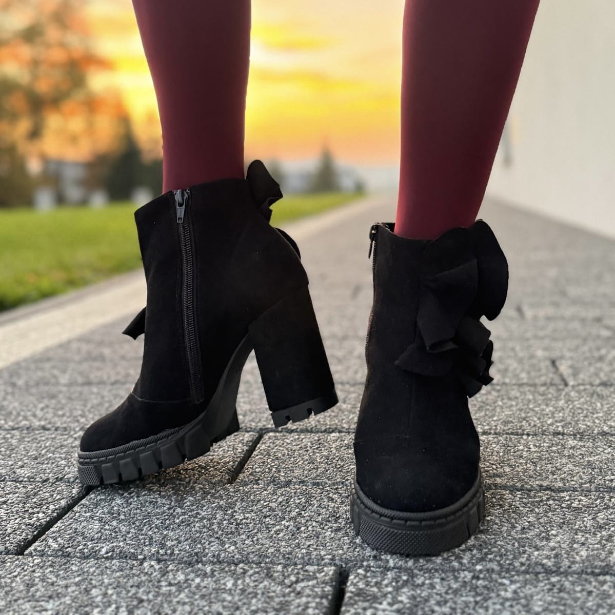 Czarne Botki Damskie z falbankami na obcasie BORGIA BLACK