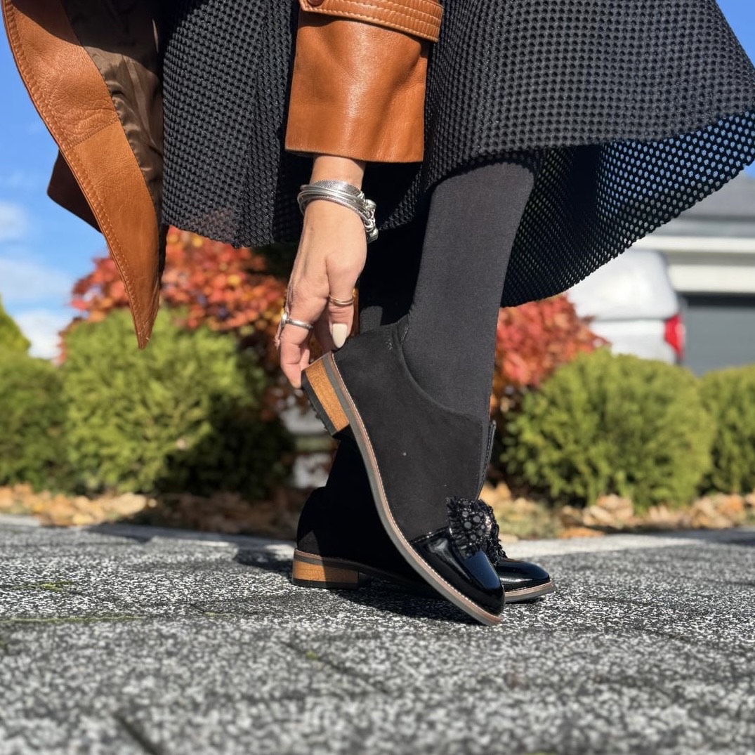 Czarne Eleganckie Półbuty Damskie LURSO model LAGO BLACK skóra naturalna