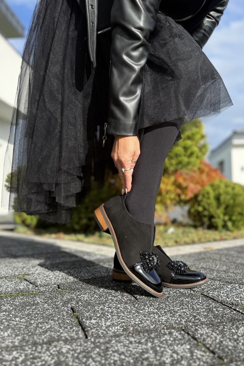 Model Lago to piękne i eleganckie półbuty damskie. Prosty krój cholewki został ozdobiony przpiękną wysadzaną cyrkoniami kokardą. Buty wykonano na eleganckiej, wysokiej jakości podeszwie. Model taki będzie pięknym dopełnieniem każdej stylizacji.