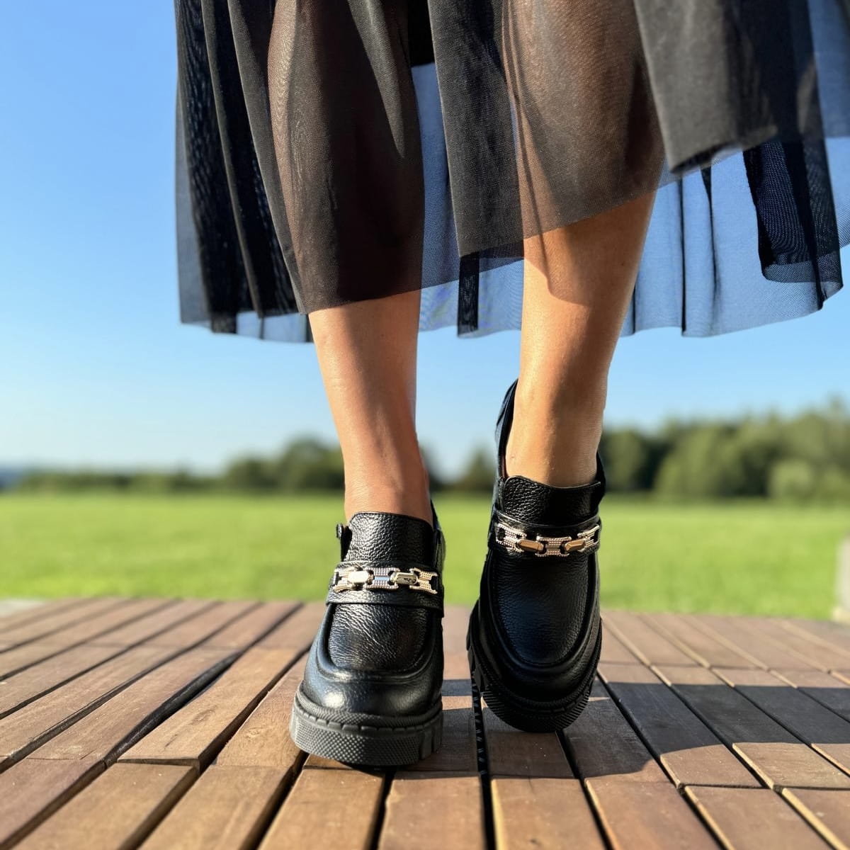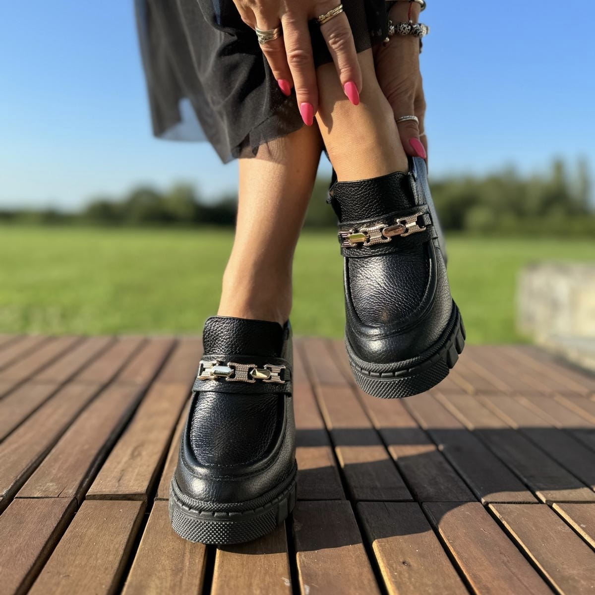 NETTUNO to przepiękny model mokasyna. Buty mają troszkę wyższy bok przez co lepiej utrzymują się na na nodze, są stabilniejsze. Zastosowana ozdoba w kolorze złota dodaje mu elegancji. Wzór został wykonany na podwyższonej podeszwie dzięki czemu mimo zastosowania wysokiego obcasa nie odczuwamy tej właśnie wysokości.