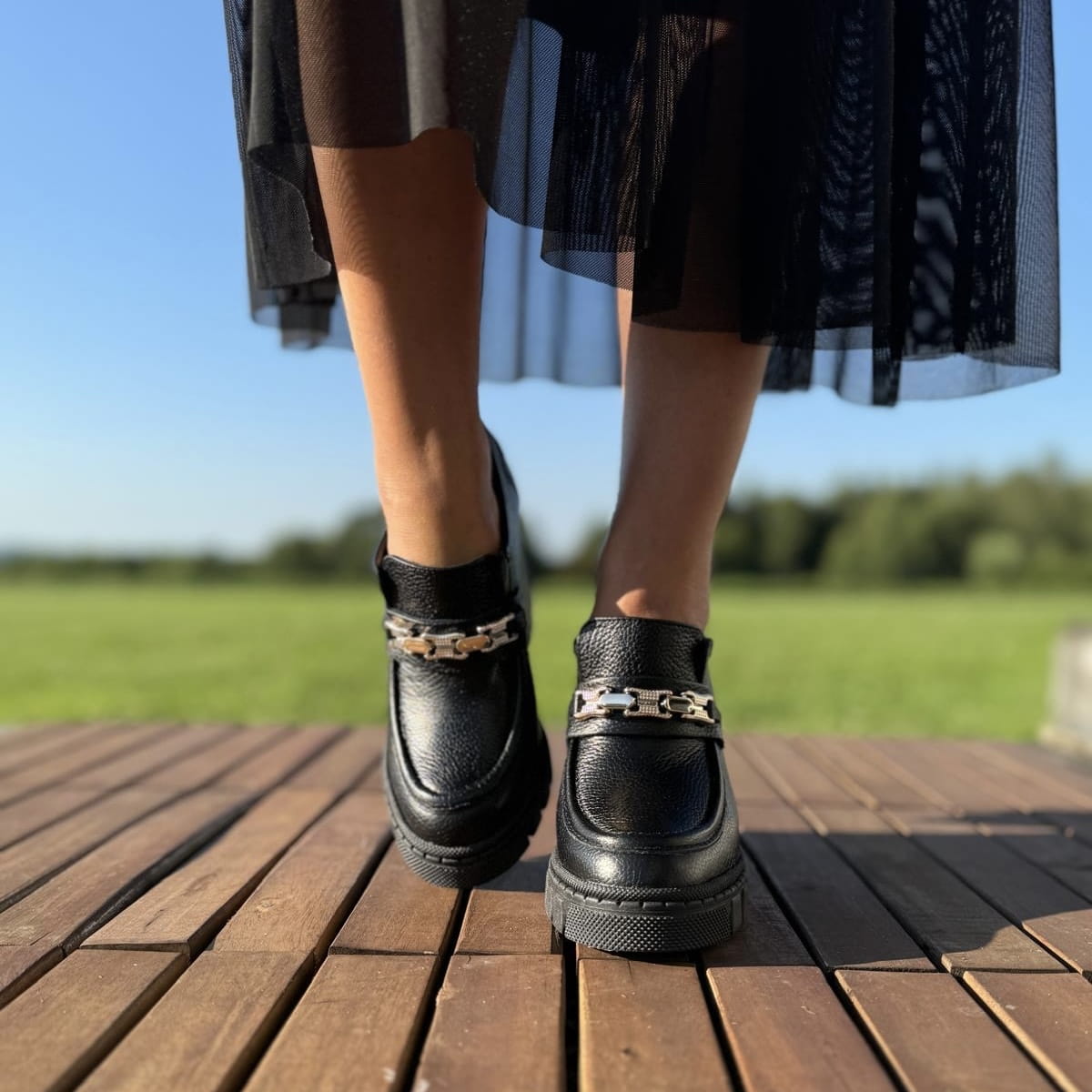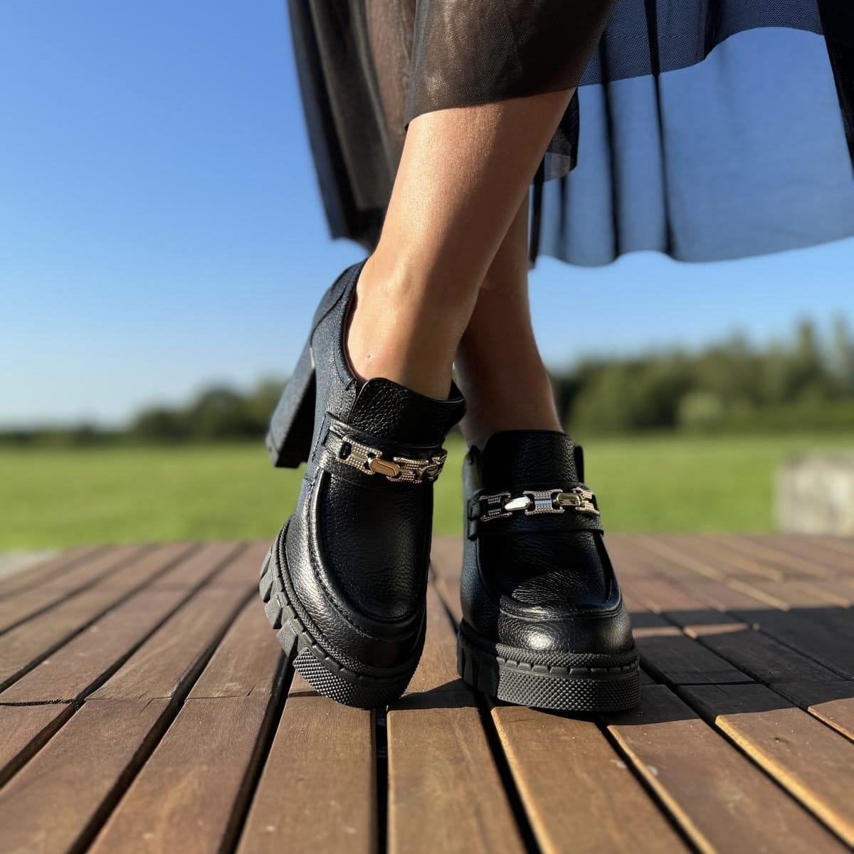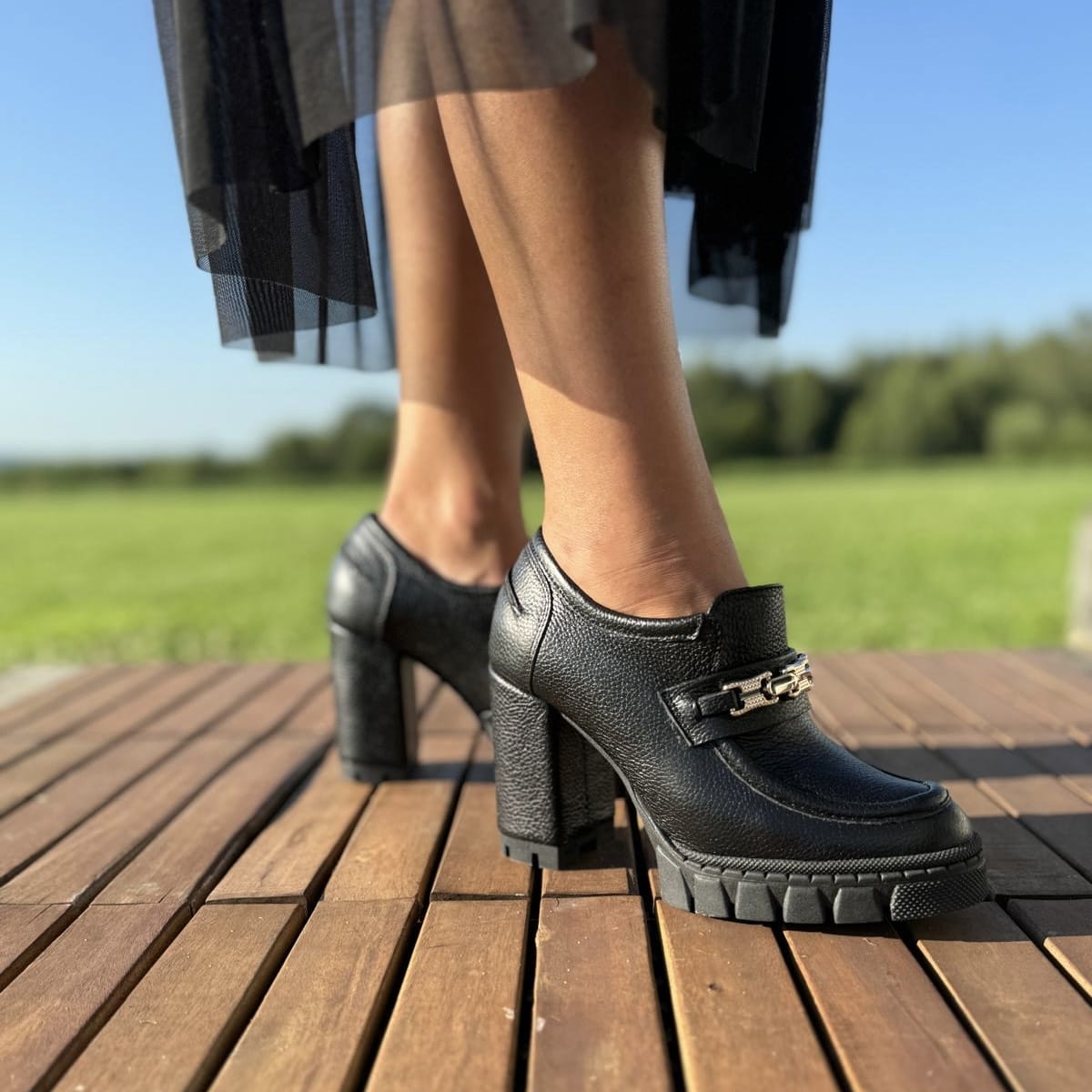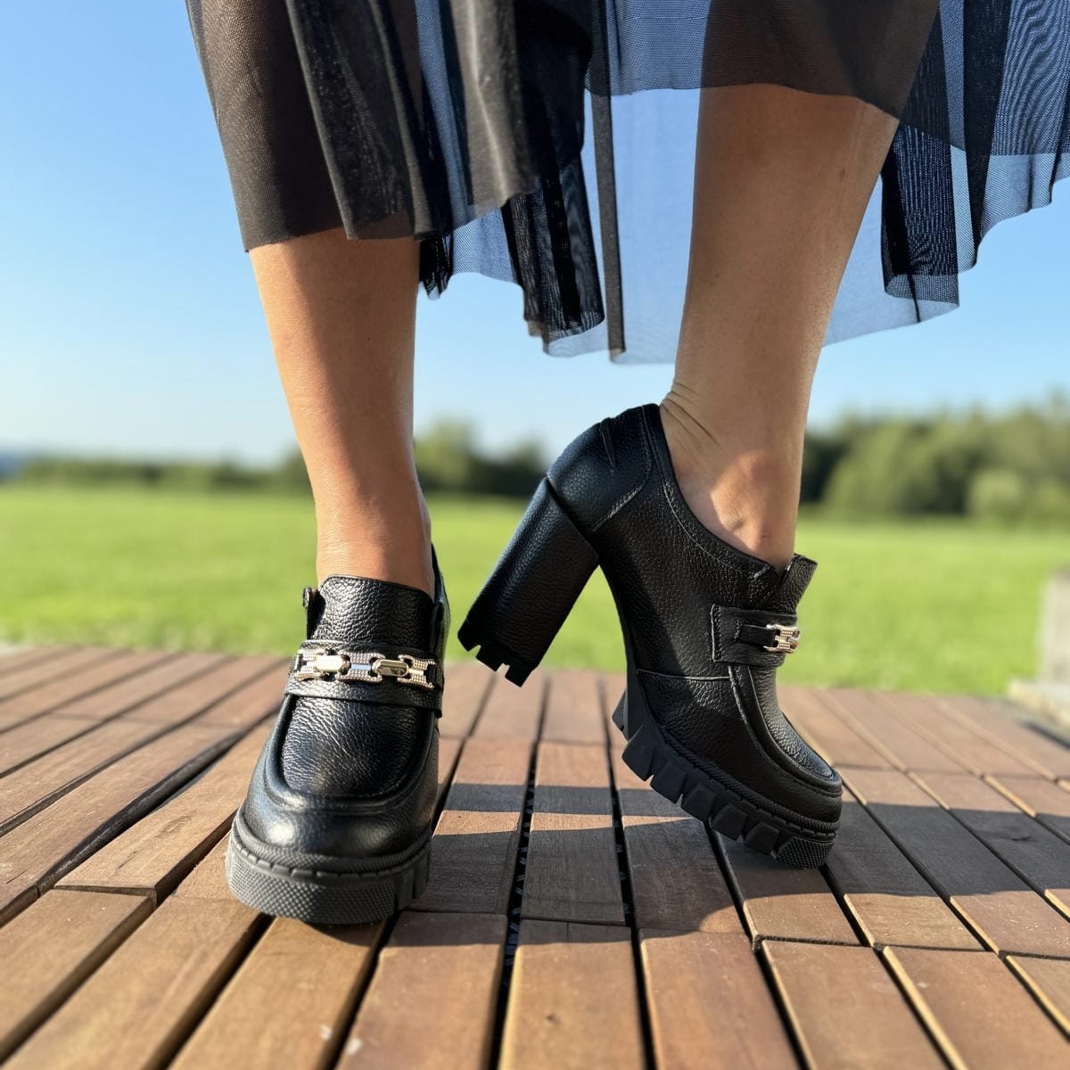 Cudowne damskie mokasyny na obcasie model NETTUNO BLACK.