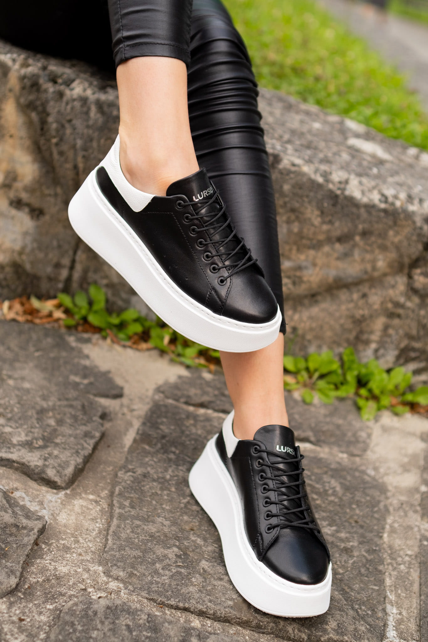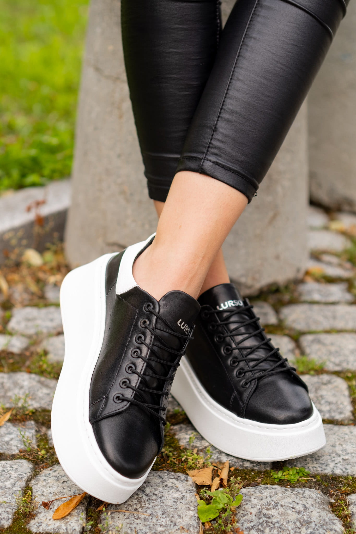 Czarne Sneakersy Damskie LURSO model ARLETTE BLACK skóra naturalna