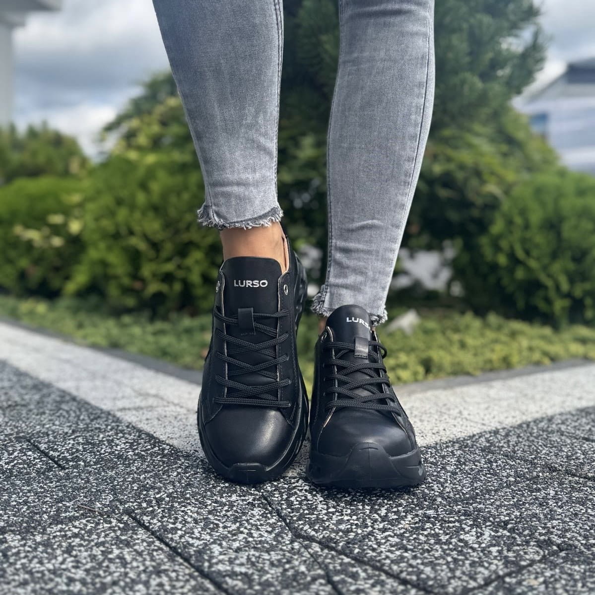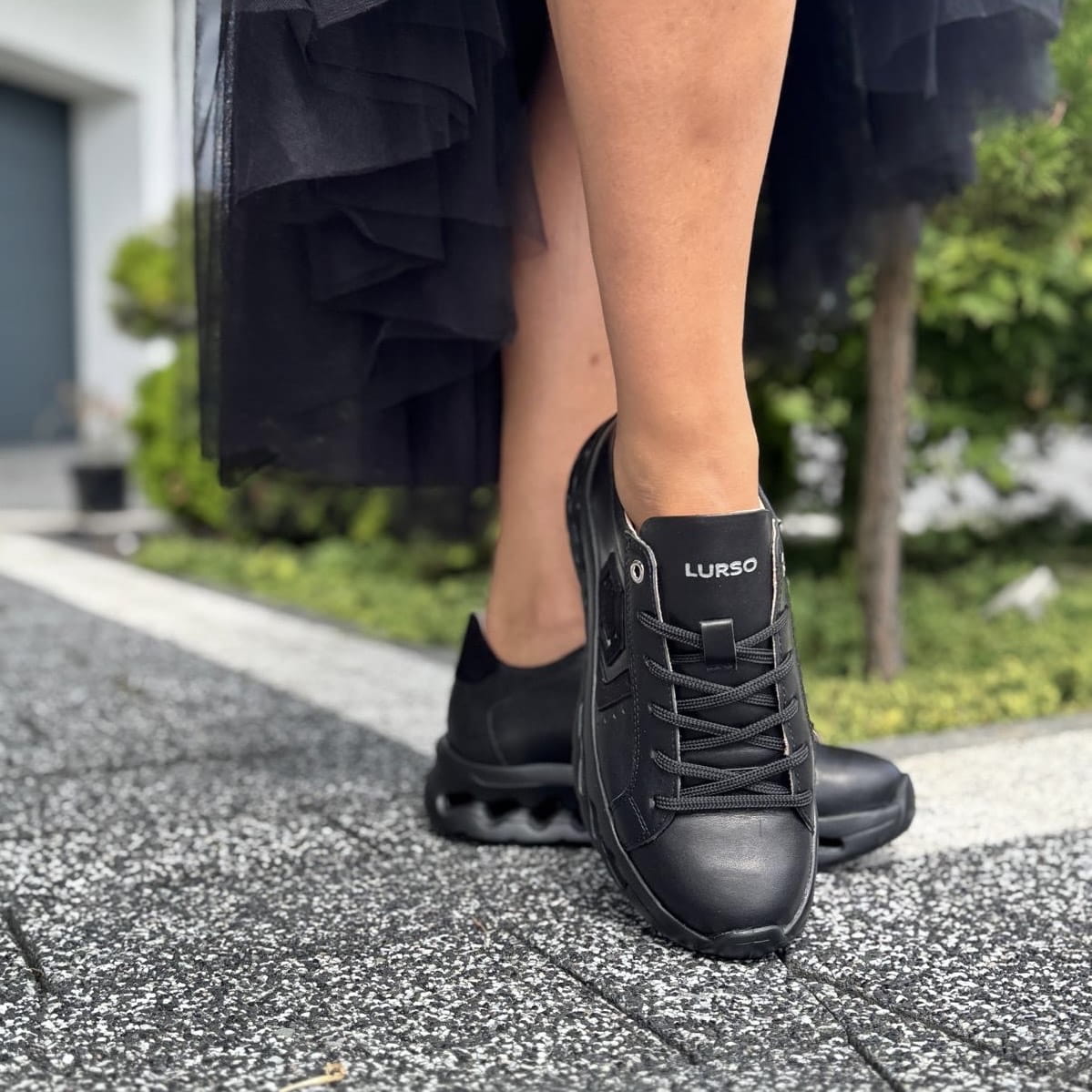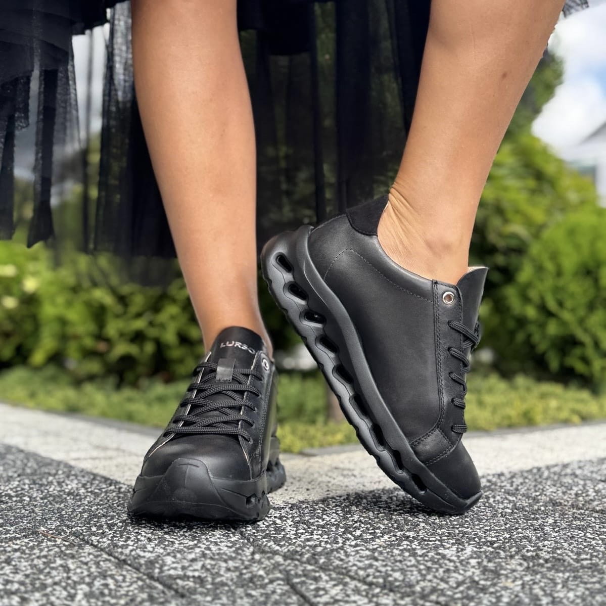 Czarne Sneakersy Damskie na sportowej podeszwie RUBANO BLACK skóra naturalna