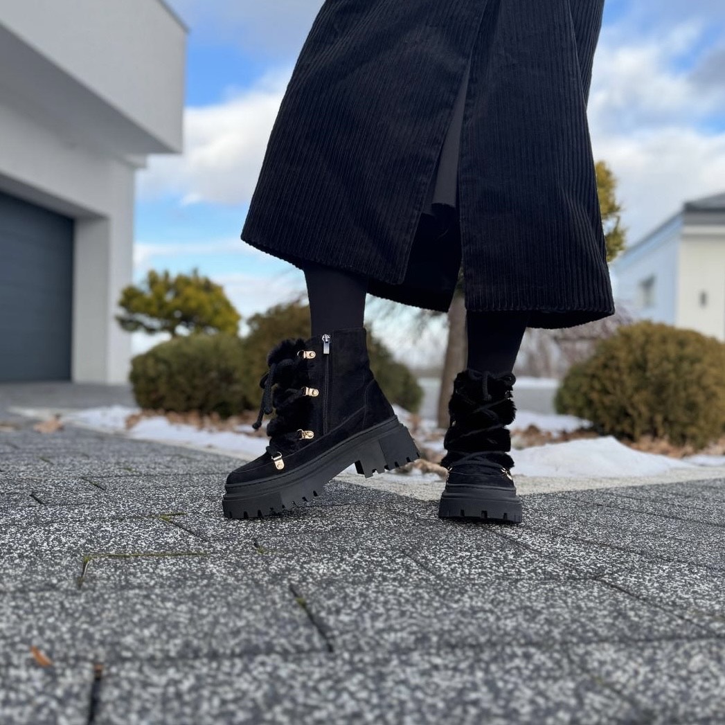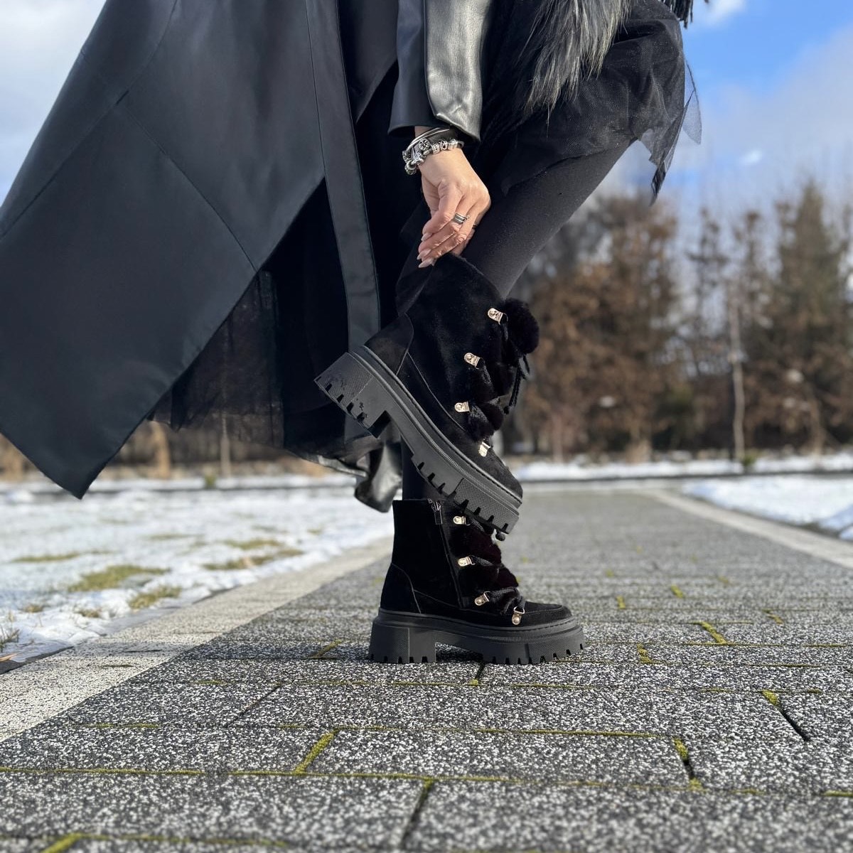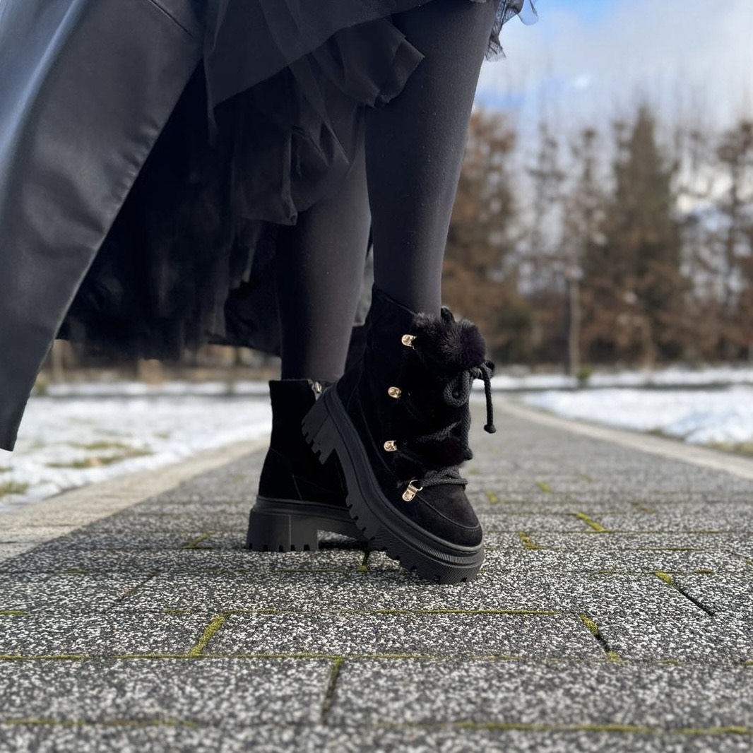 Czarne Śniegowce Damskie na traperowej podeszwie RADDA BLACK skóra naturalna