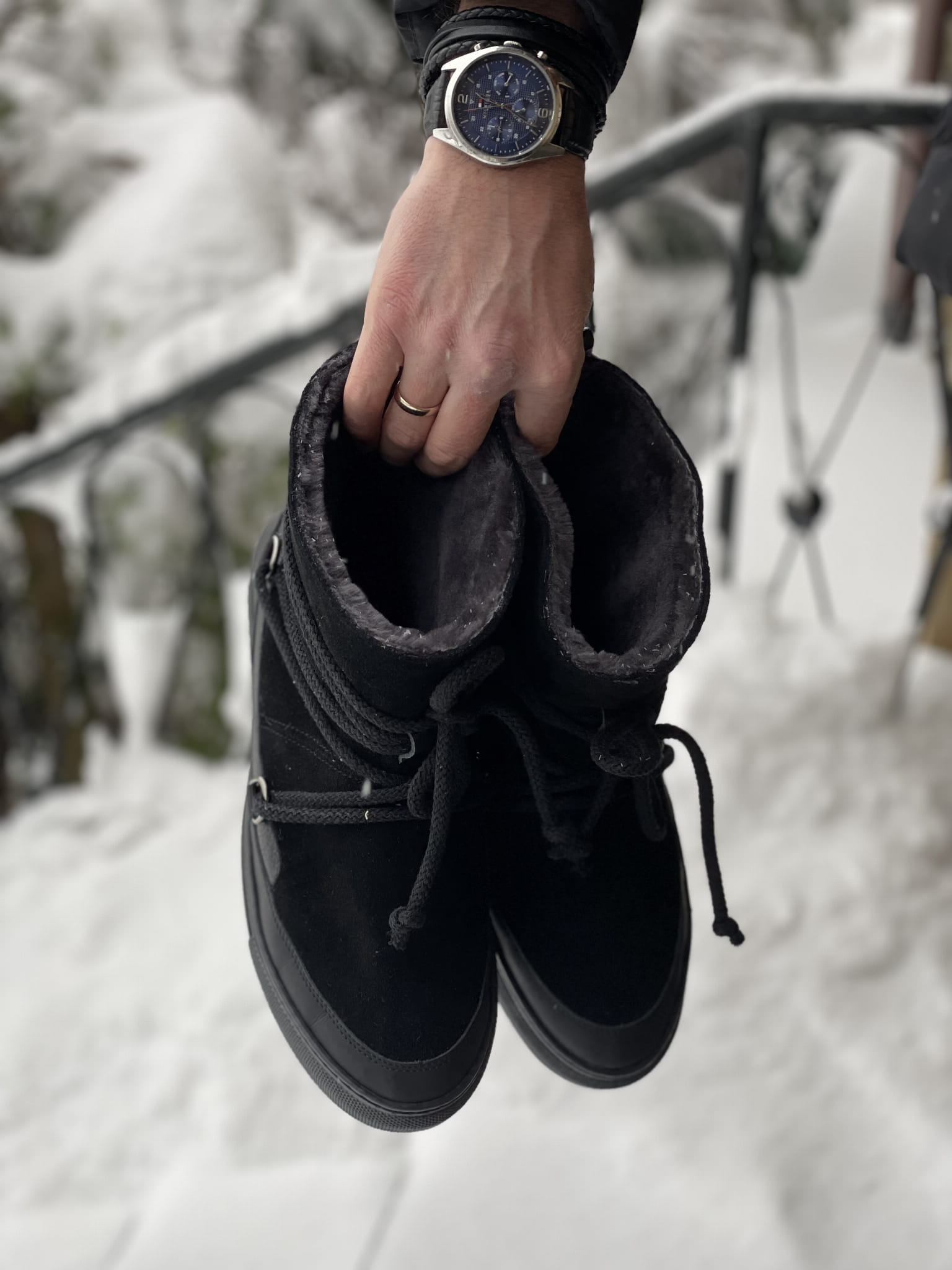 Czarne Śniegowce Męskie LURSO model LORIENT BLACK skóra naturalna