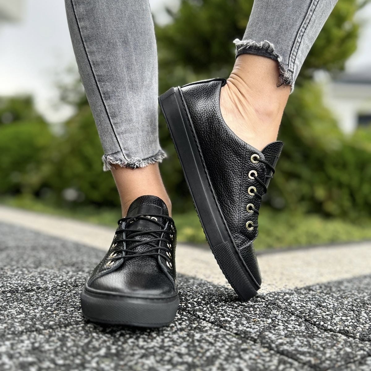 Czarne Trampki Damskie LURSO model DESIREE BLACK skóra naturalna