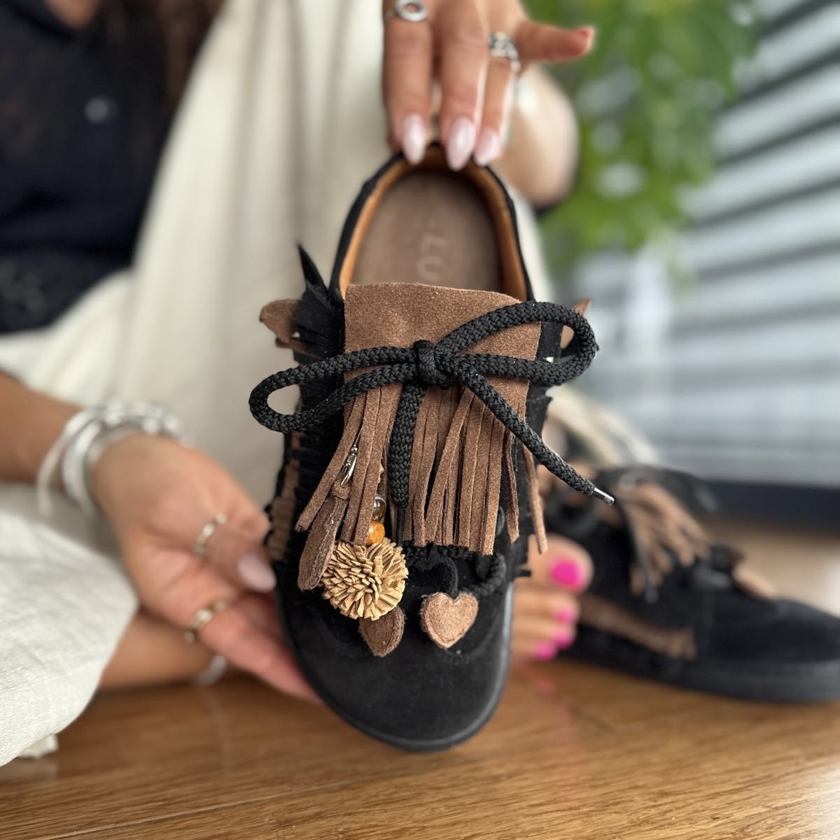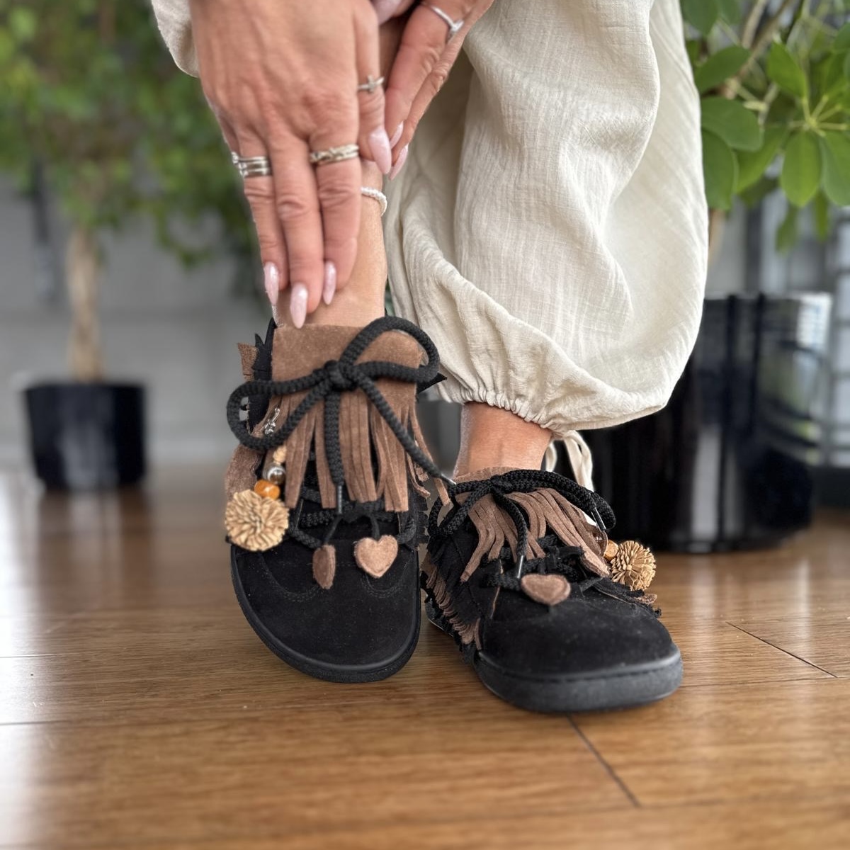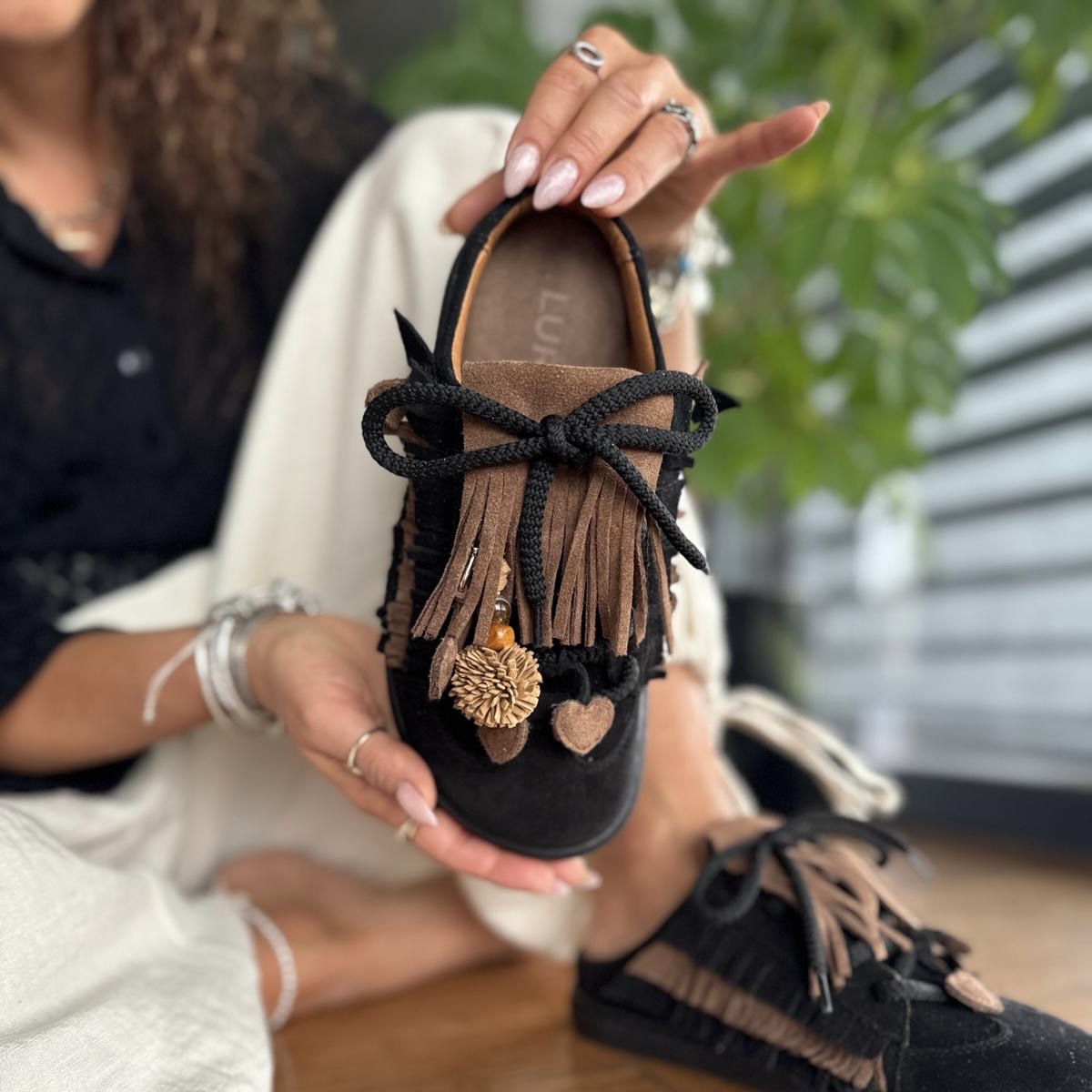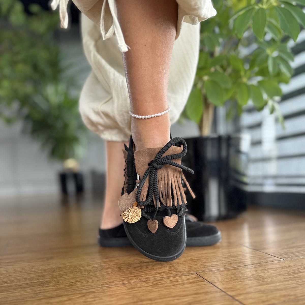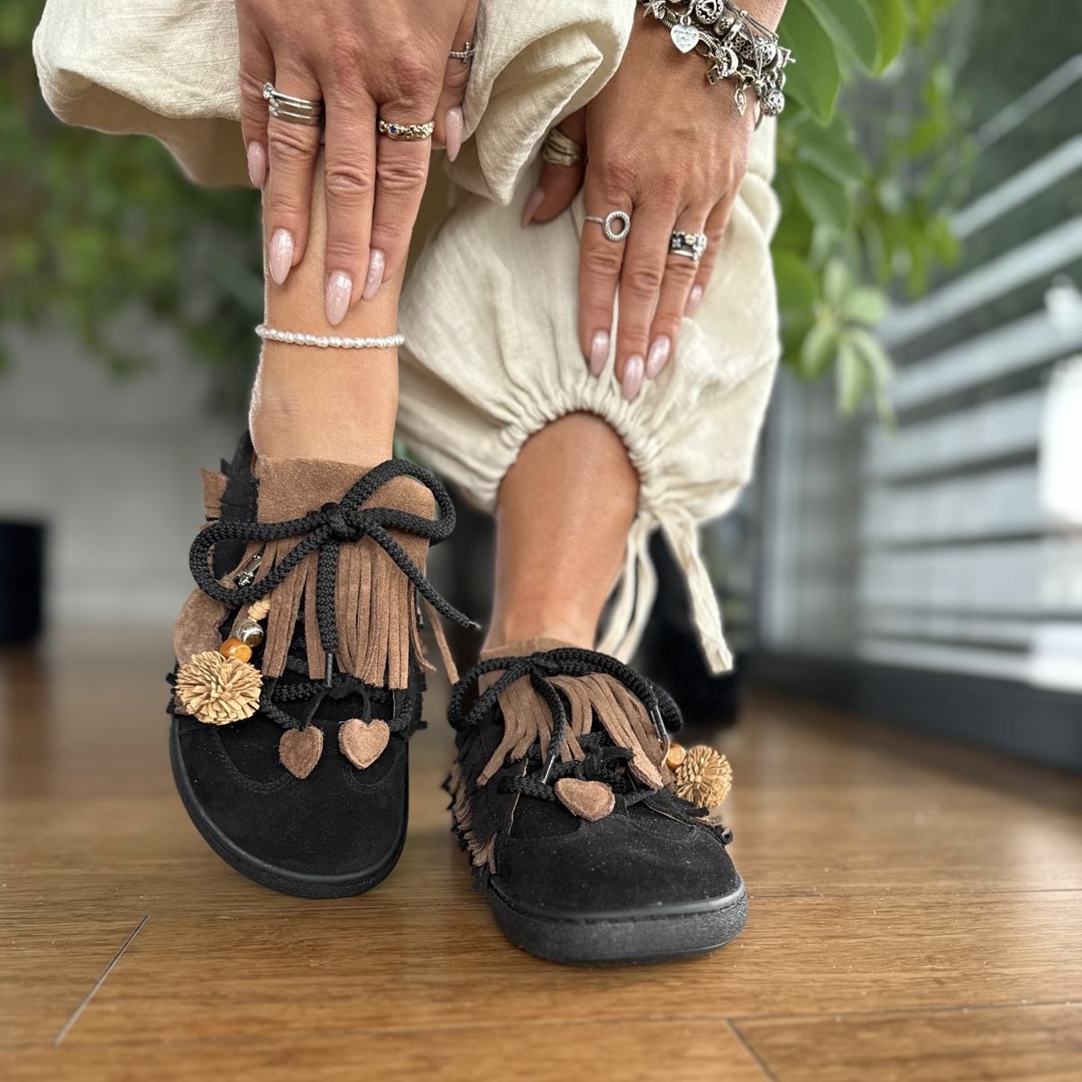 Czarne Trampki Damskie LURSO typu barefoot bez pięty z ozdobami model SPEZIA BLACK skóra naturalna