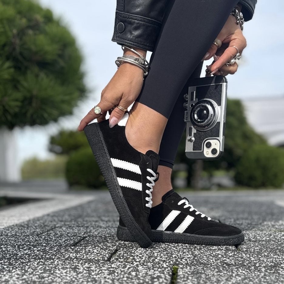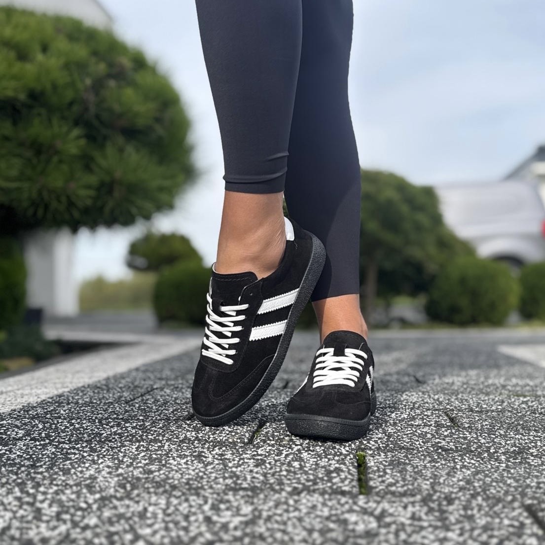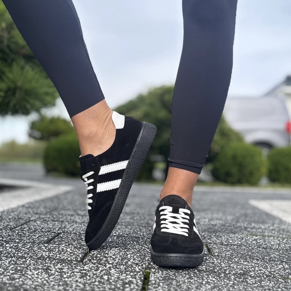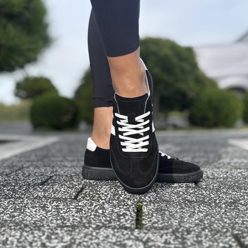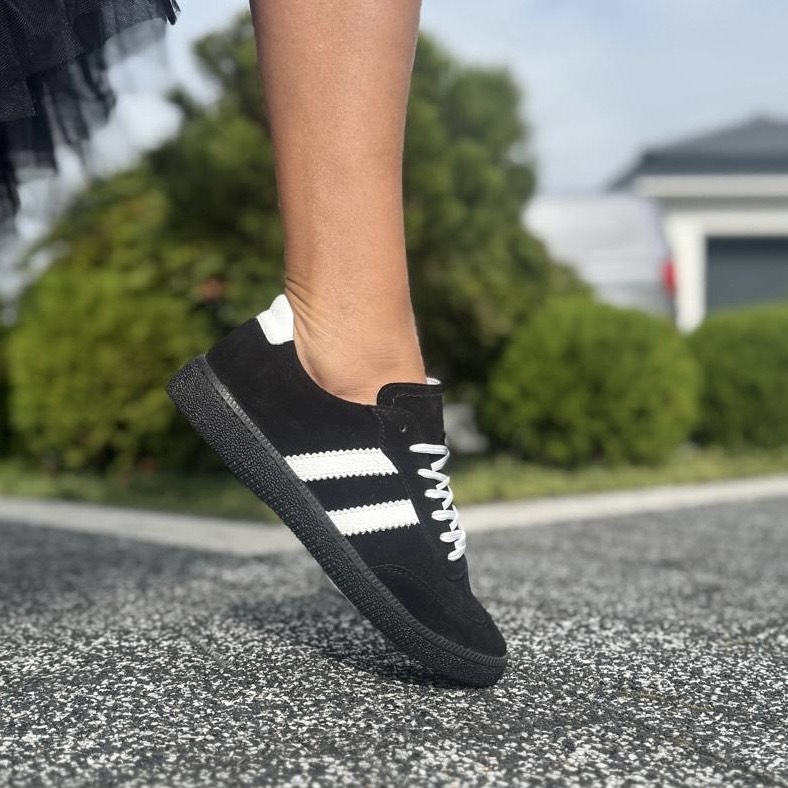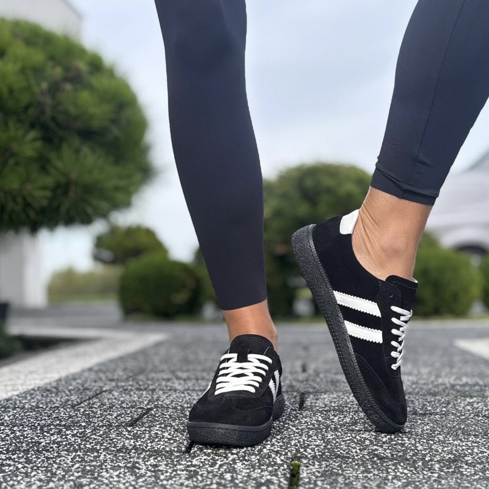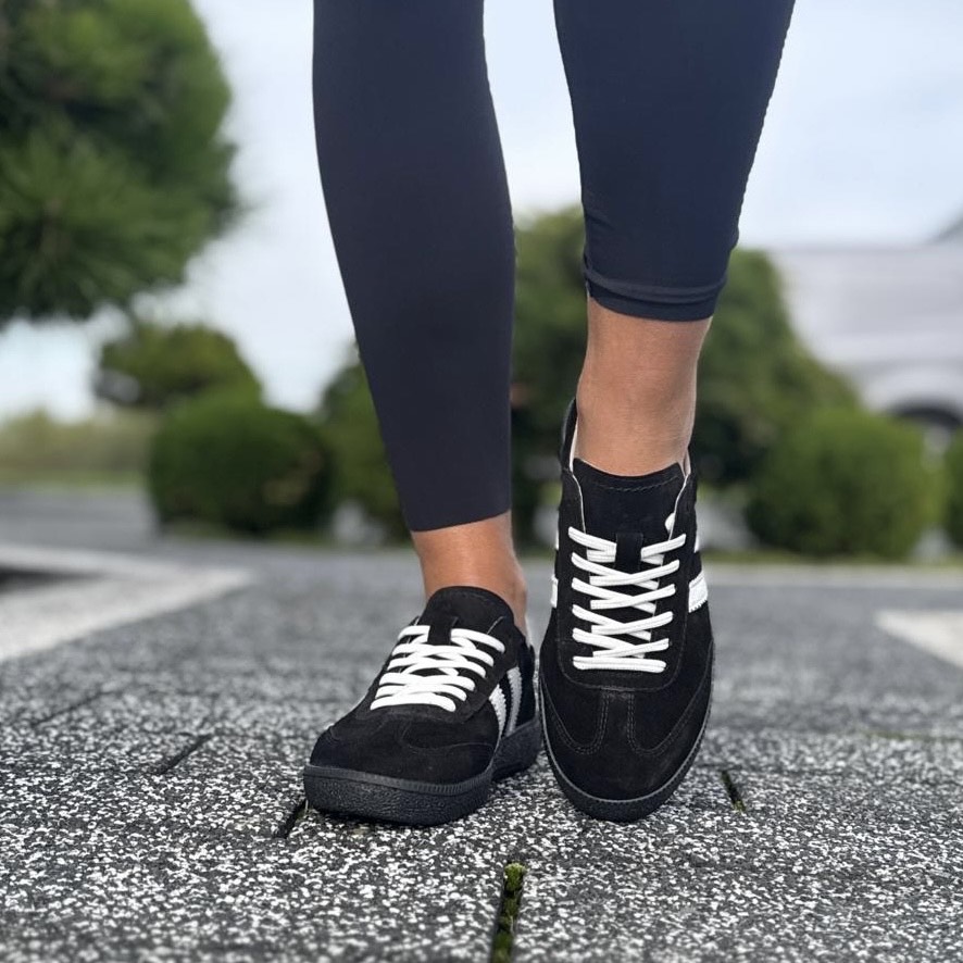 Czarne Trampki Damskie z paskami na płaskiej podeszwie AGRA BLACK skóra naturalna