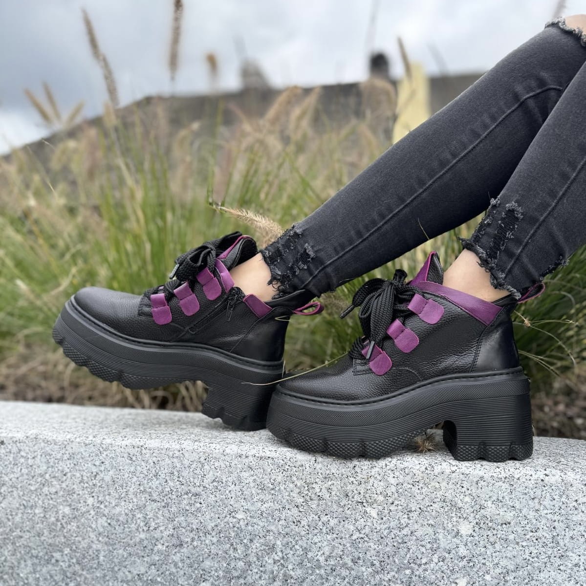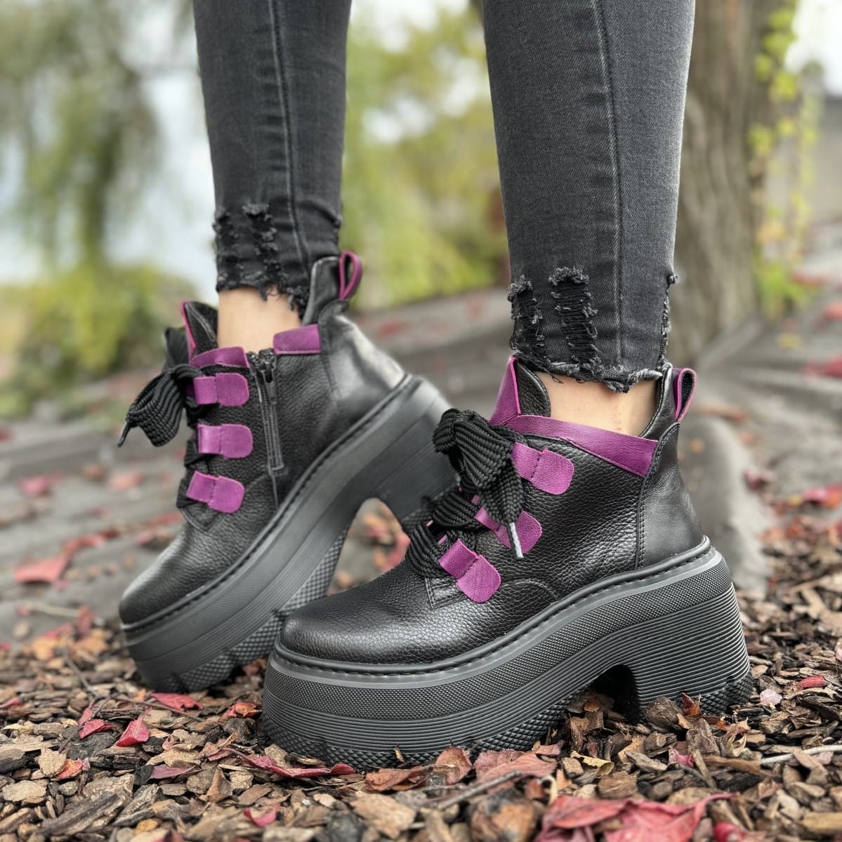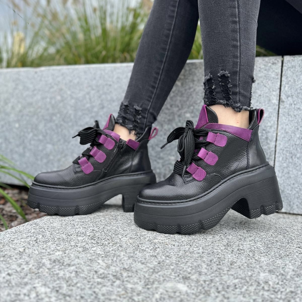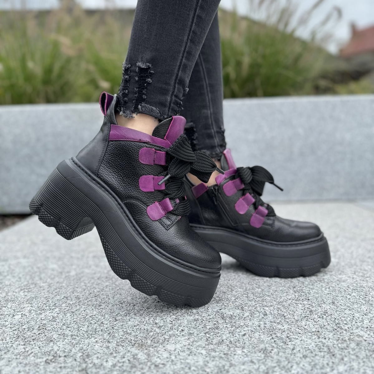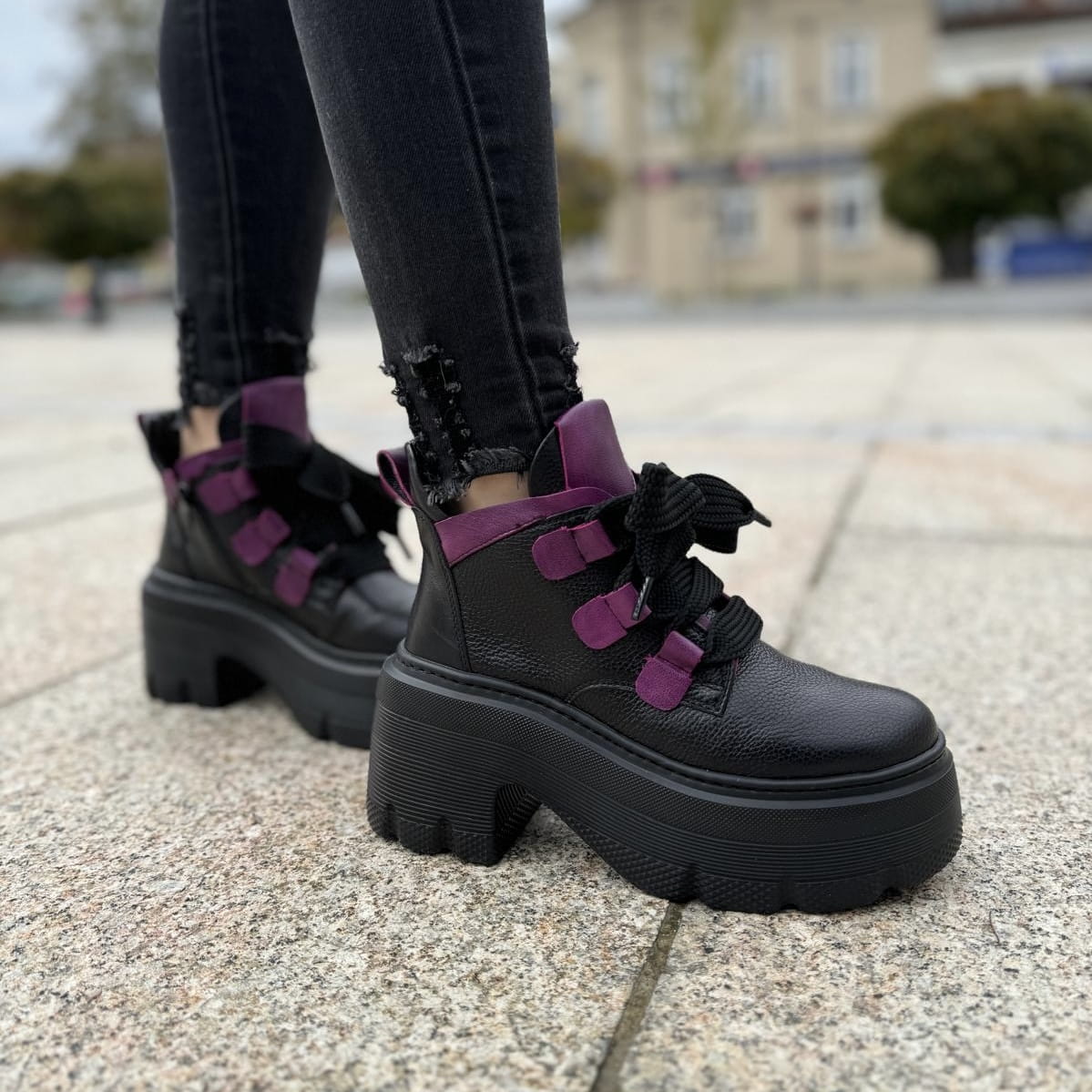 Piękne traperki damskie na podwyższonej podeszwie CORATO GREEN