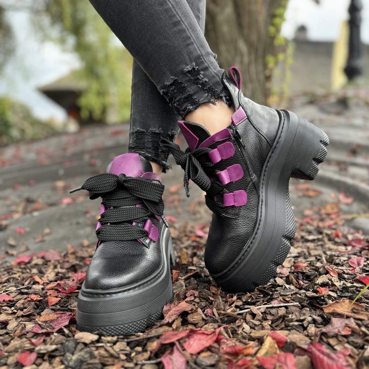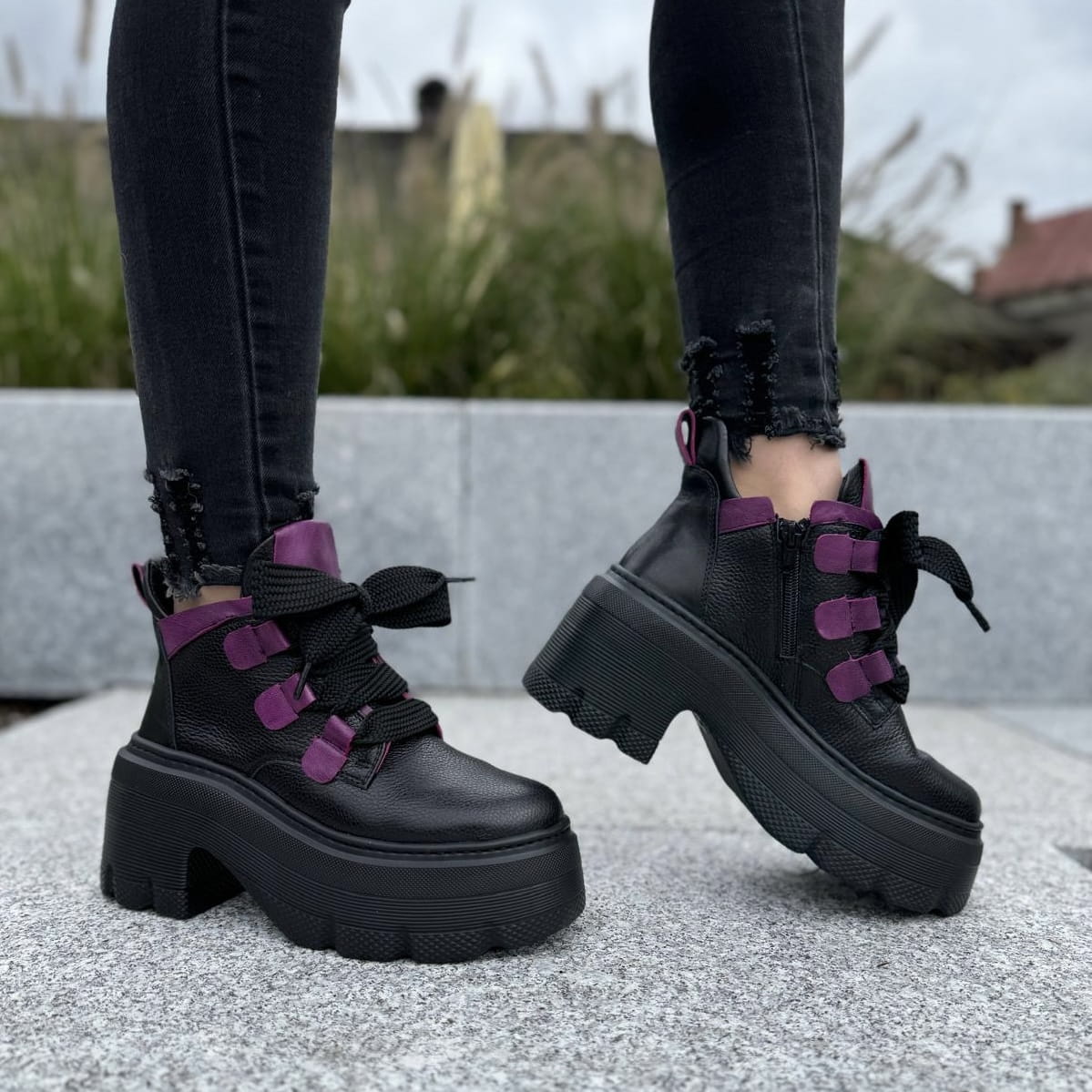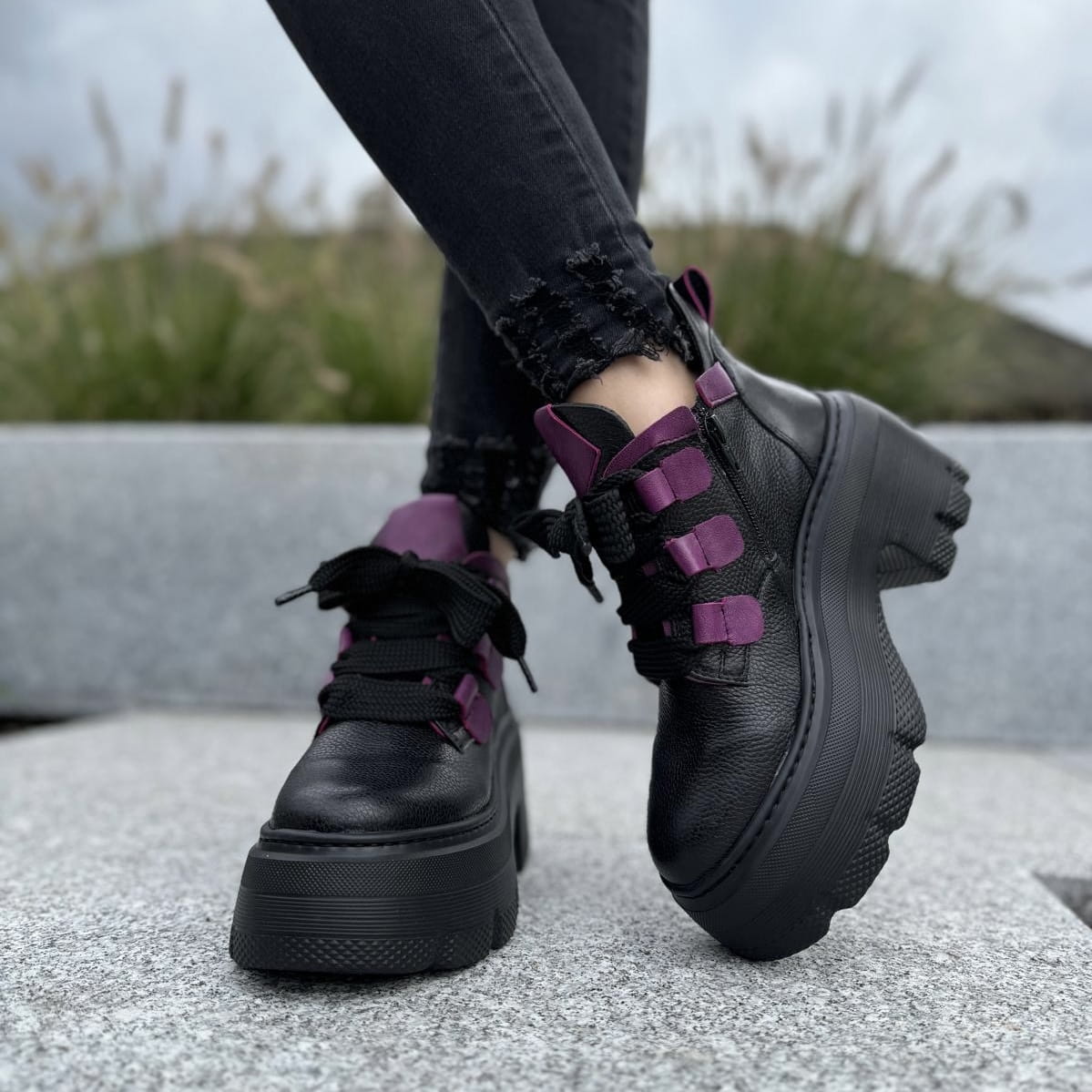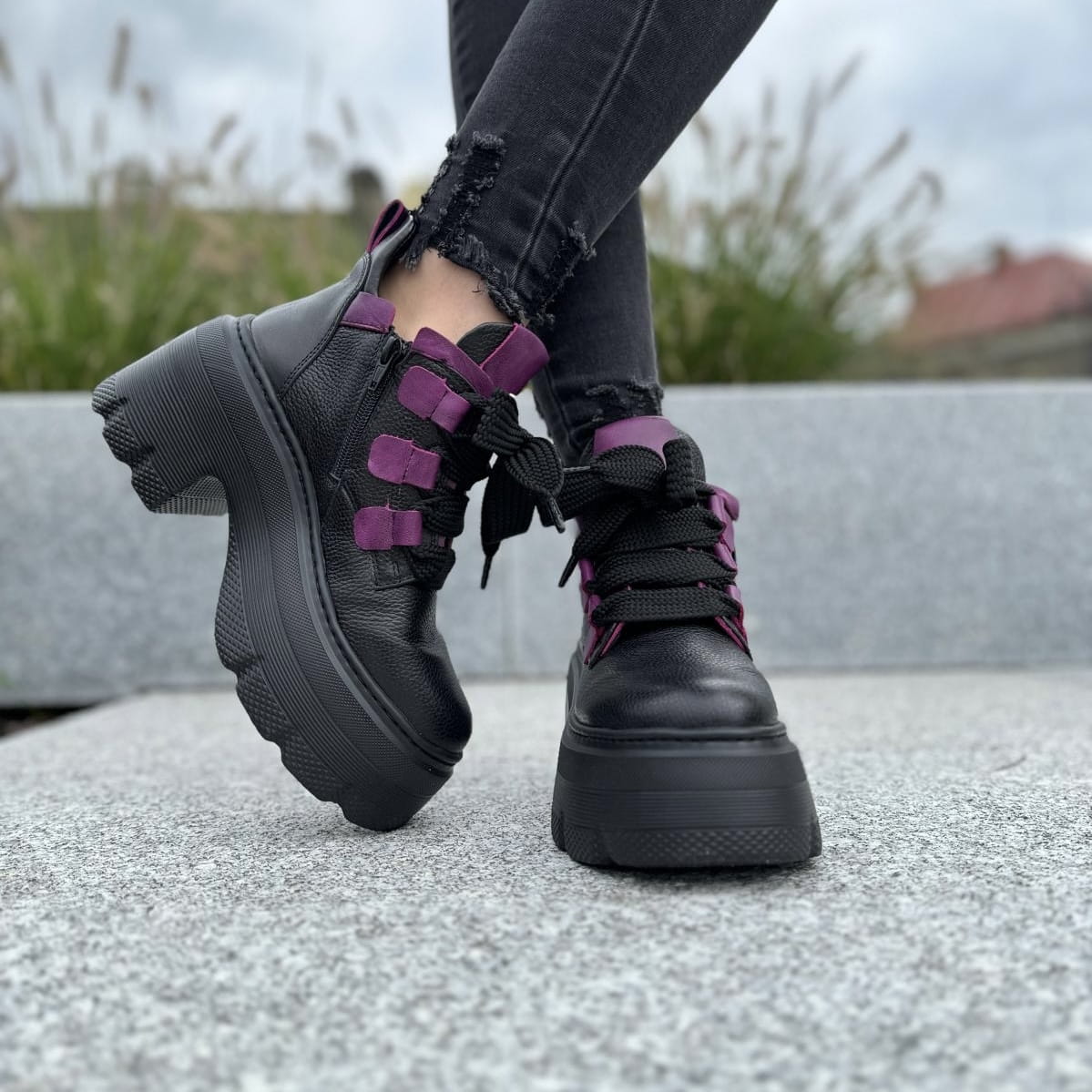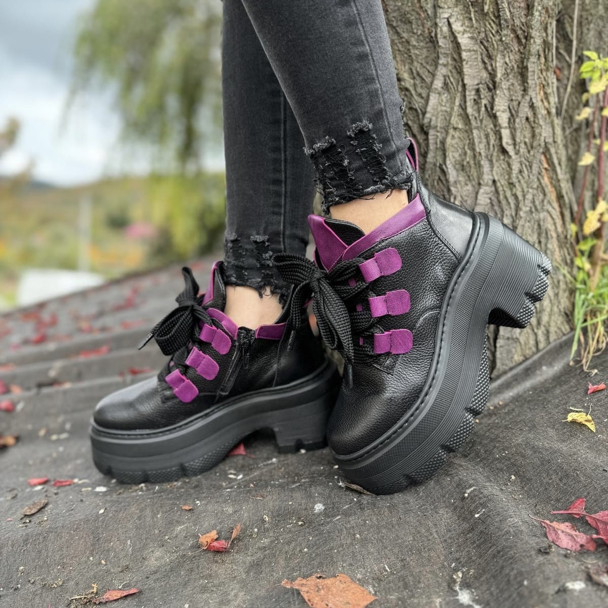 Piękne traperki damskie na podwyższonej podeszwie CORATO GREEN
