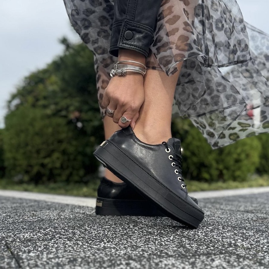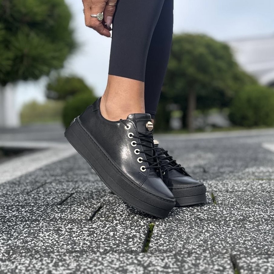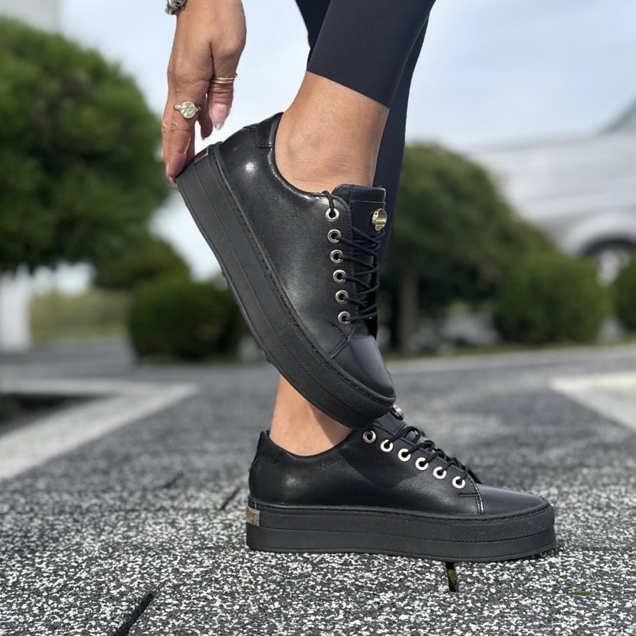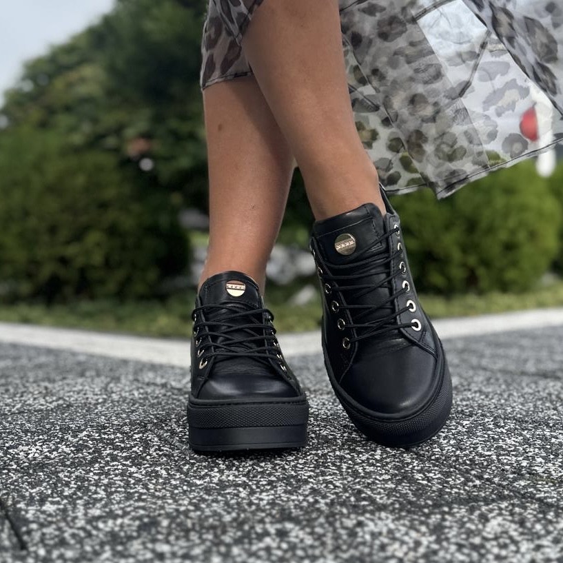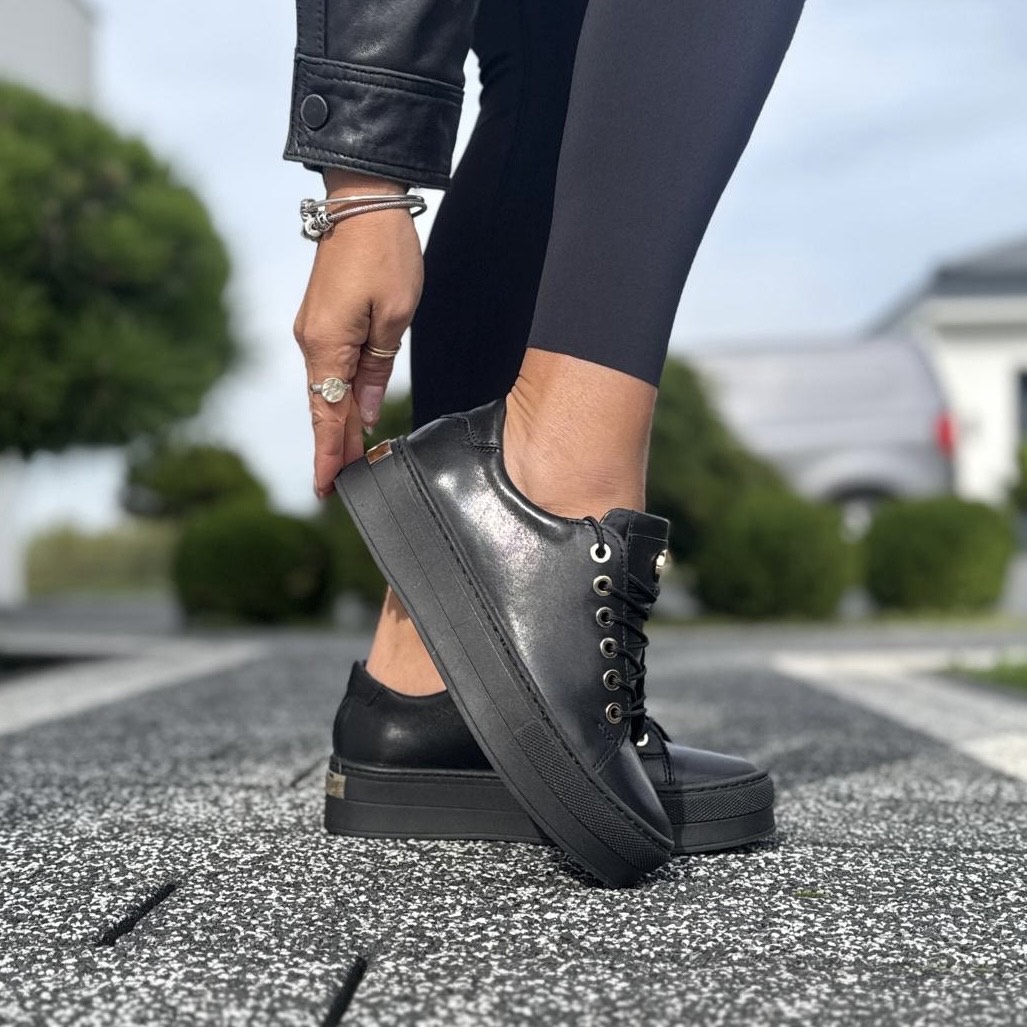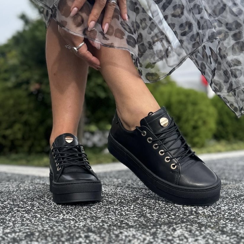 Czarne eleganckie Trampki Damskie na platformie ANDALI BLACK skóra naturalna