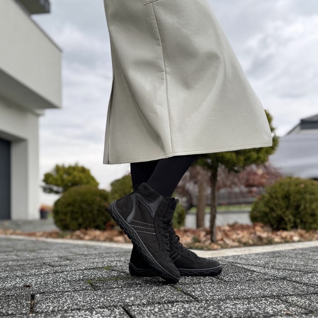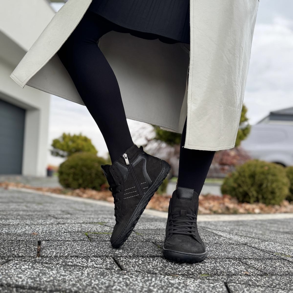Czarne wyższe ocieplane Trampki Damskie LURSO typu barefoot model ZOCCA BLACK skóra naturalna
