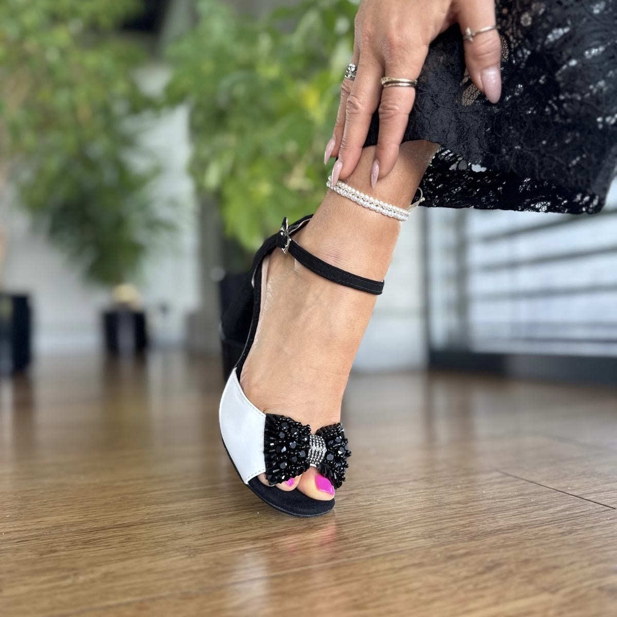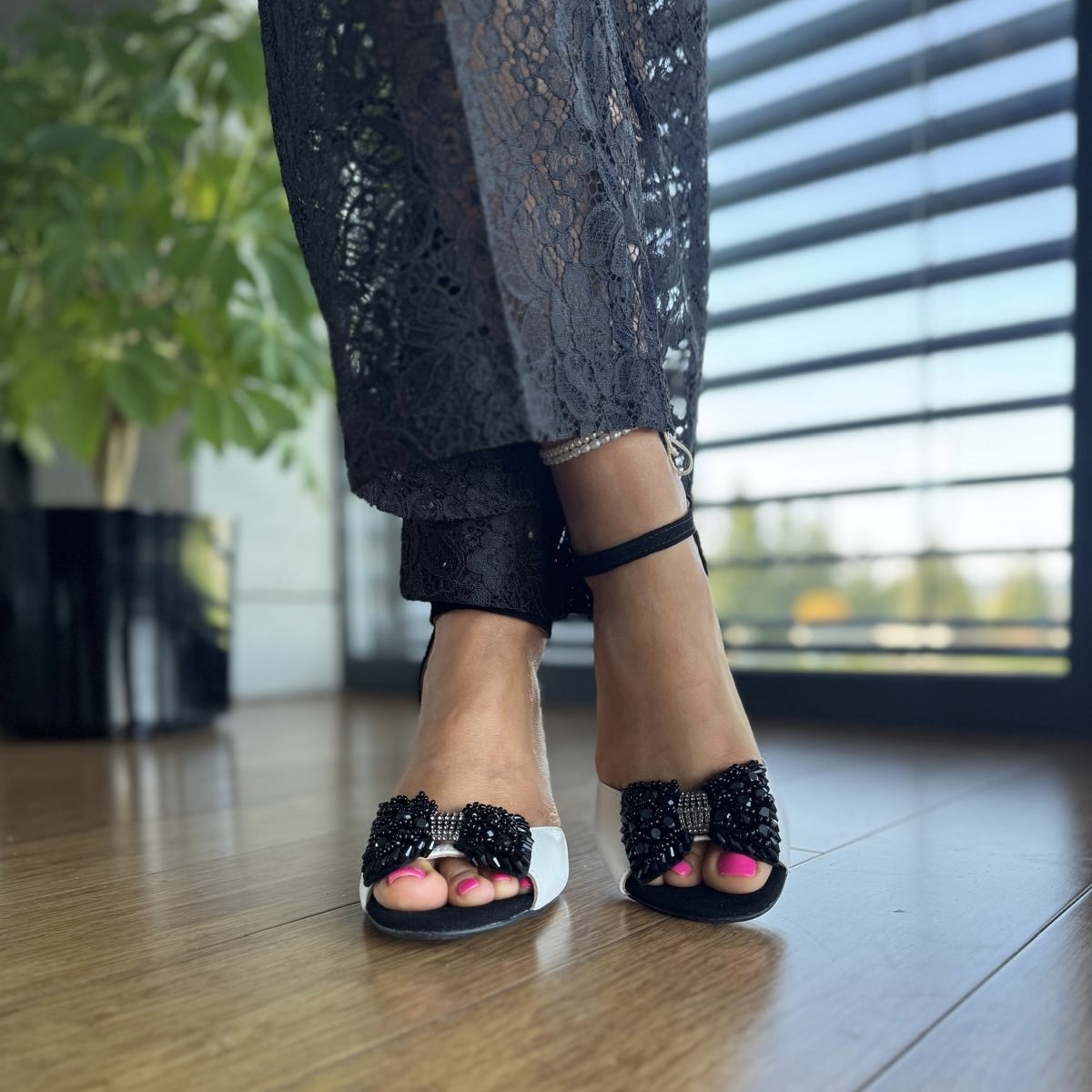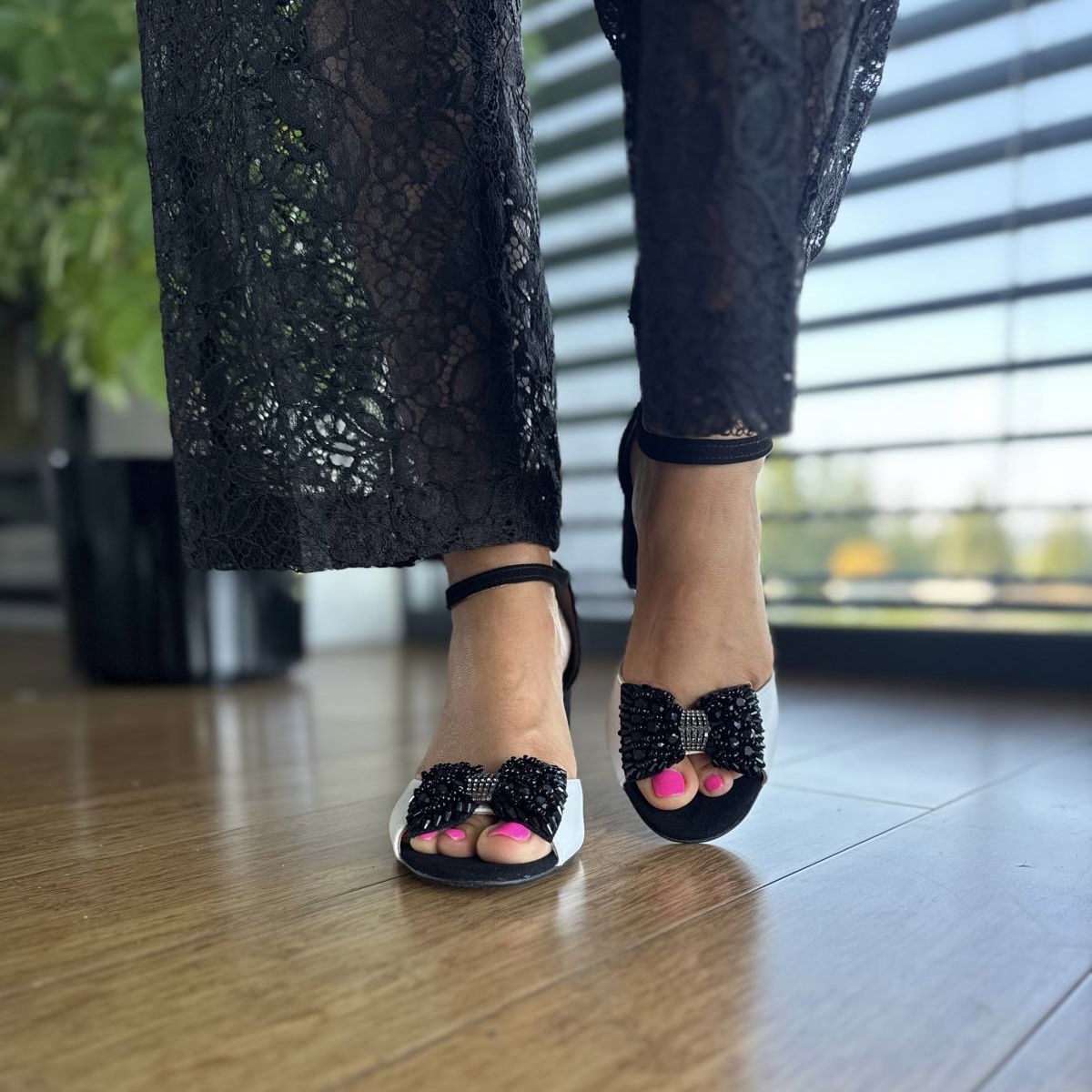 Cudowne eleganckie sandały model AVERY BLACK WHITE