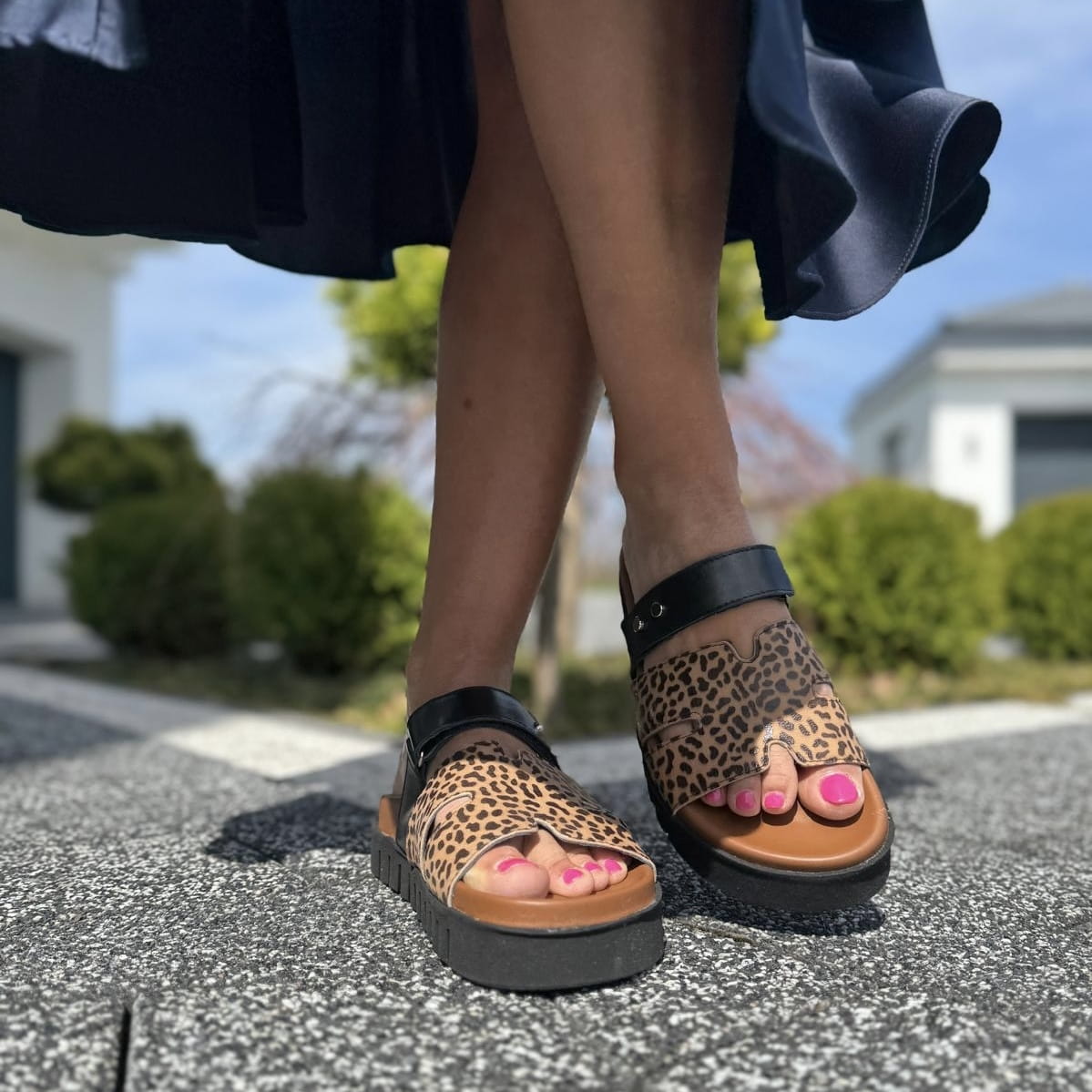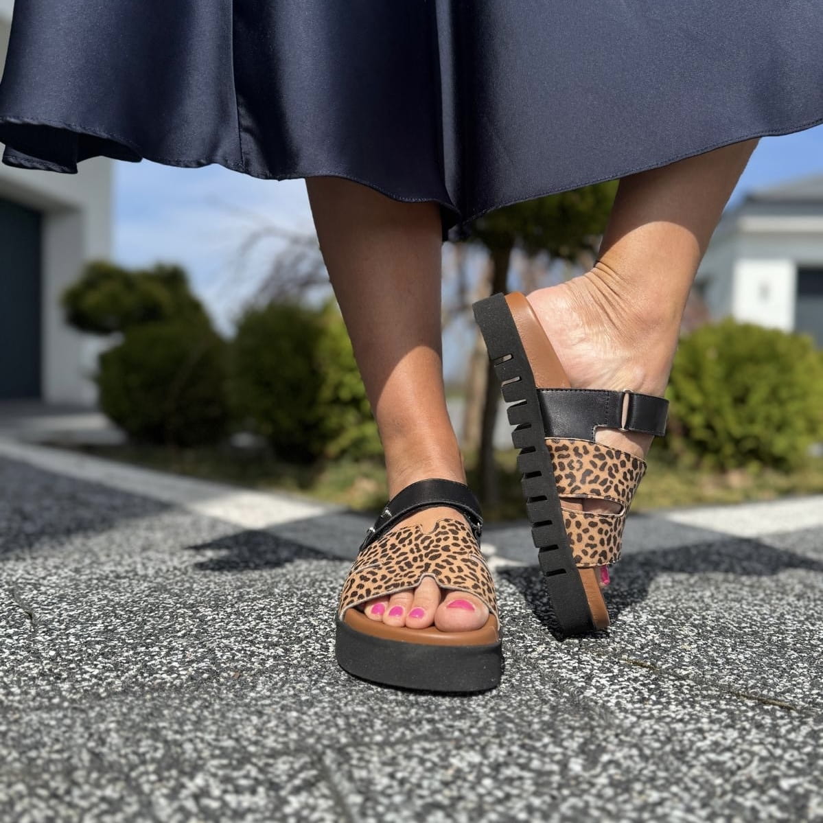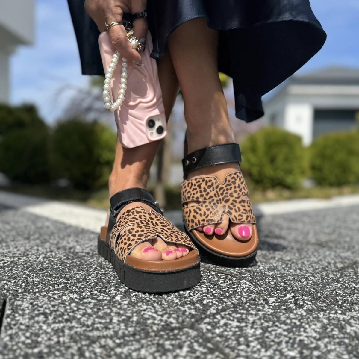 Czarno-rude Klapki Damskie w panterkę LURSO model ERBA BLACK/COGNAC skóra naturalna