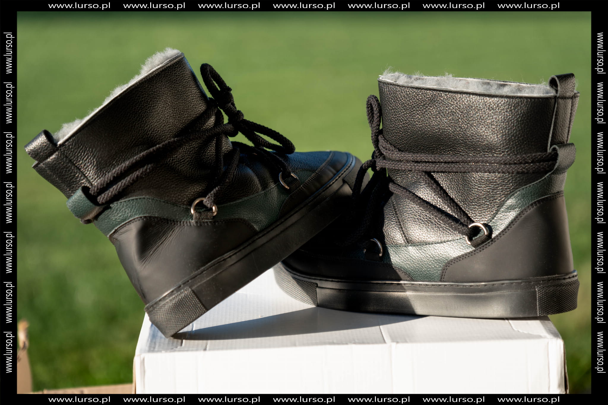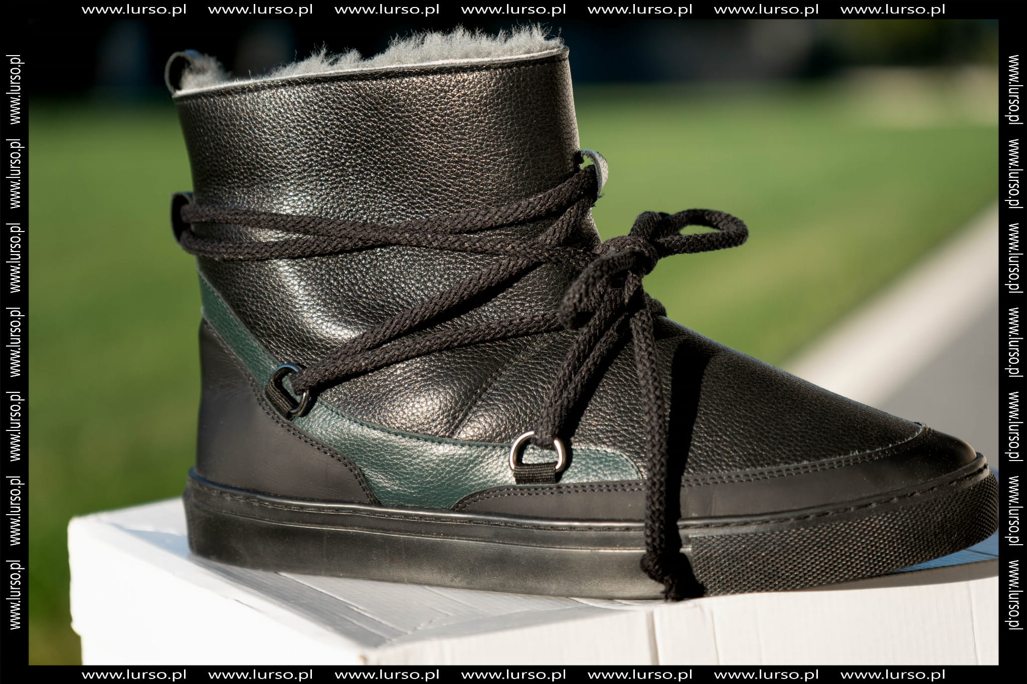 Czarno-zielone Śniegowce Męskie LURSO model LORIENT BLACK/GREEN skóra naturalna