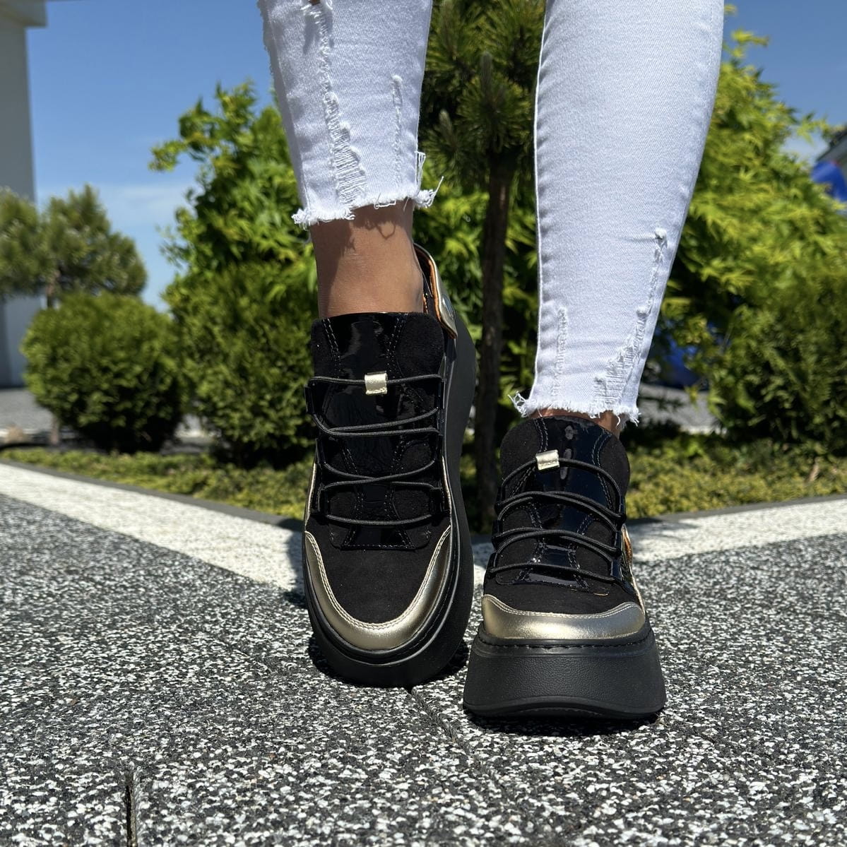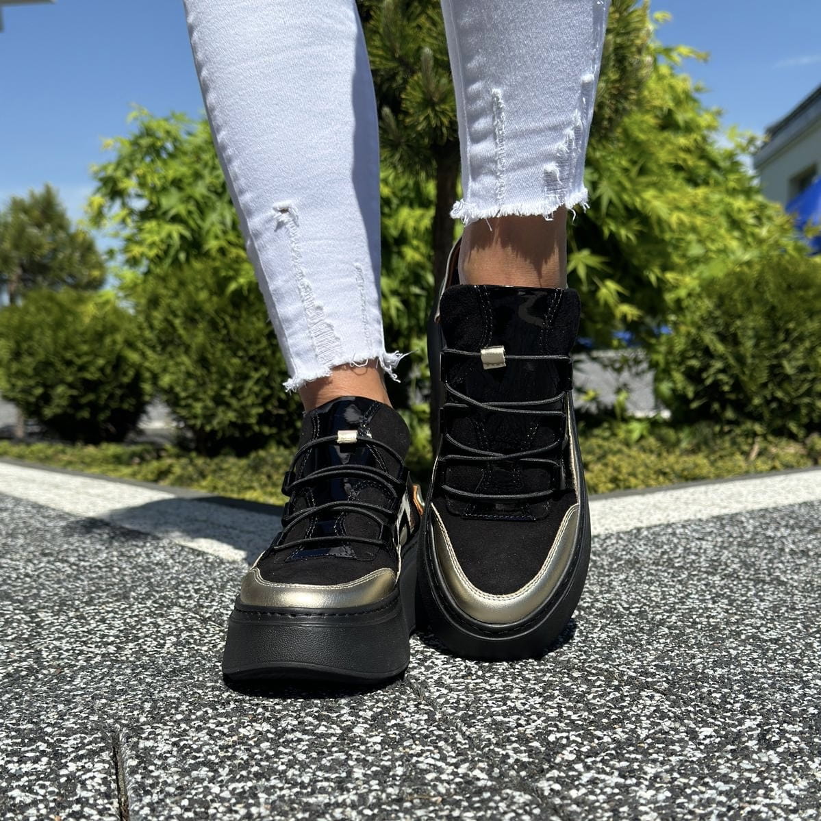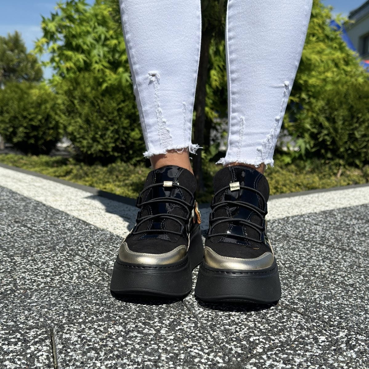Czarno-złote Sneakersy Damskie LURSO model BRESCIA BLACK/GOLD skóra naturalna