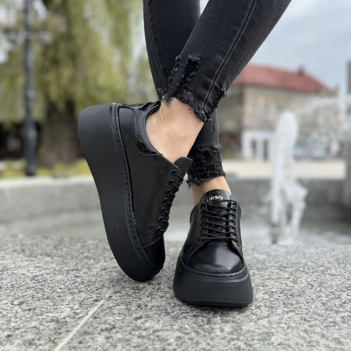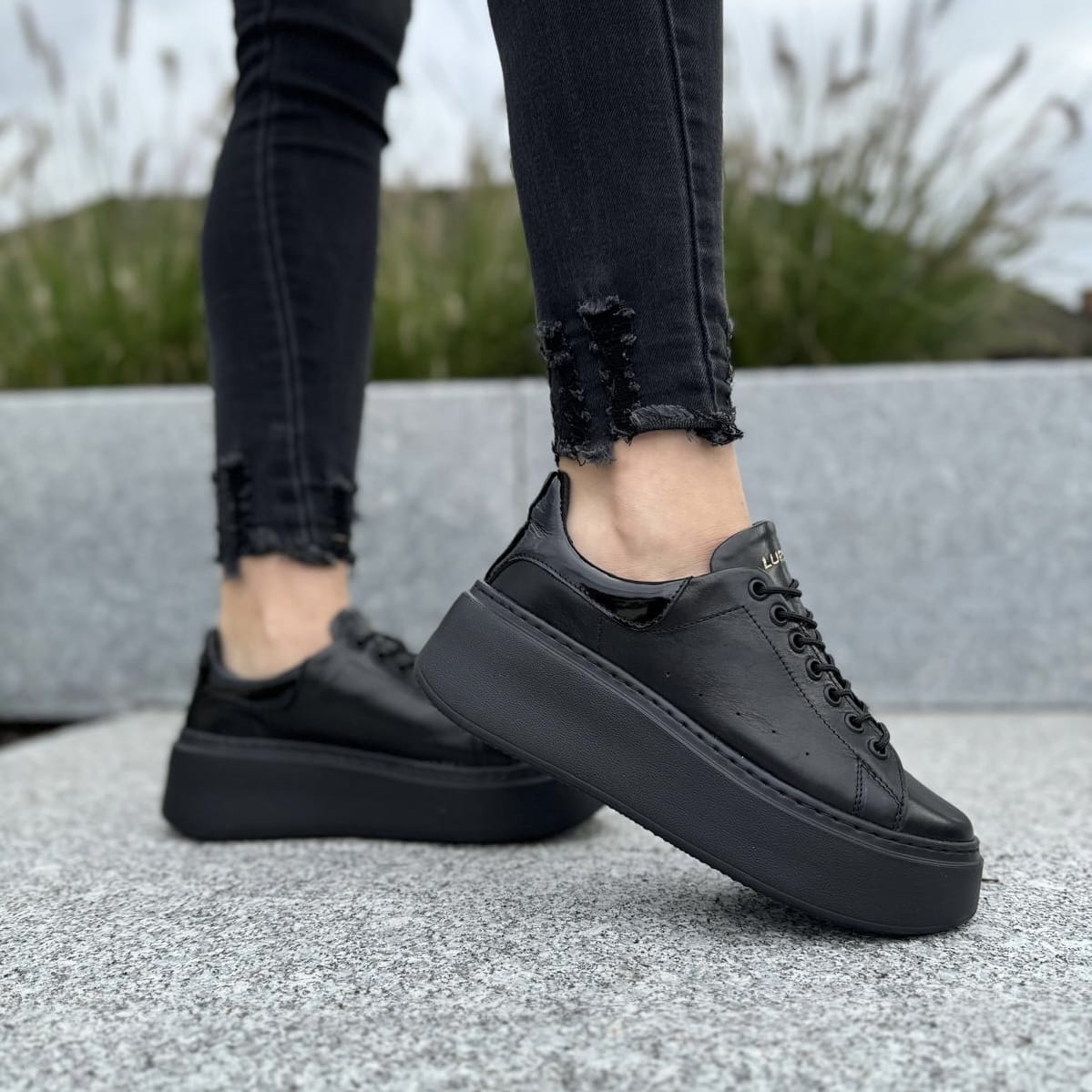 Czarne Sneakersy Damskie na sportowej podeszwie LIPARI BLACK skóra naturalna