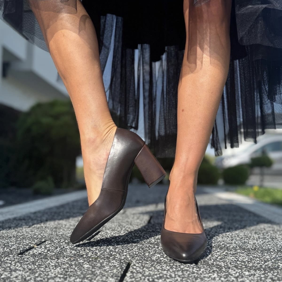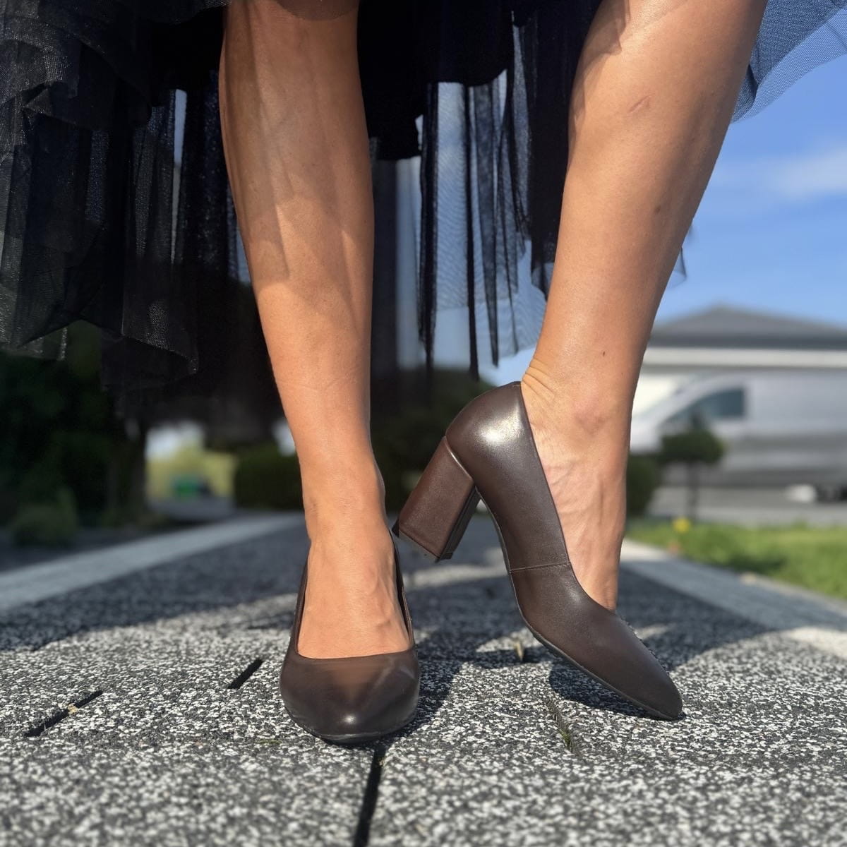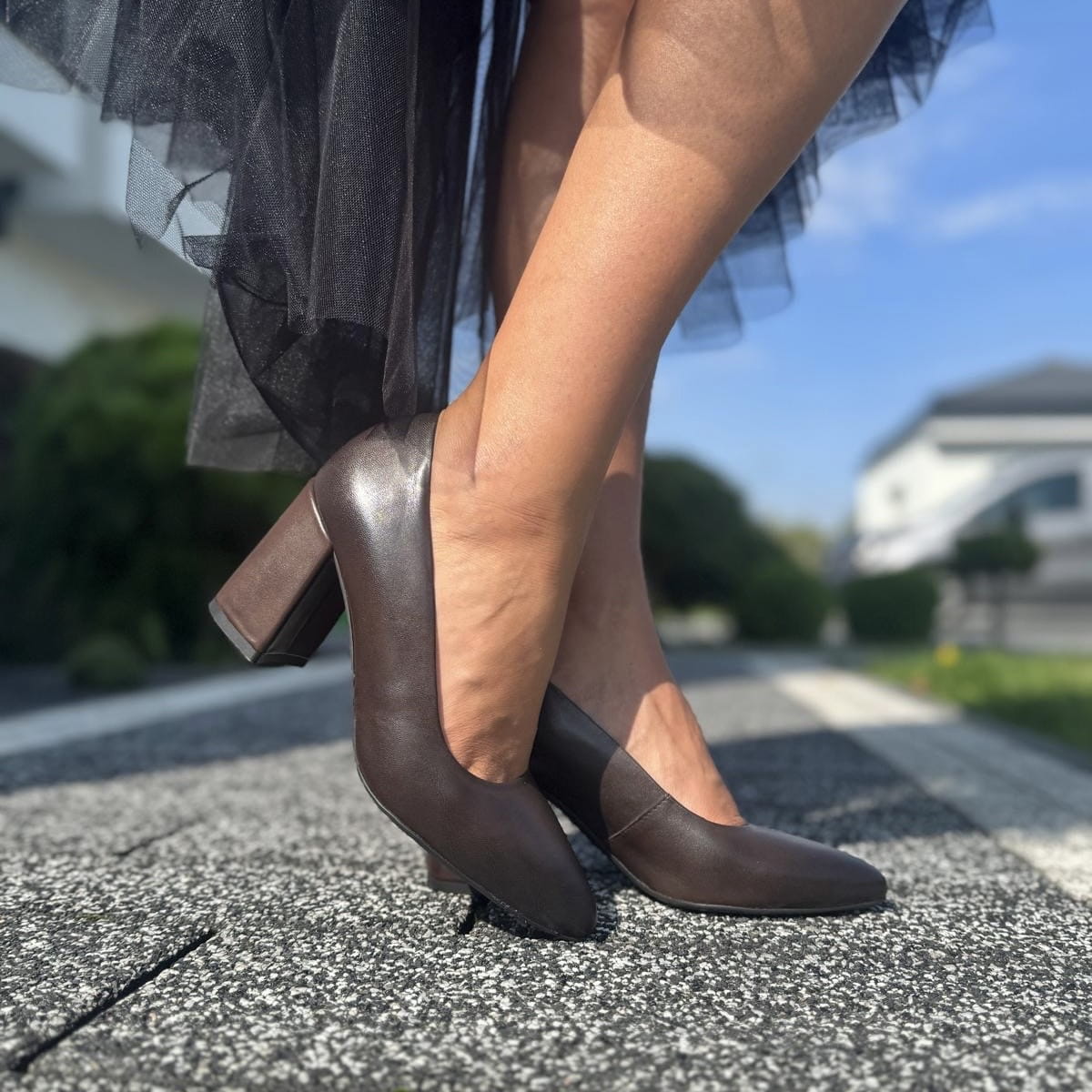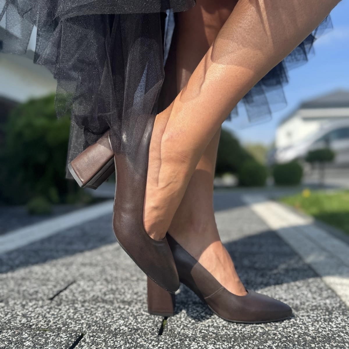 Czekoladowe Czółenka Damskie na słupku LURSO model TALANA CHOCOLATE BROWN skóra naturalna