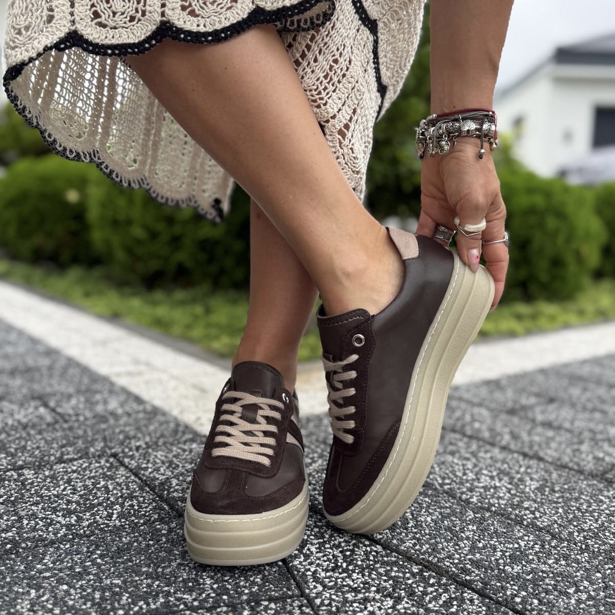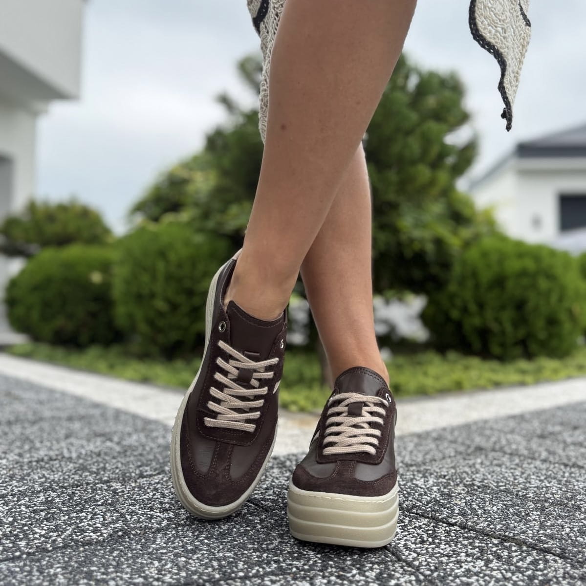 Czekoladowe Sneakersy Damskie LURSO na podwyższonej podeszwie NARNI CHOCOLATE BROWN skóra naturalna
