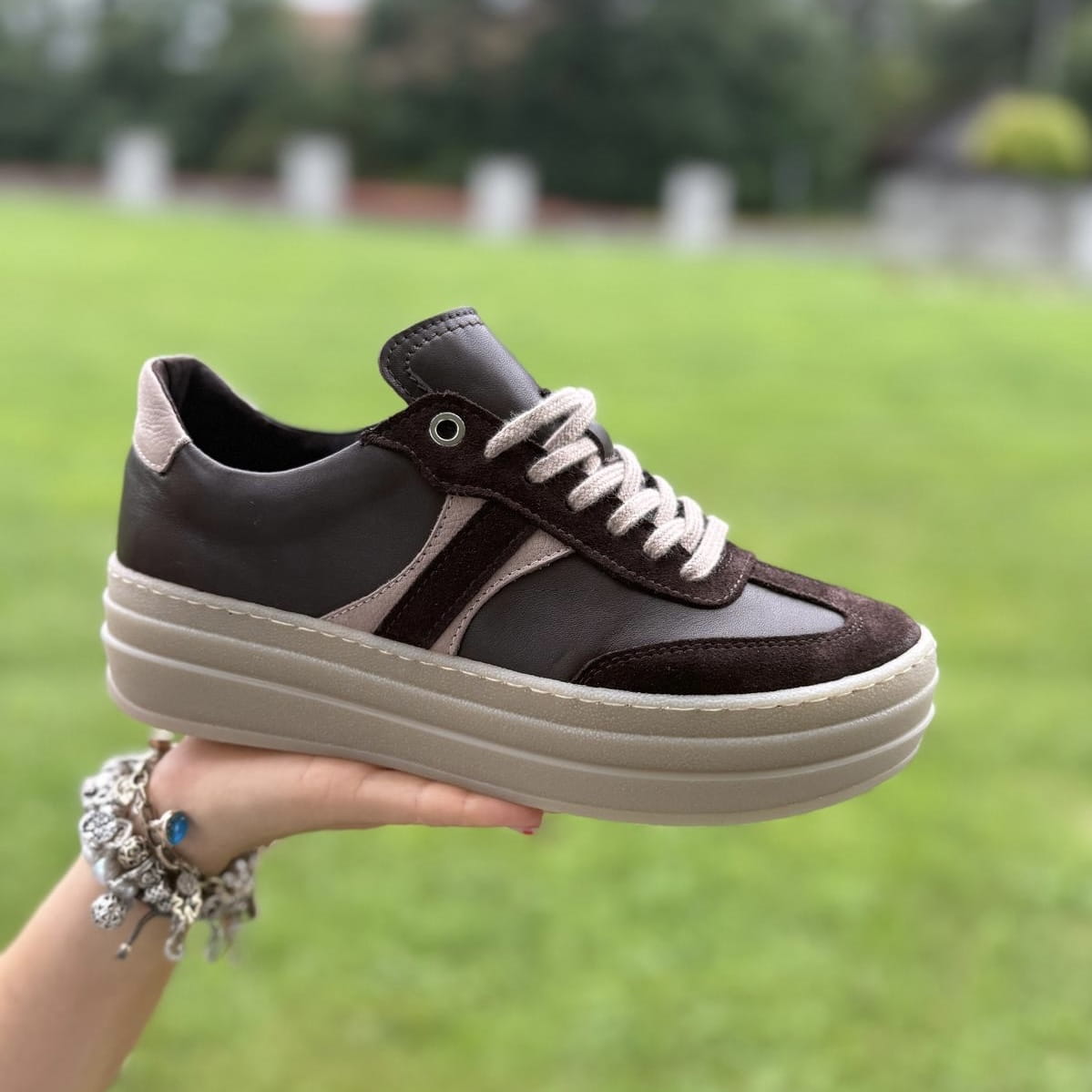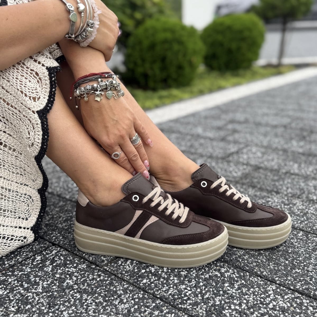 Bardzo wygodne sneakersy damskie model NARNI CHOCOLATE BROWN