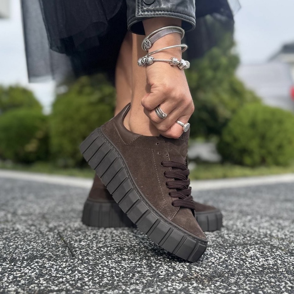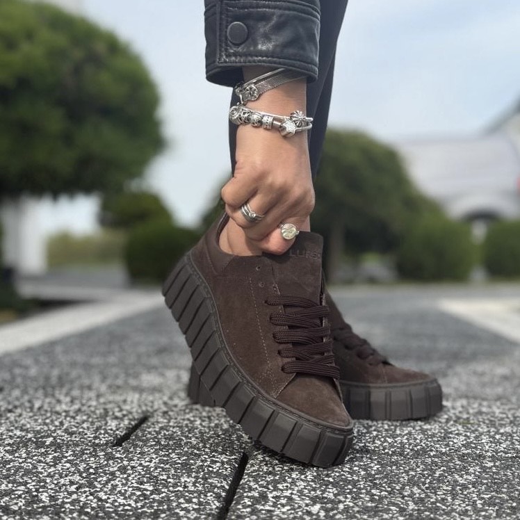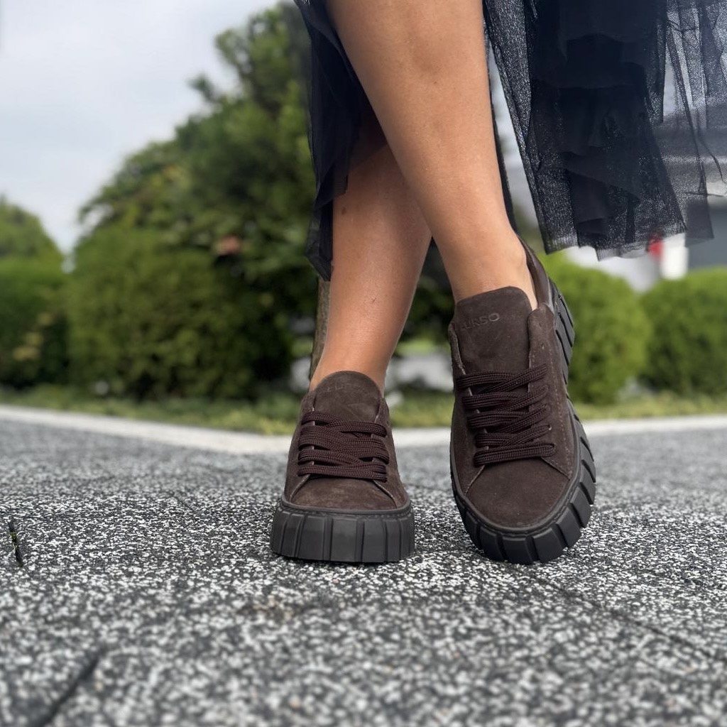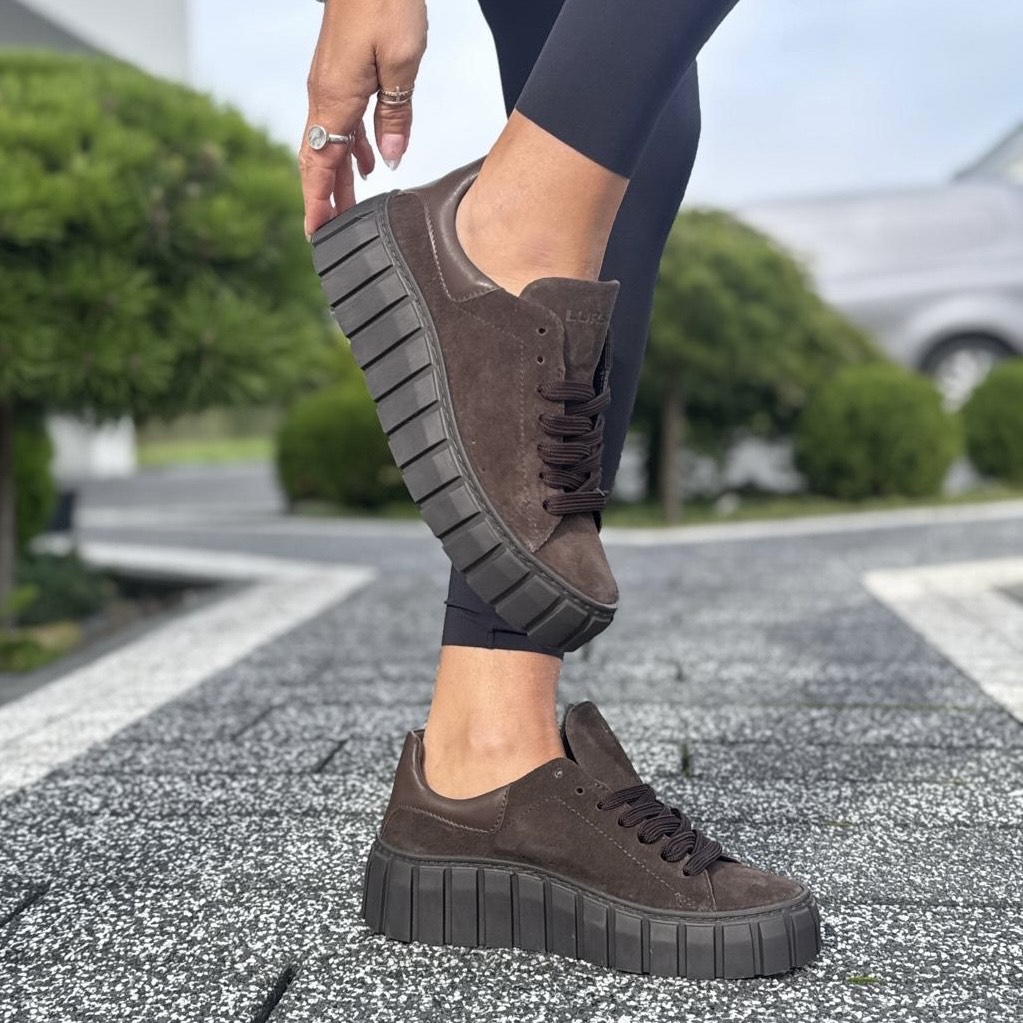 Czekoladowe Sneakersy Damskie na platformie ISCA CHOCOLATE skóra naturalna