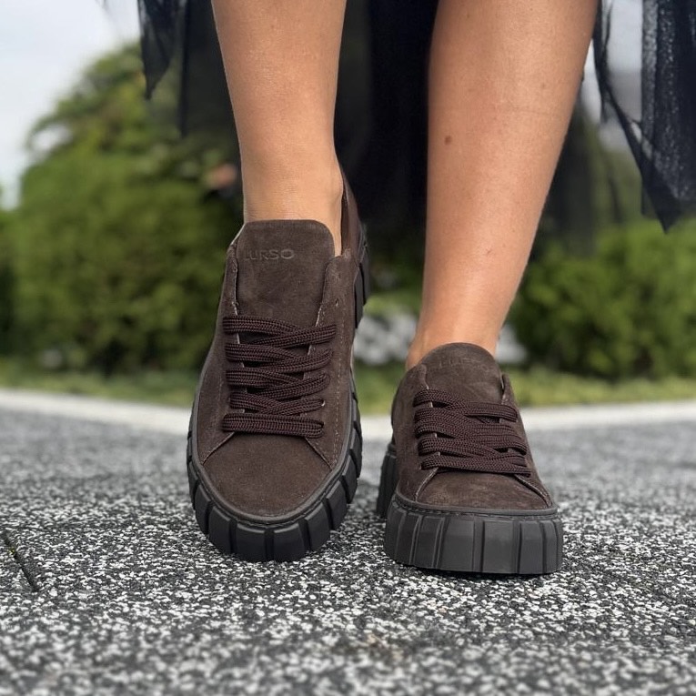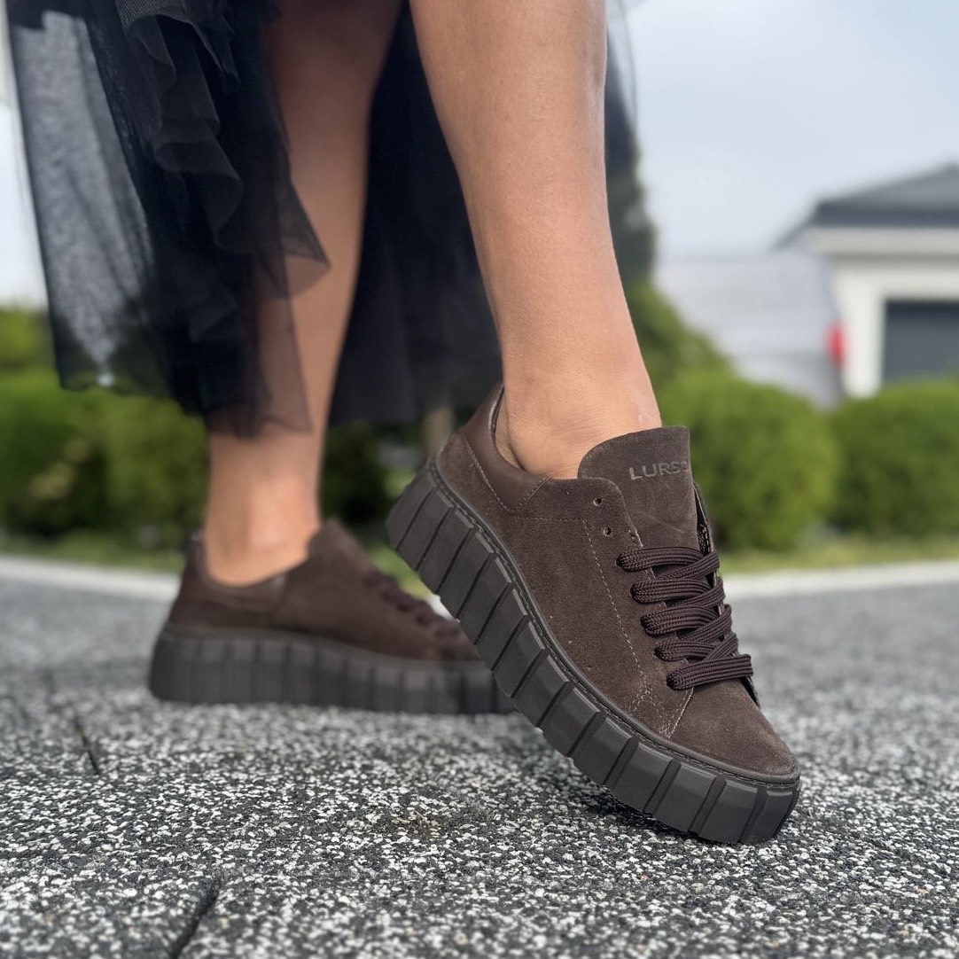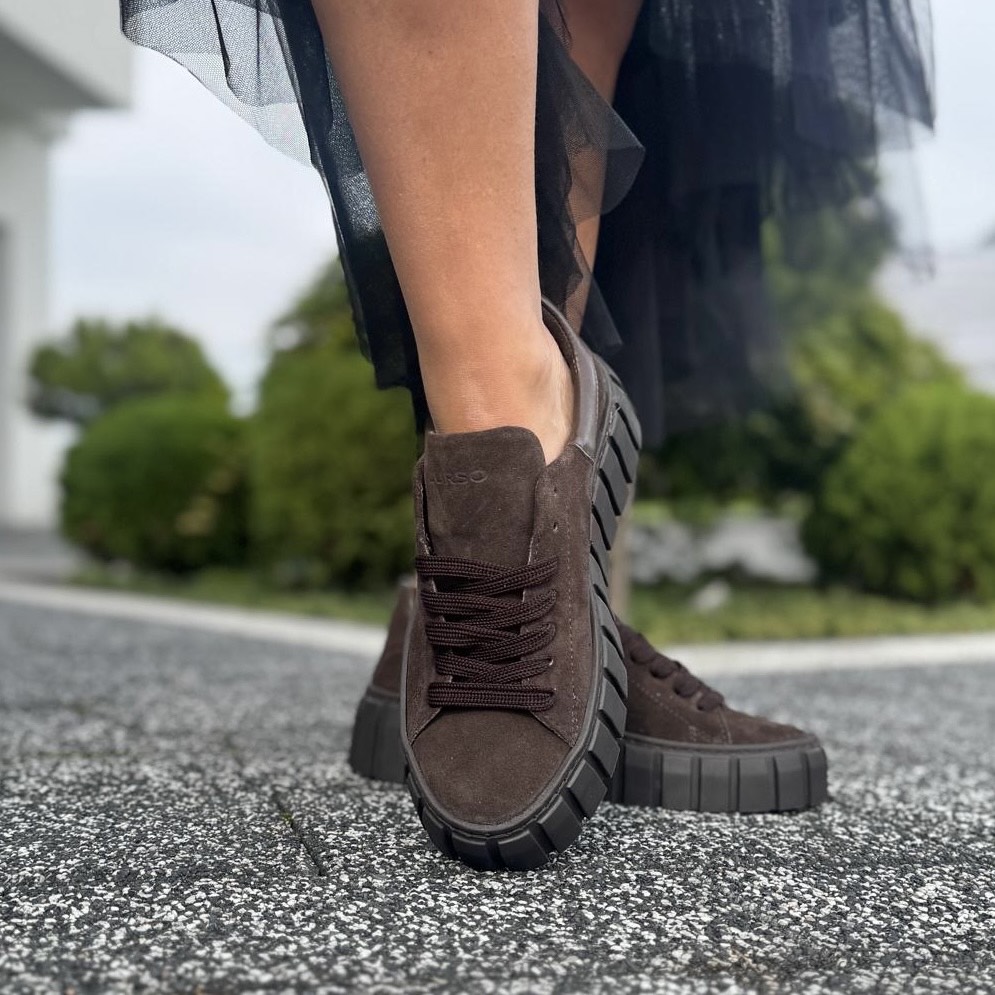 Czekoladowe Sneakersy Damskie na platformie ISCA CHOCOLATE skóra naturalna