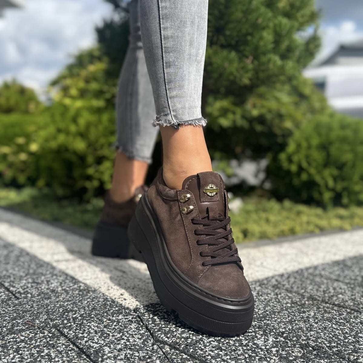 Bardzo wygodne sneakersy damskie LURSO model GELA CHOCOLATE BROWN