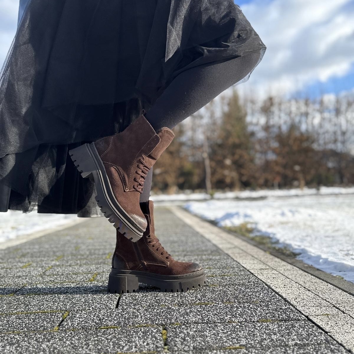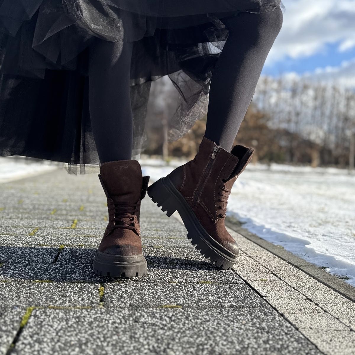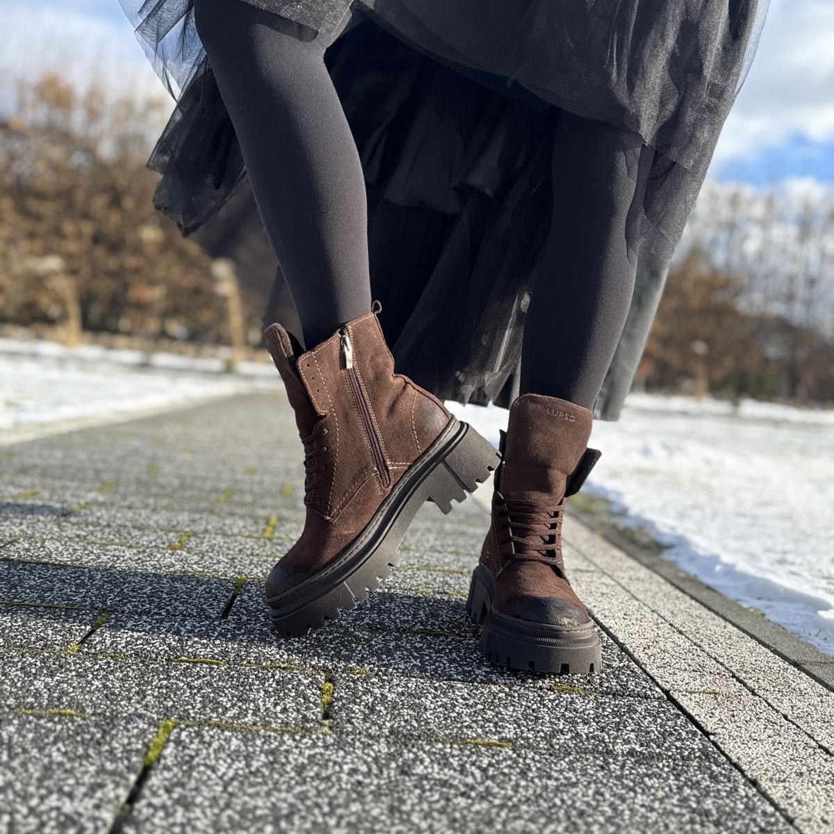 Czekoladowe Trapery Damskie LURSO model ARNO CHOCOLATE skóra naturalna