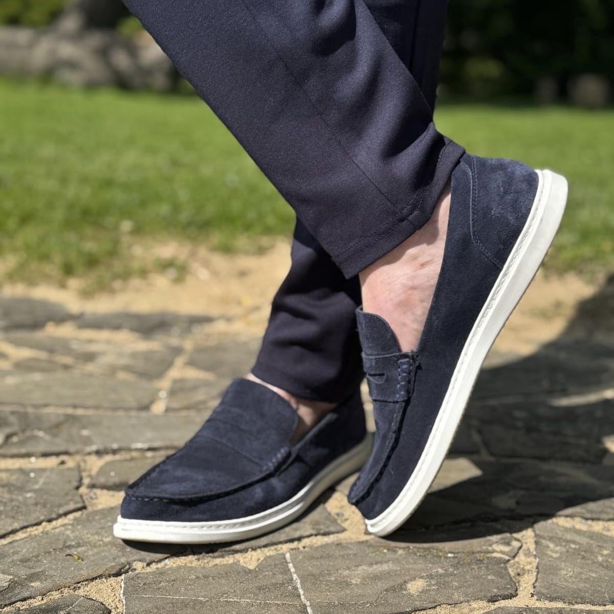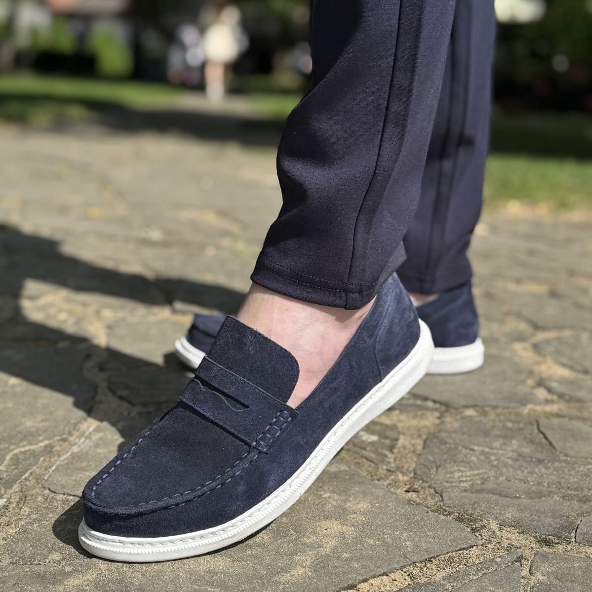 Granatowe Mokasyny Męskie LURSO model MILANO NAVY skóra naturalna