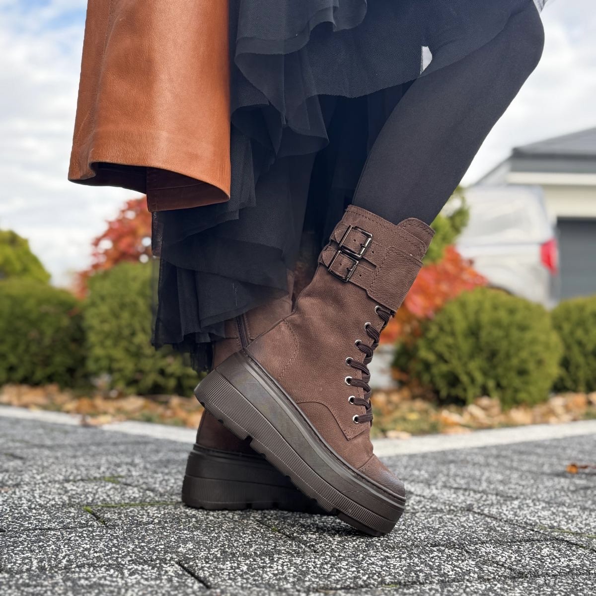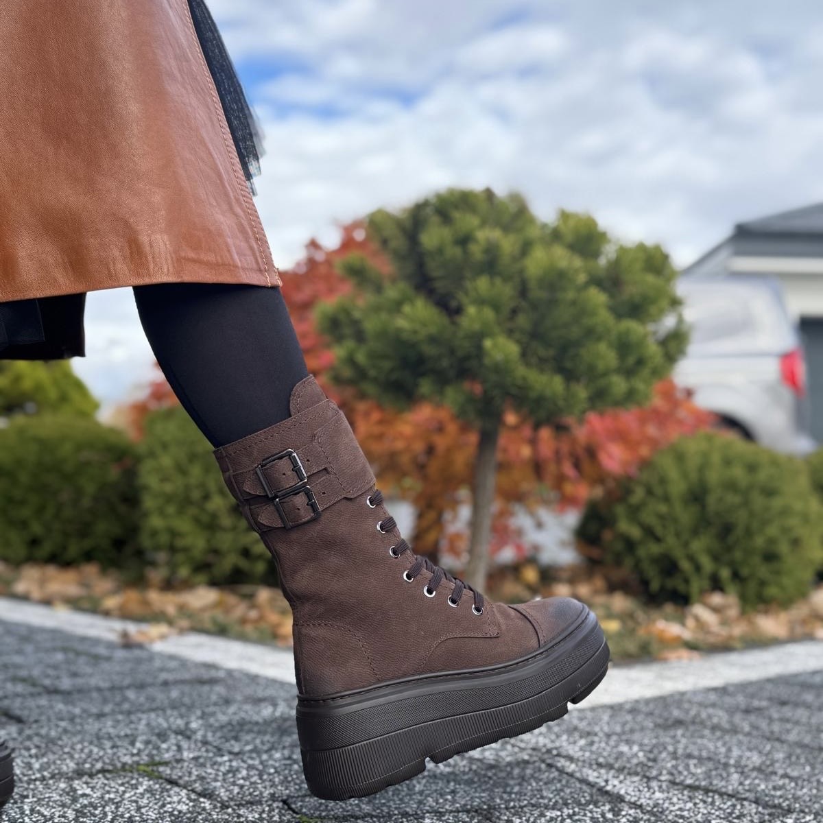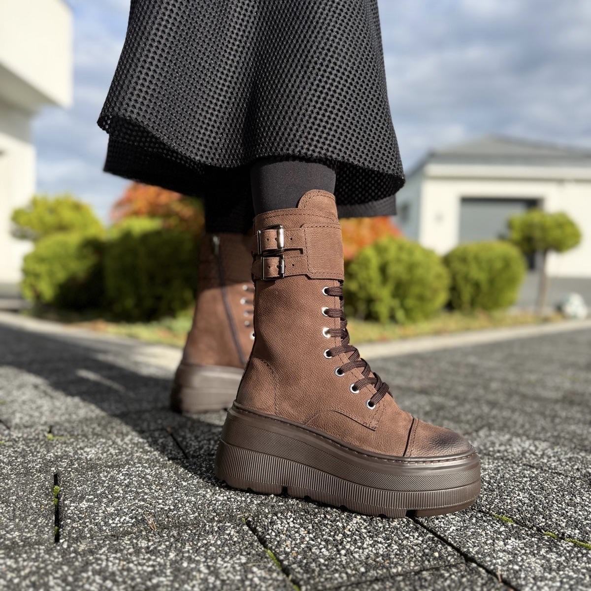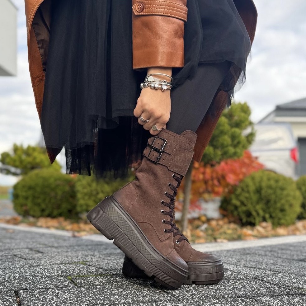 Jasnobrązowe Botki Damskie z klamerkami na wysokiej podeszwie LURSO model TIROL LIGHT CHOCOLATE skóra naturalna