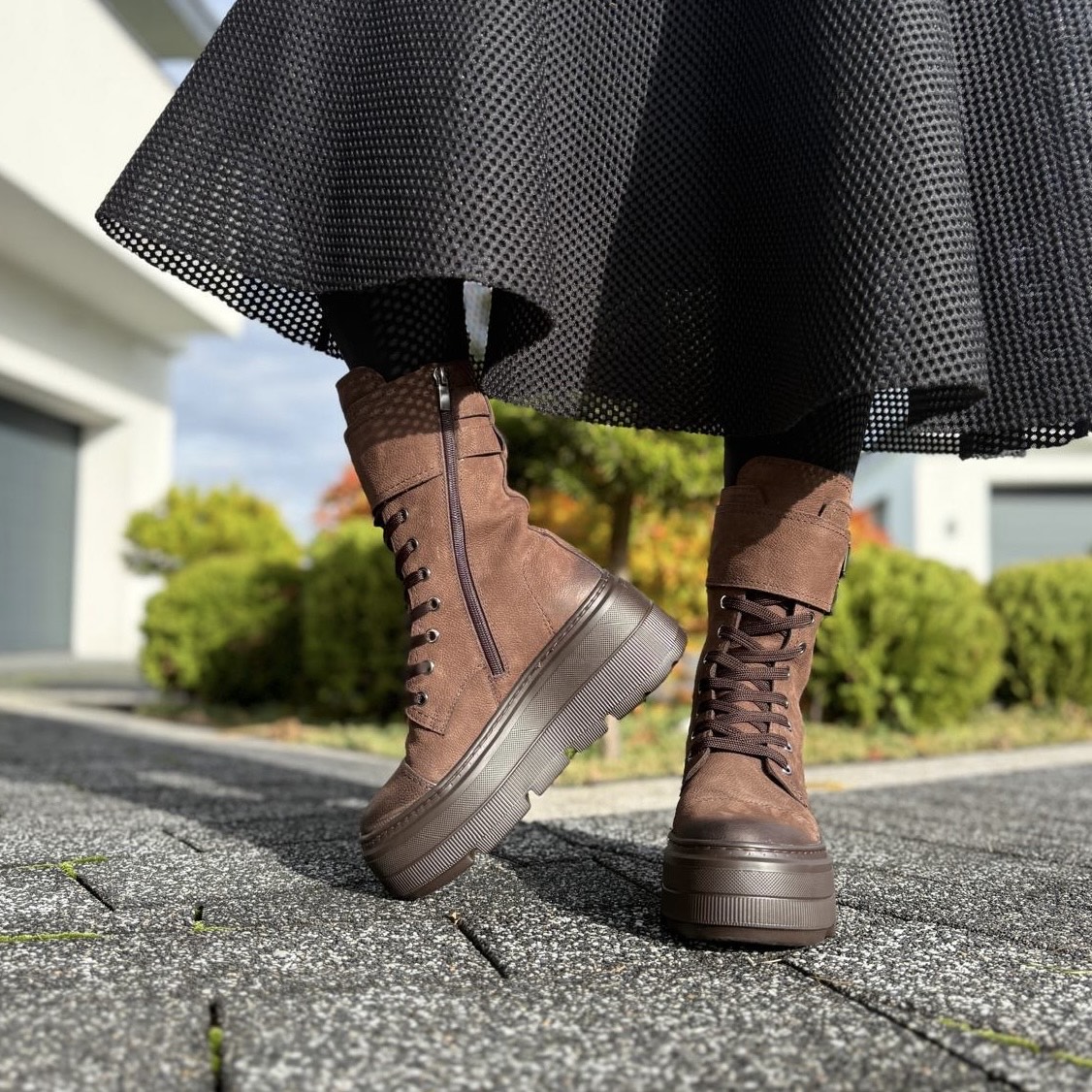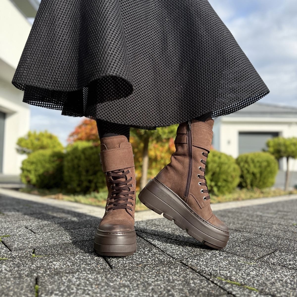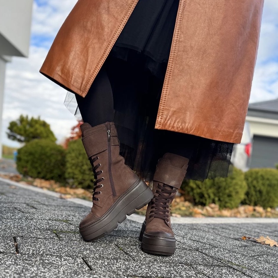 Model TIROL to piękne ocieplane botki damskie. Botki posiadają dwa rodzaje zapinania - zamek zapewniający łatwe zakładanie oraz sznurowadła ułatwiające dopasowanie do tęgości stopy. Ozdobą tego modelu jest patka ze skóry zapinana na ozdobne klamerki. Buty wykonano na bardzo modnej podeszwie, która mimo masywnego wyglądu jest bardzo wygodna i lekka. Model taki na pewno będzie pięknym uzupełnieniem jesiennego lub zimowego outfitu.