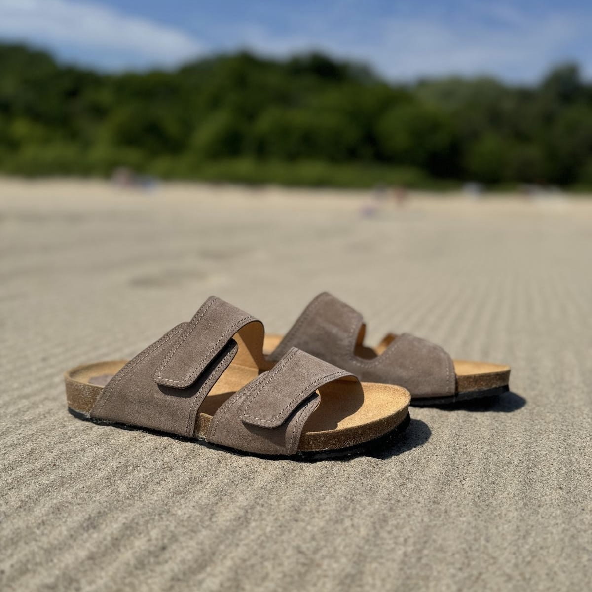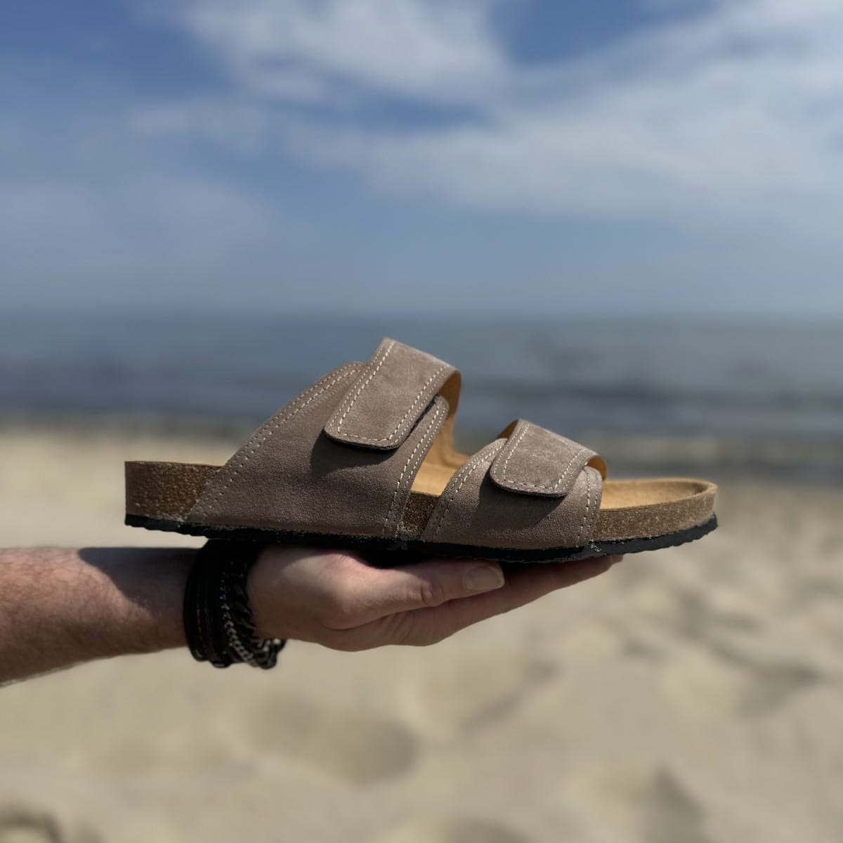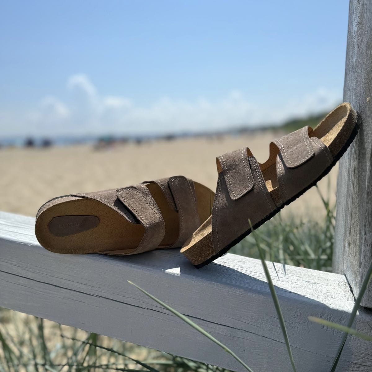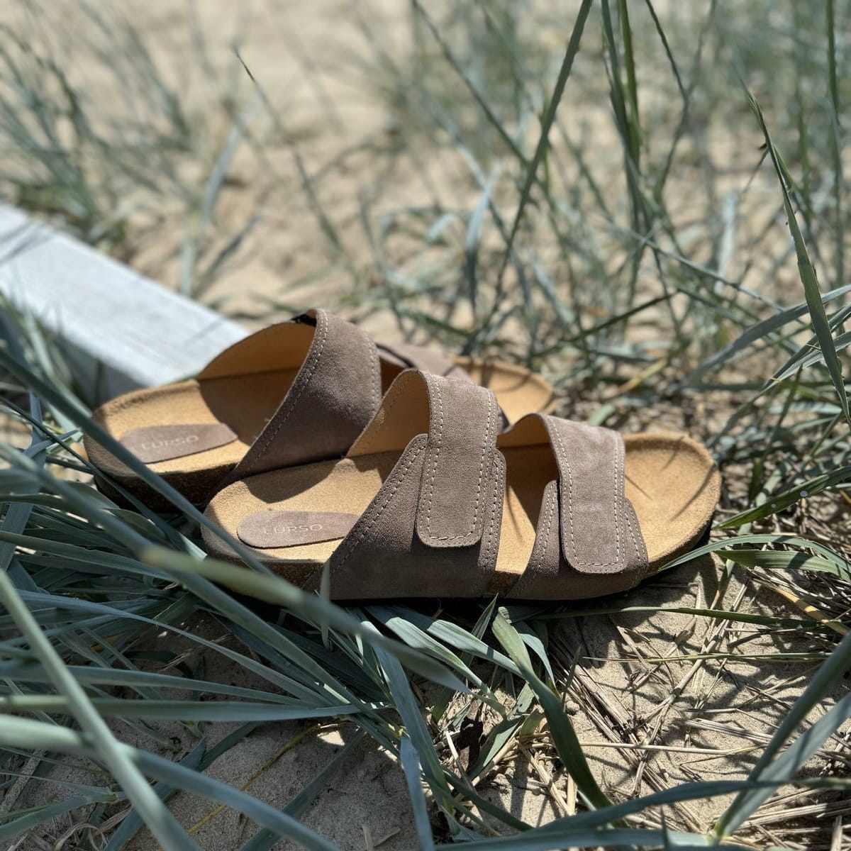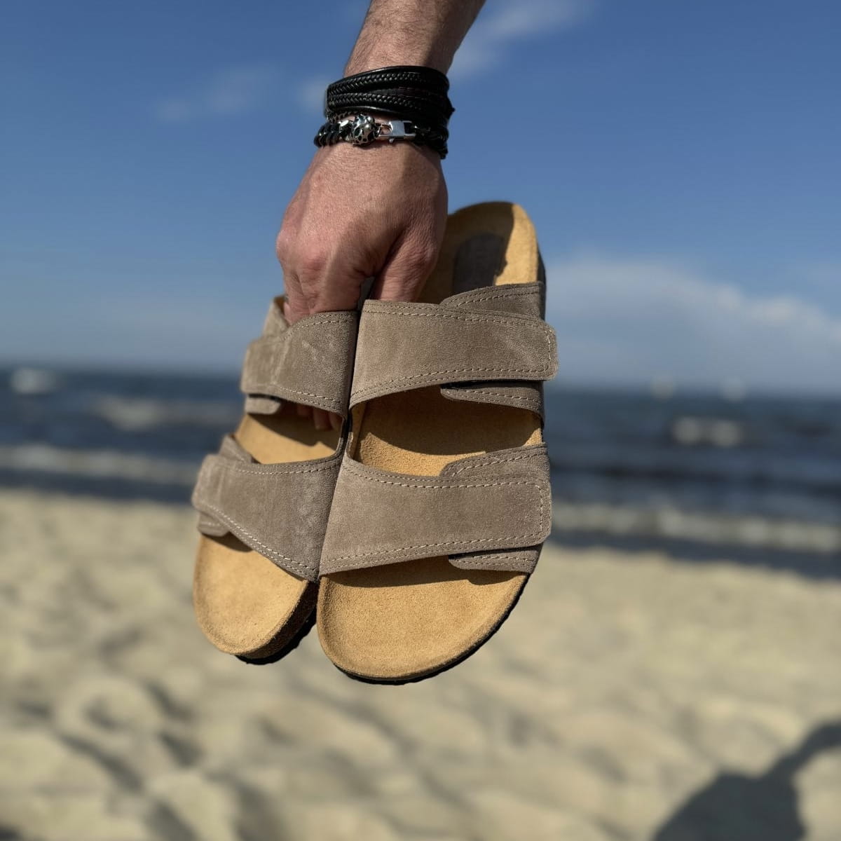 Jasnobrązowe Klapki Męskie LURSO model DIEPPE TAUPE skóra naturalna