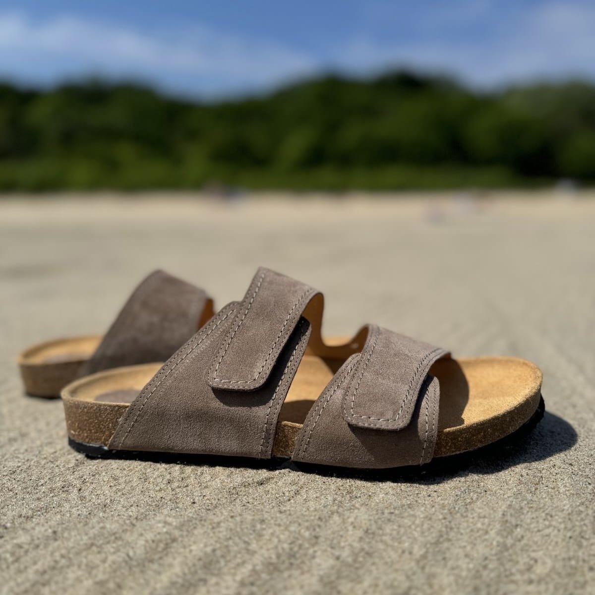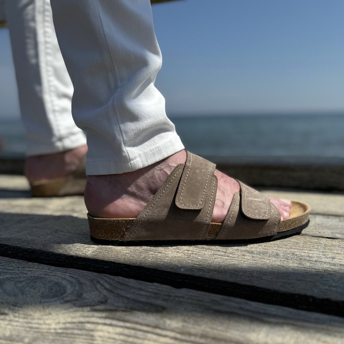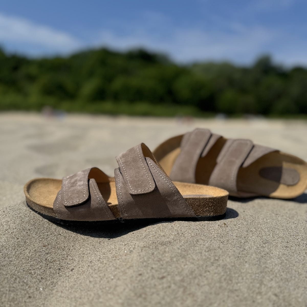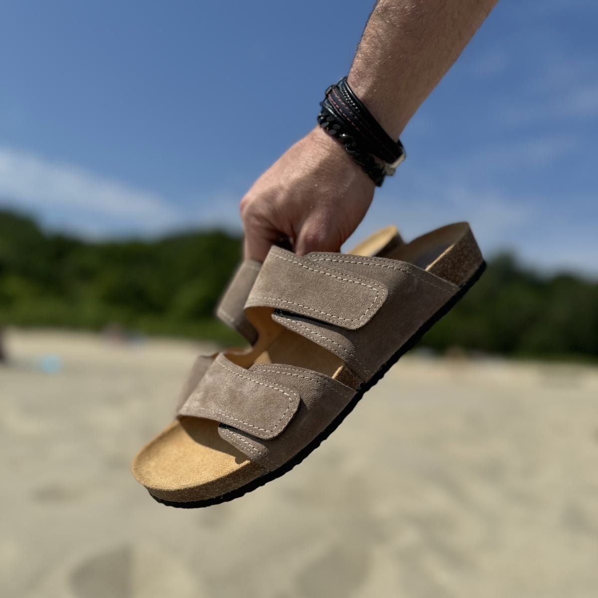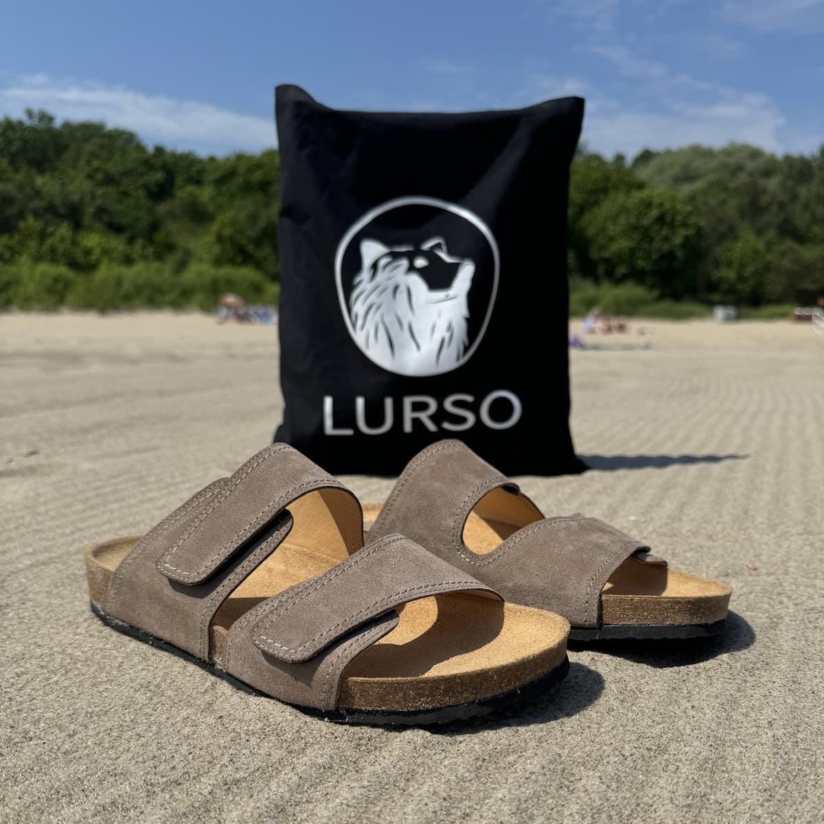 Jasnobrązowe Klapki Męskie LURSO model DIEPPE TAUPE skóra naturalna