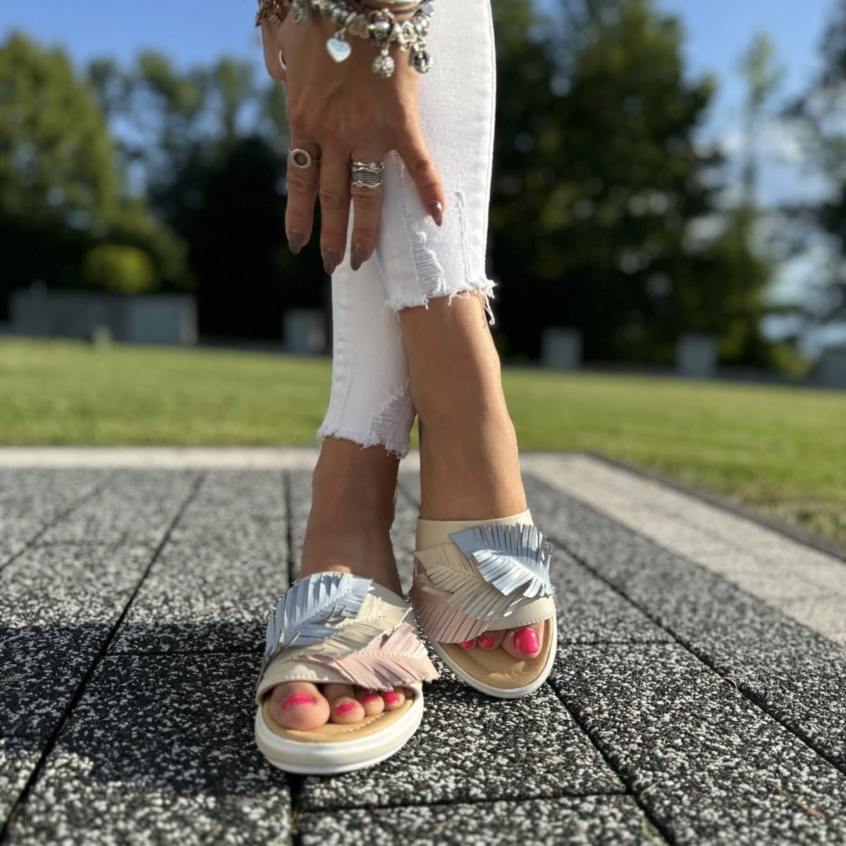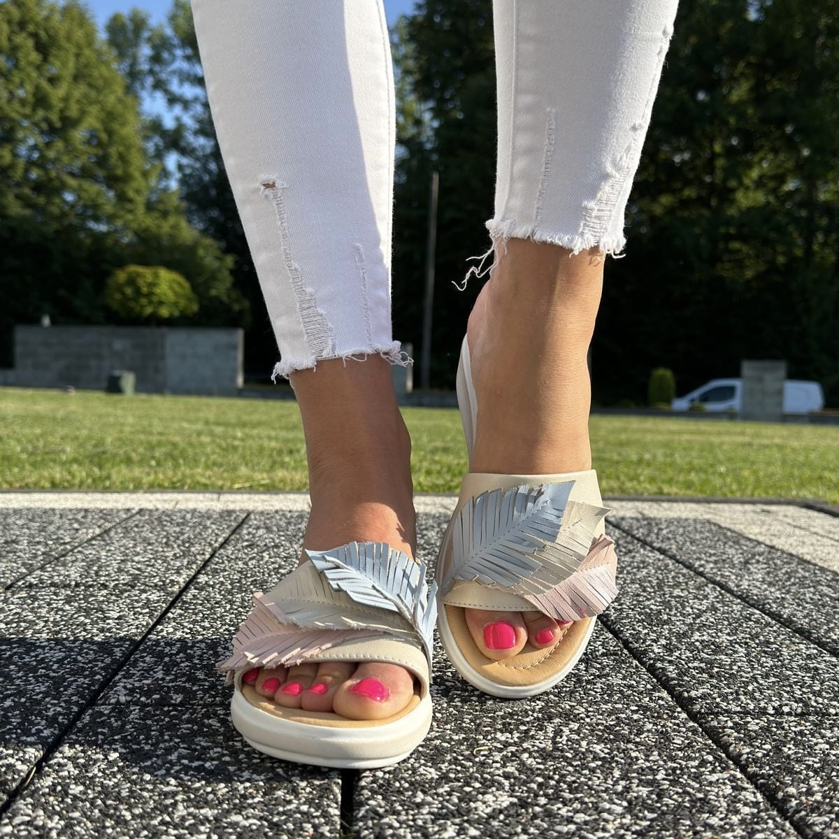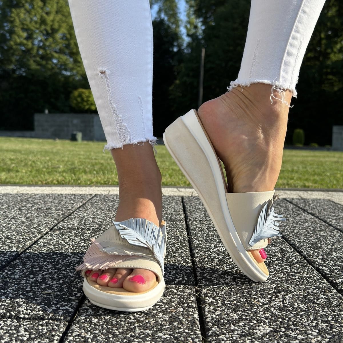 Przepiękne klapki z linii CAGLIARI model GROSSETO BEIGE