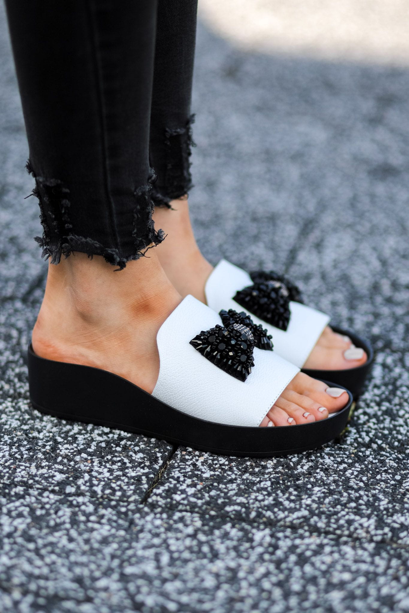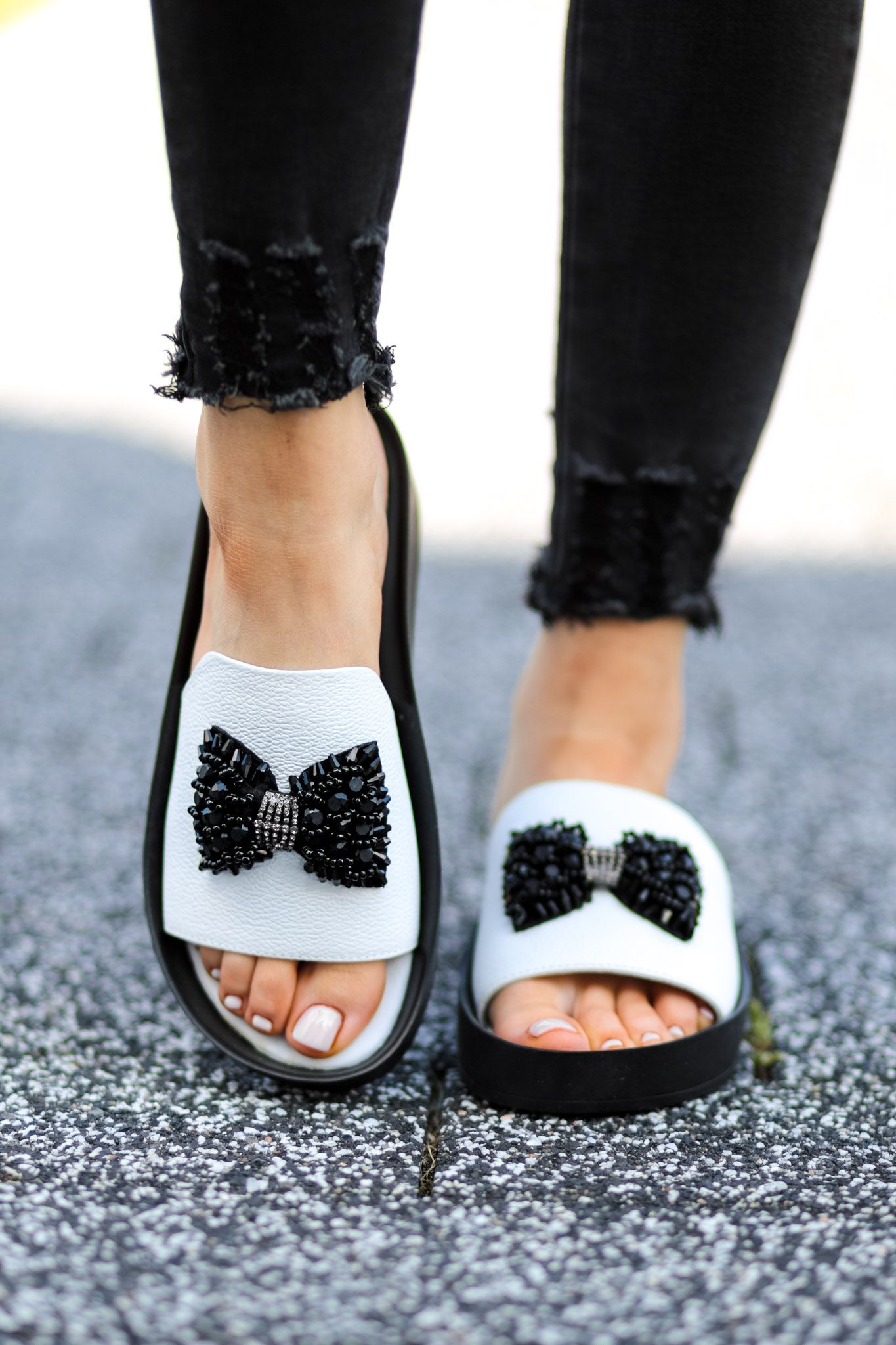 Klapki model HARPER to elegancja i kalasyka. Bardzo wygodna podeszwa zapewnia stabilność i komfort użytkowania. Cholewka o bardzo ciekawym kroju została ozdobiona elegancką i piękną kokardą wykończoną czarnymi cyrkoniami.