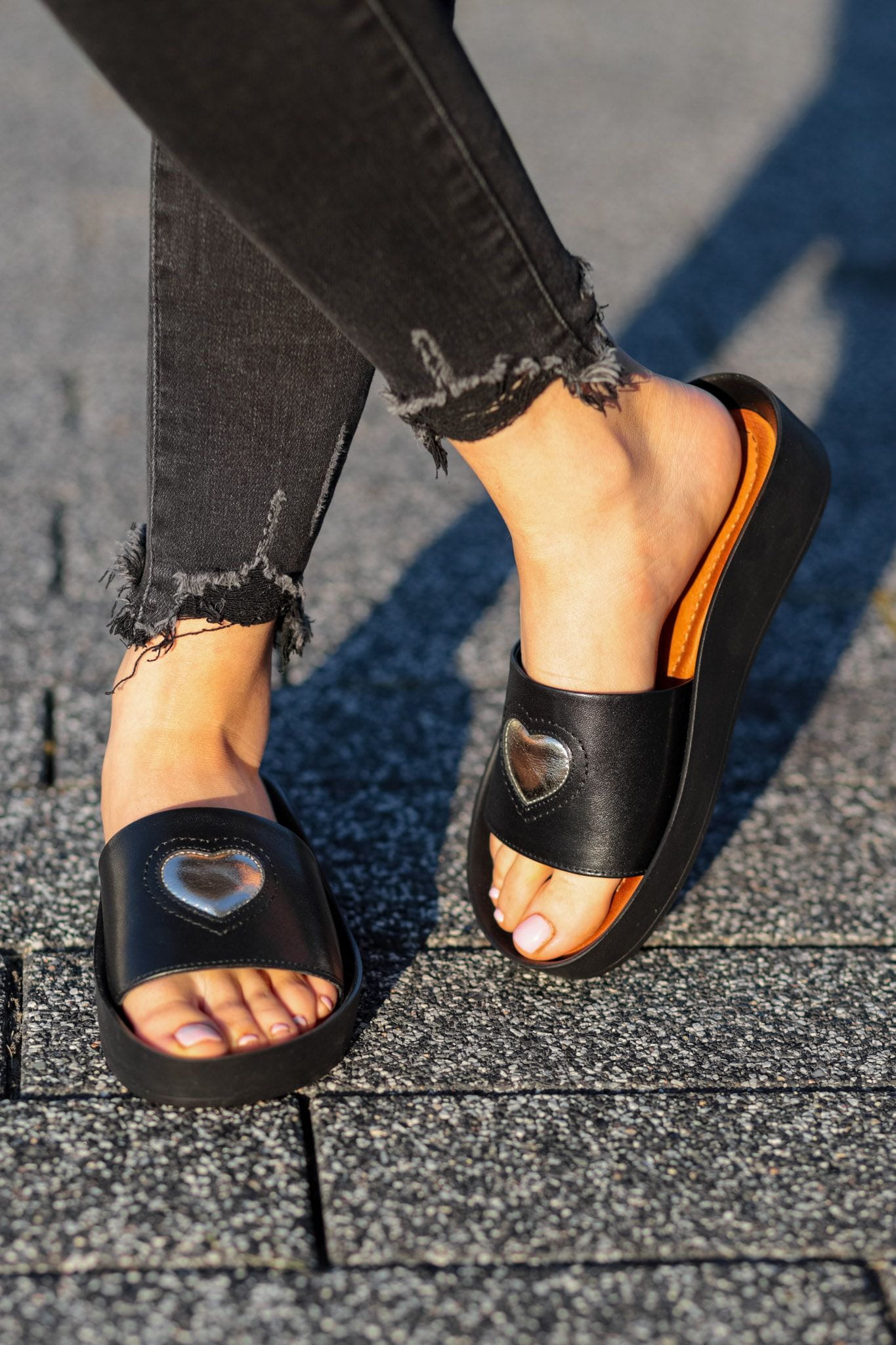 Klapki model MAYA to klasyczny wzór klapka. Bardzo wygodna podeszwa zapewnia stabilność i komfort użytkowania. Cholewka ozdobiona przepięknym sercem w wyróżniającym się kolorze skóry.