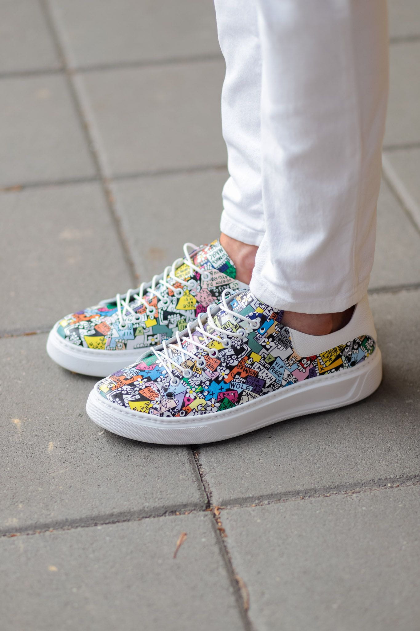 Kolorowe Sneakersy Męskie LURSO model TREMBLAY CARTOON COLOR skóra naturalna