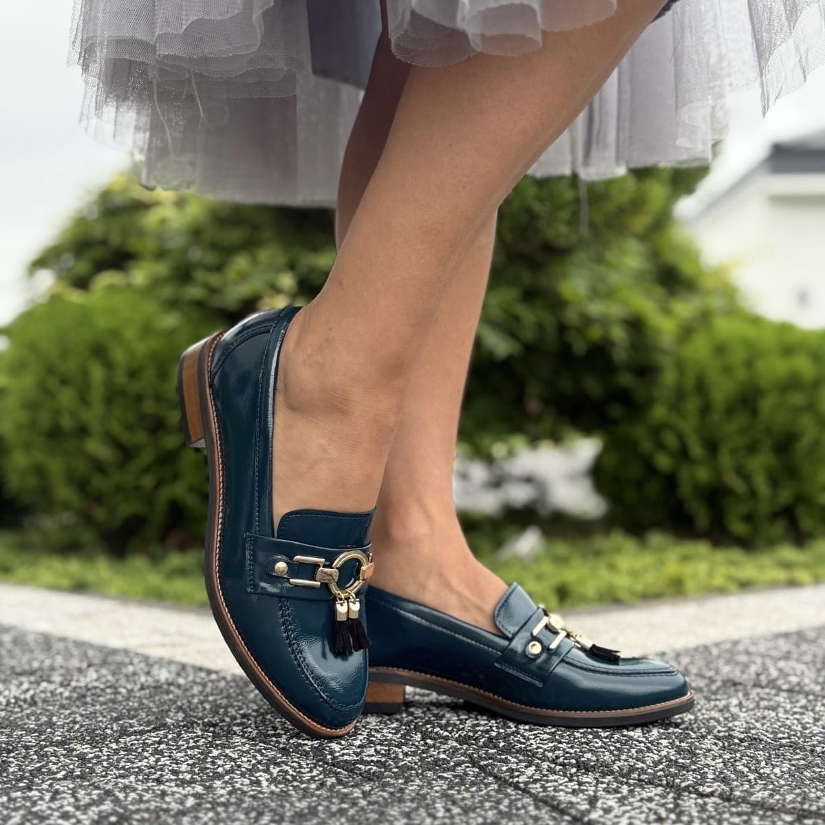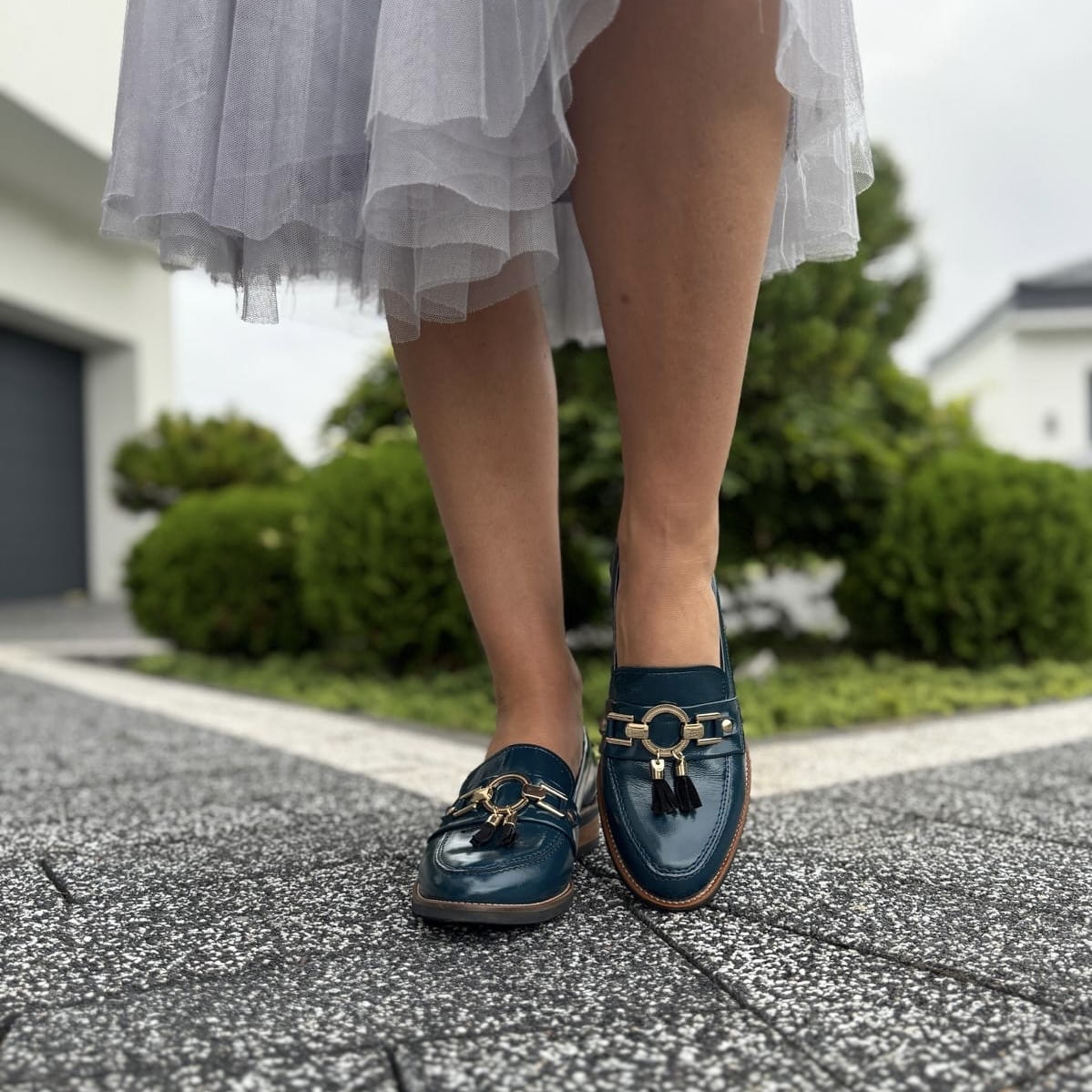 Mokasyny Damskie w kolorze morskiego turkusu LURSO model TERRE SEA TURQUOISE skóra naturalna