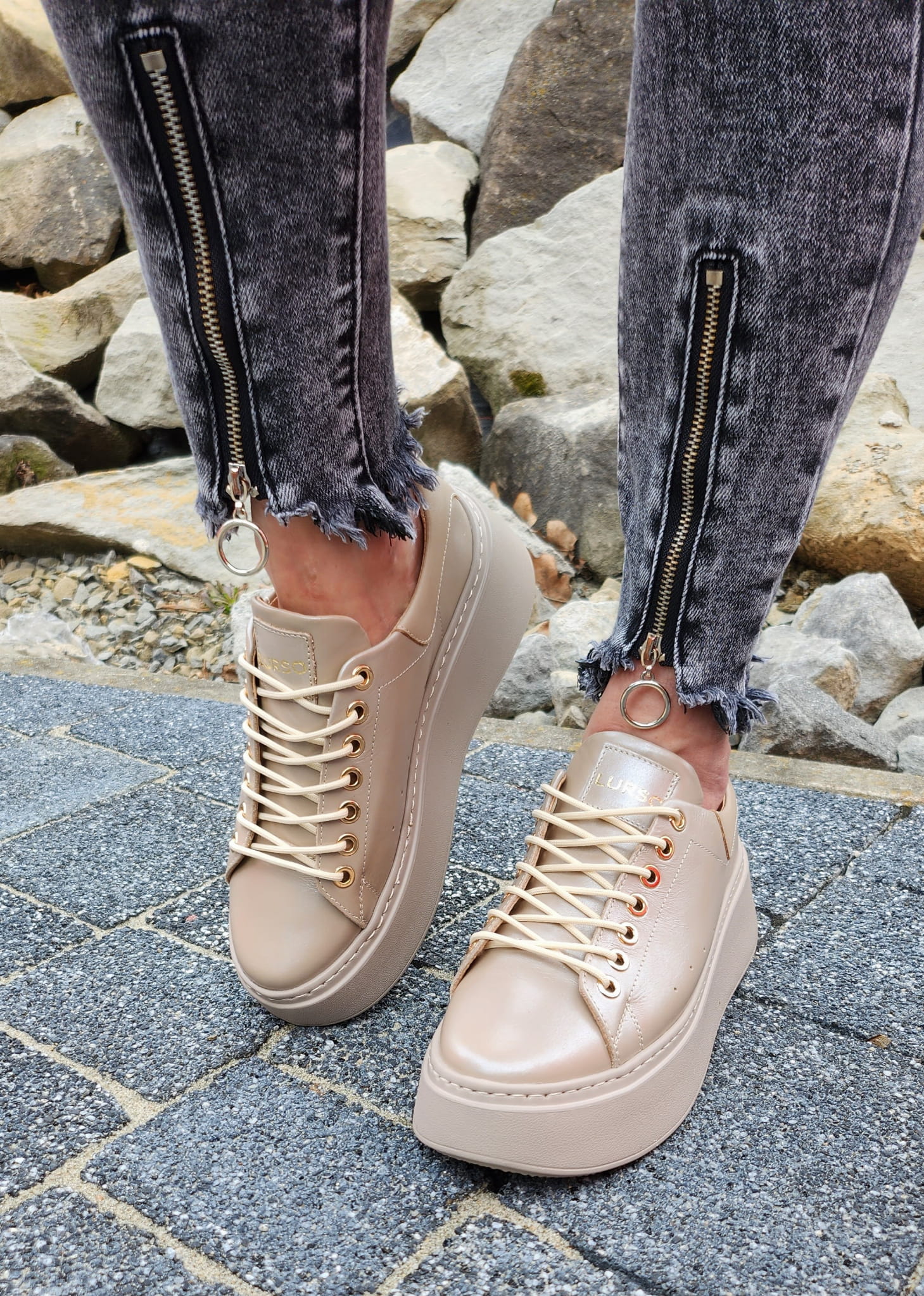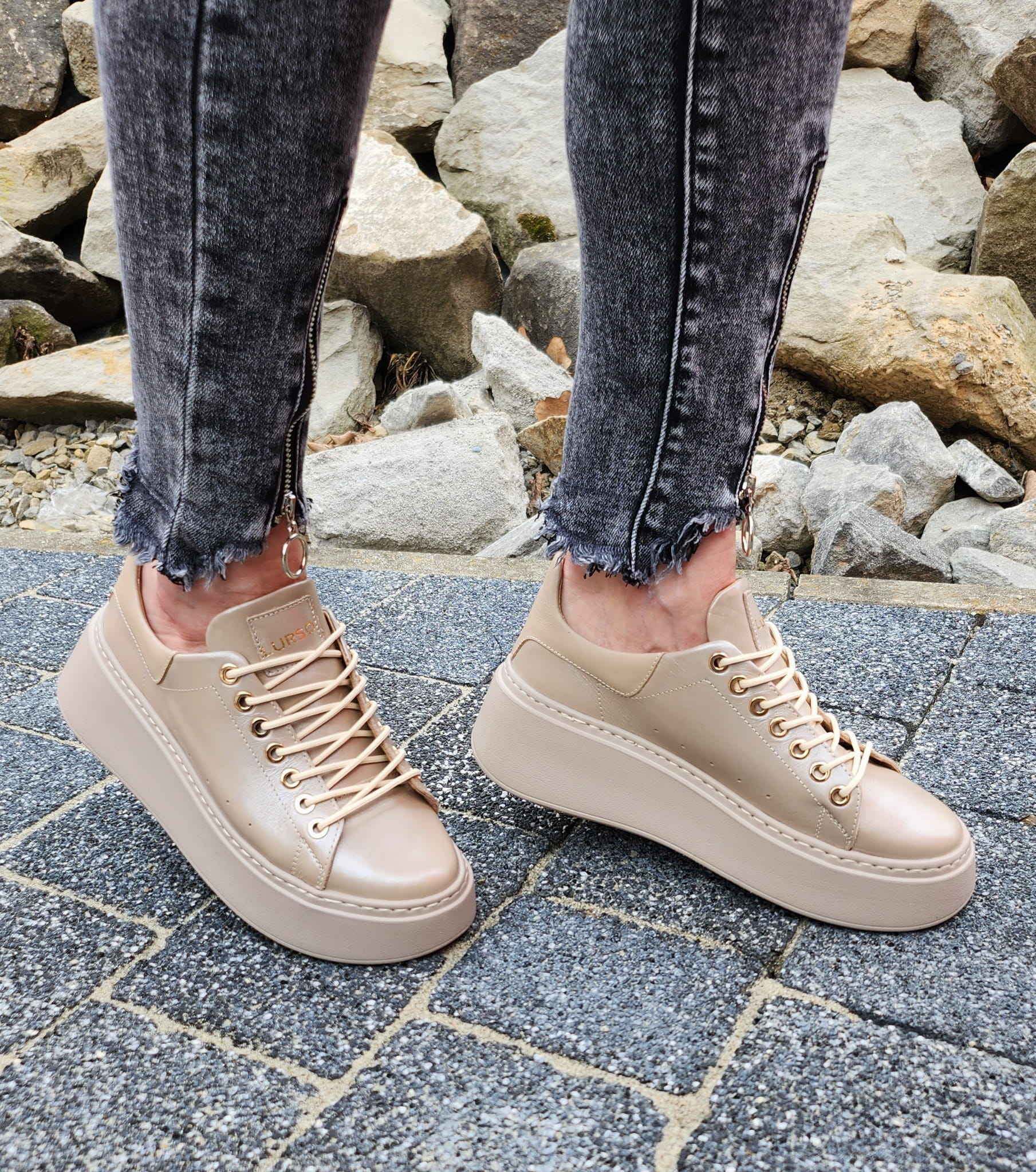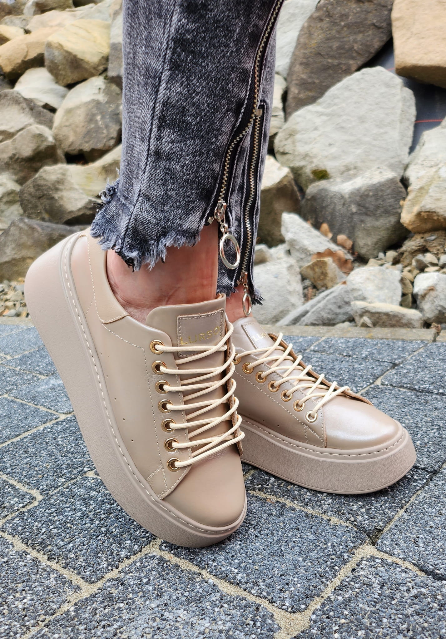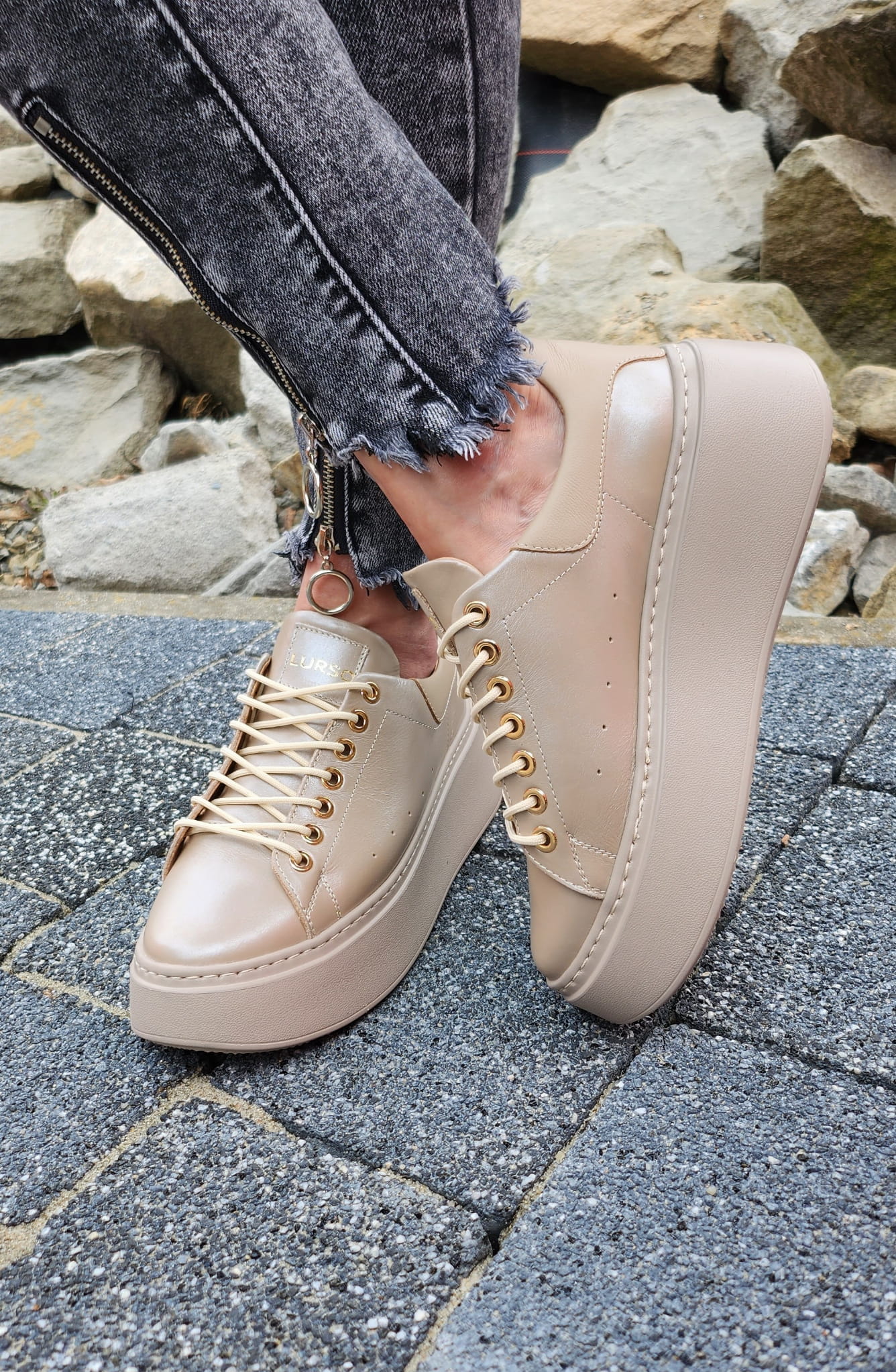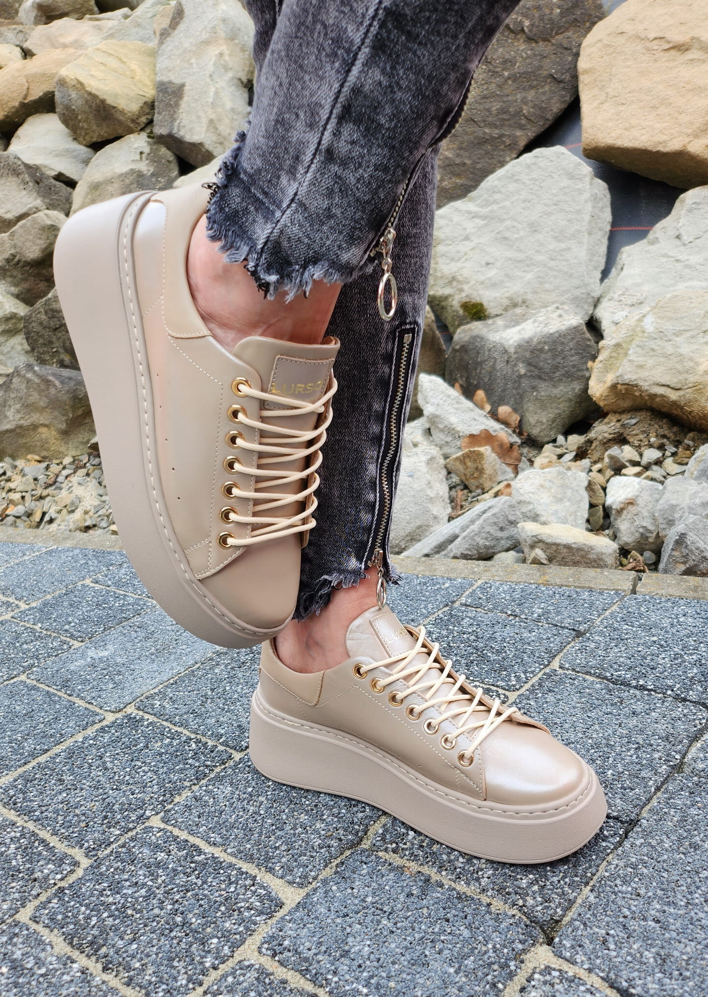 Perłowo-beżowe Trampki LURSO z linii AUDREY model ARLETTE SHINE BEIGE skora naturalna