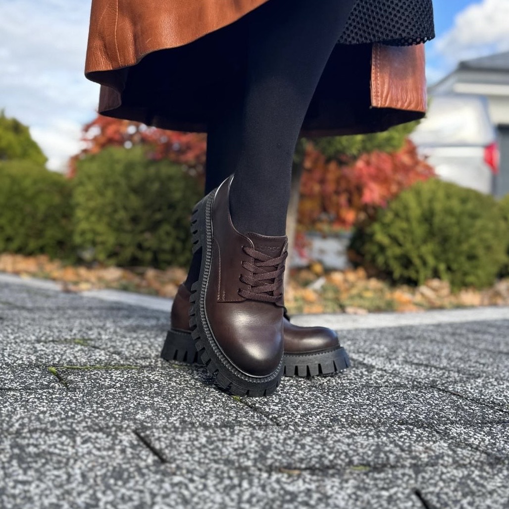 Półbuty Damskie w kolorze ciemnego brązu LURSO model NUORO DARK BROWN skóra naturalna