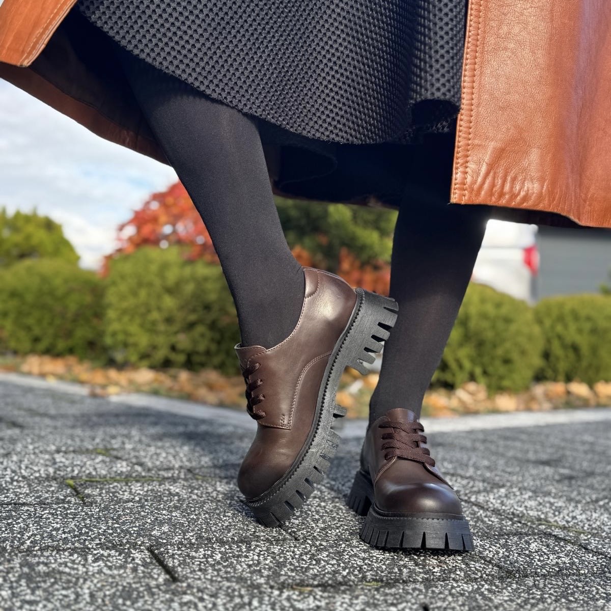 Nuoro to mega zgrabny model półbutów. Buty znajdą zastosowanie do stylizacji eleganckiej jak również casualowej. Dołożyliśmy wszelkich starań aby buty były wygodne, zastosowane została pianka w tylnej części aby buty delikatnie obejmowały pięty. Podwyższona traperowa podeszwa dodaje mu wyjątkowego wyglądu. Jesienna pora to idealny czas do noszenia takich właśnie butów.