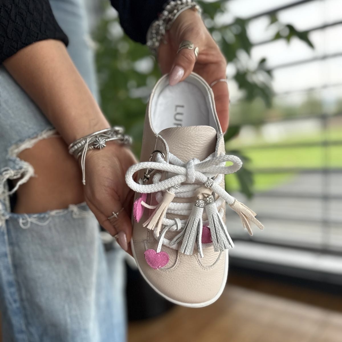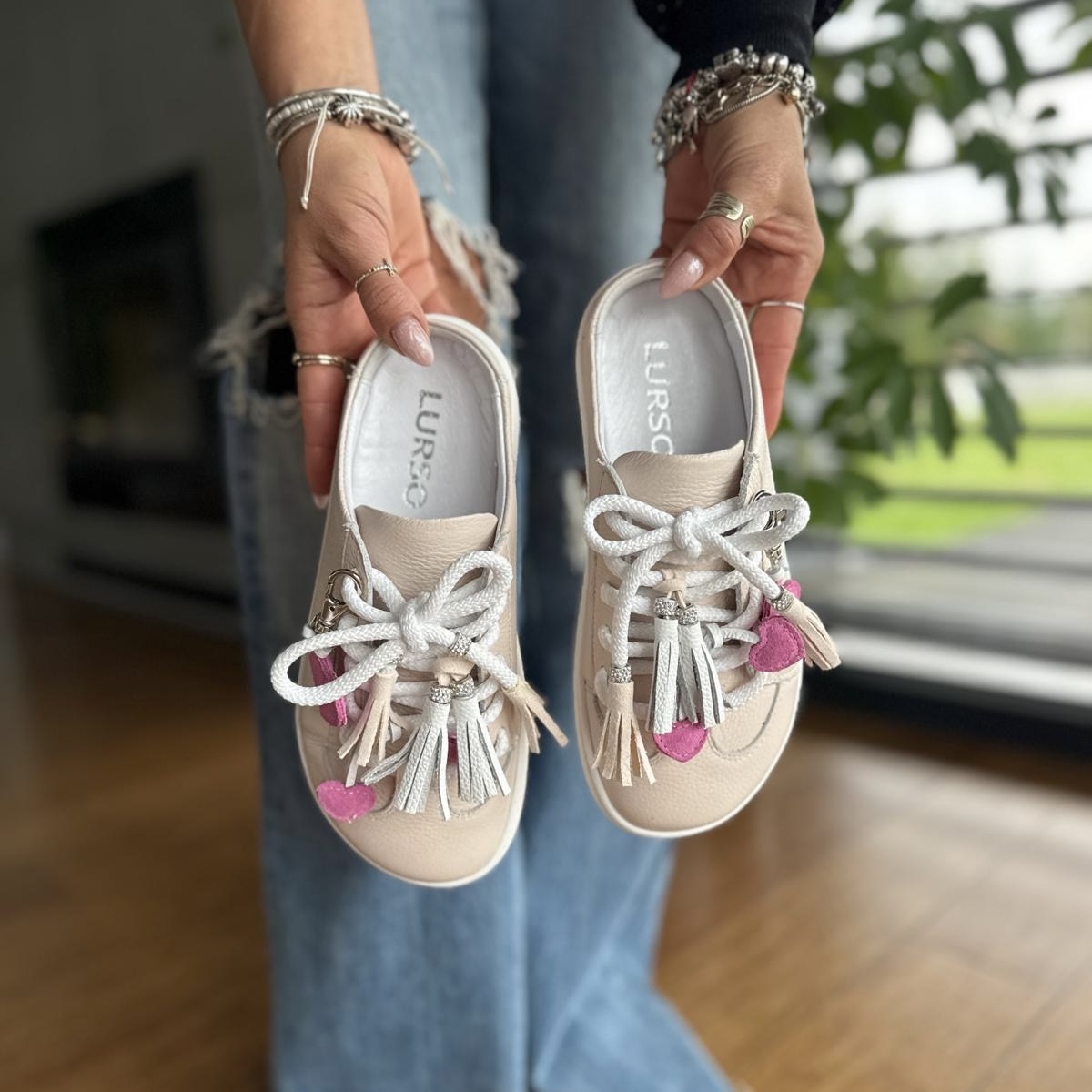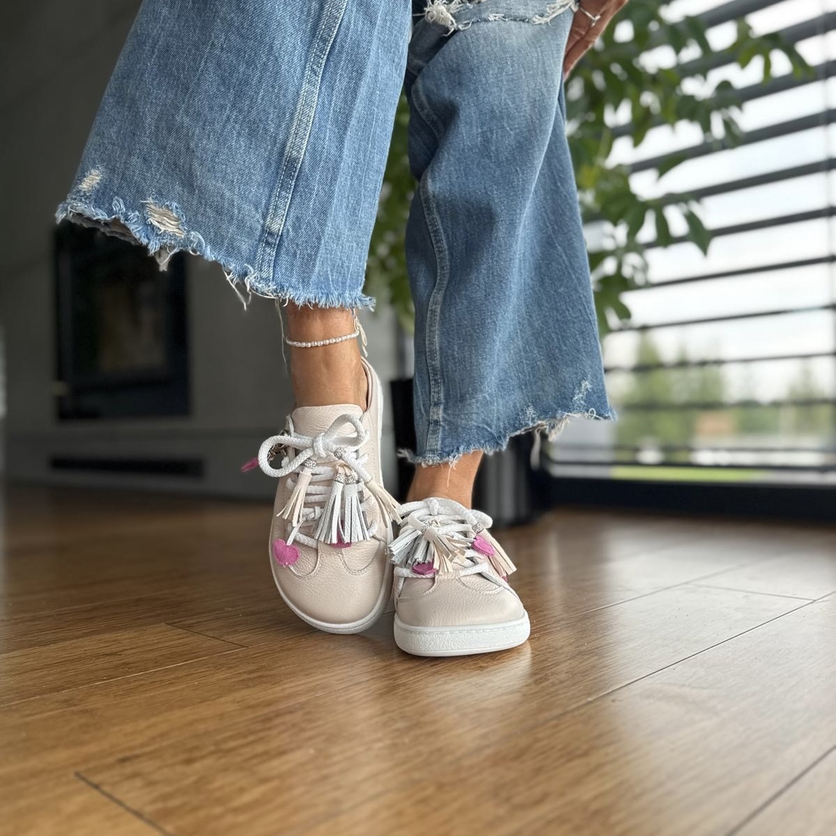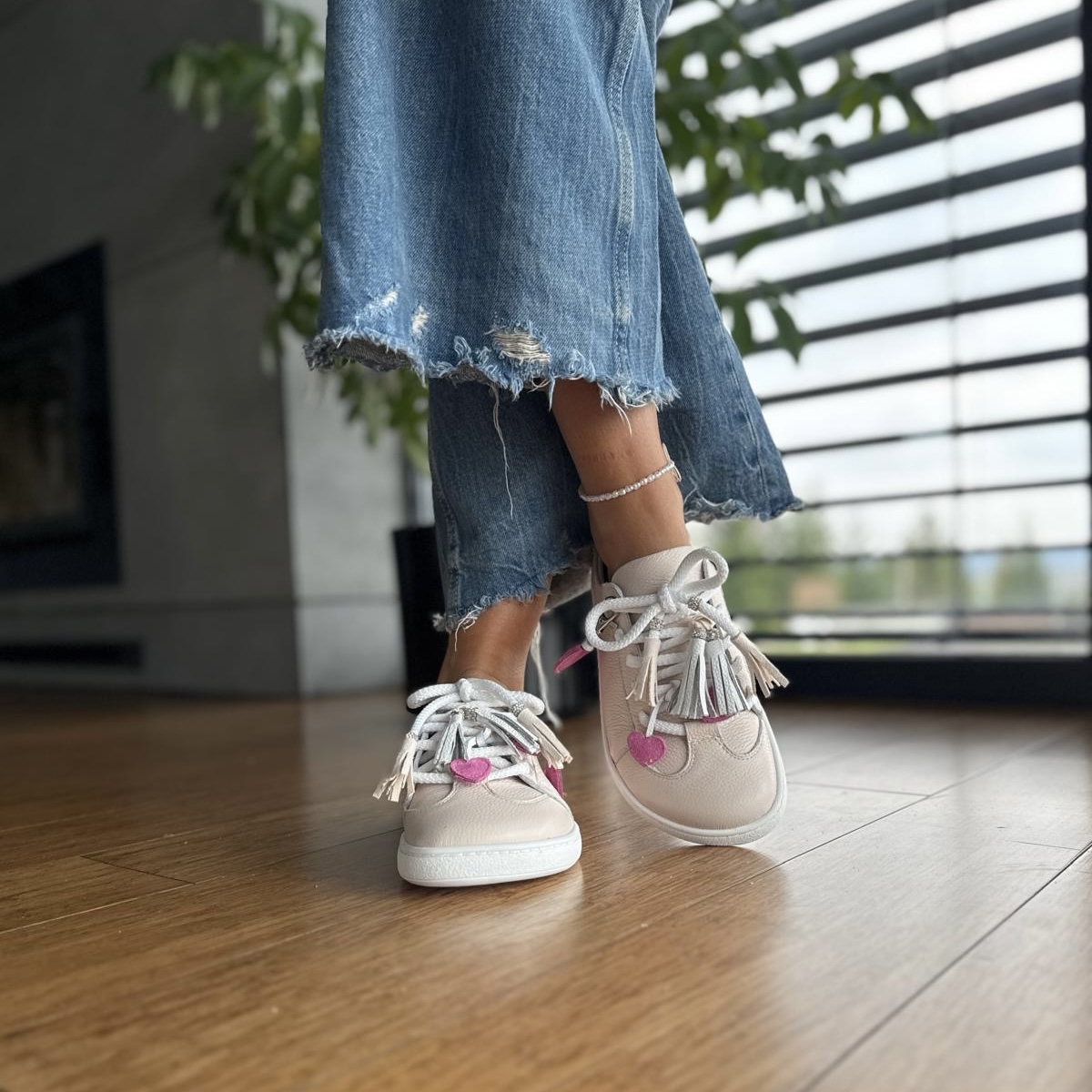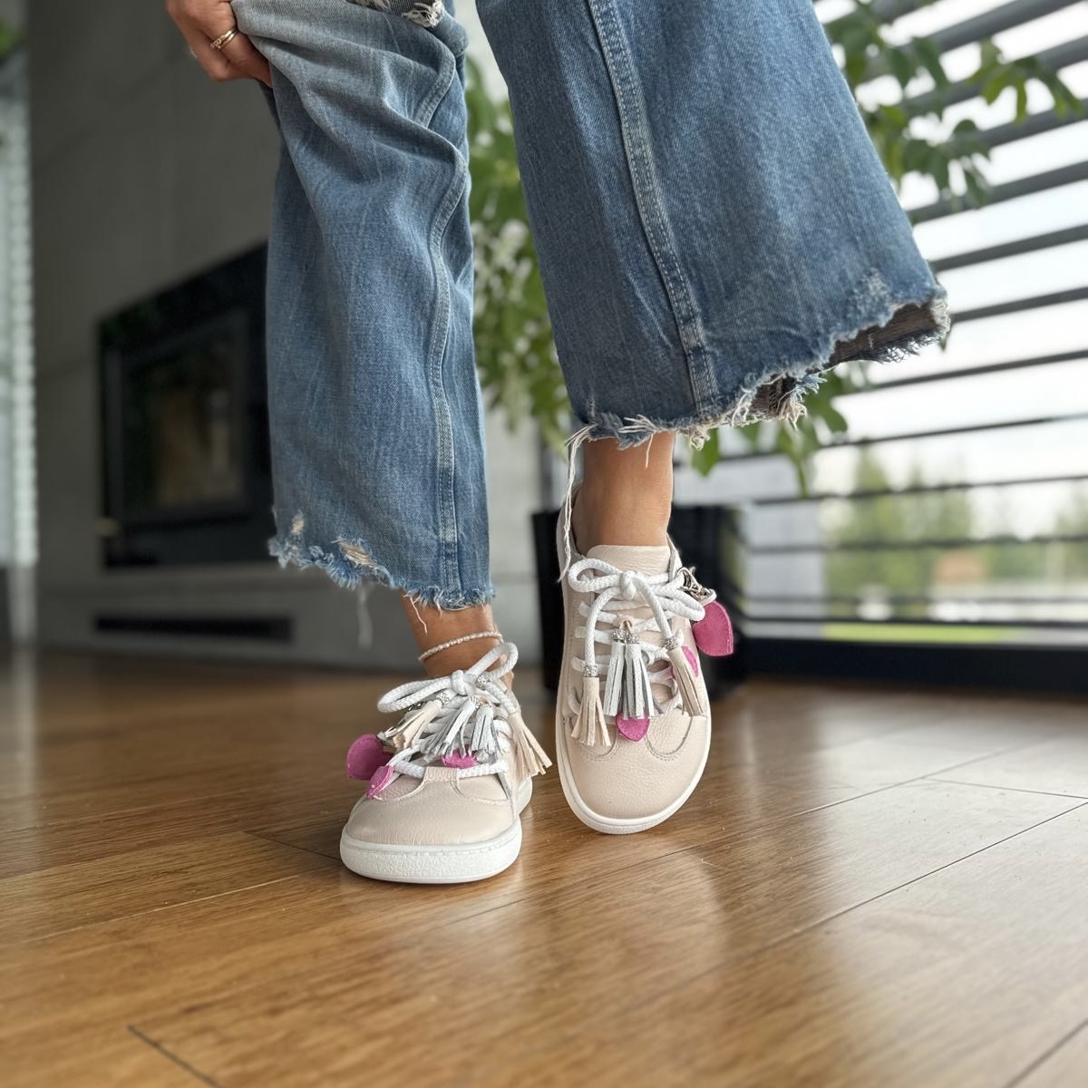 Różowe Trampki Damskie LURSO typu barefoot bez pięty z ozdobami model POTENZA LIGHT PINK skóra naturalna