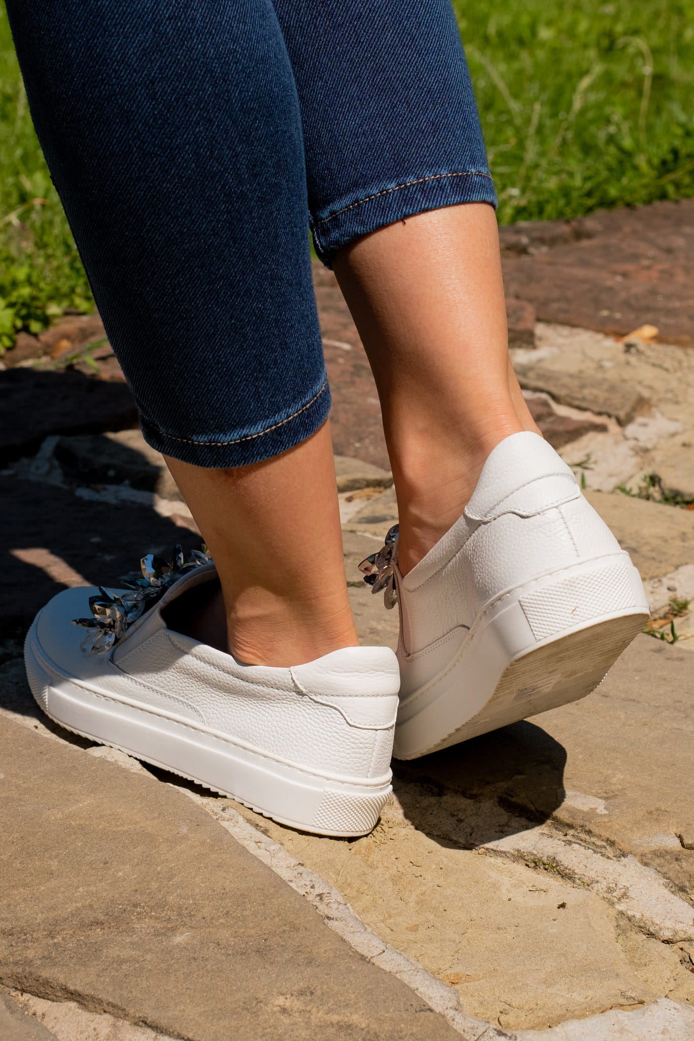 Przepiękny slipon model Emilie to klasyczny krój cholewki, gdzie całą uwagę przyciąga niepowtarzalna ozdoba z kryształowych kwiatów. Spokojna, stonowana kolorystyka sprawia, że model ten może być wykorzystany do wielu stylizacji. Sportowy charakter buta został przełamany elegancją ozdoby.